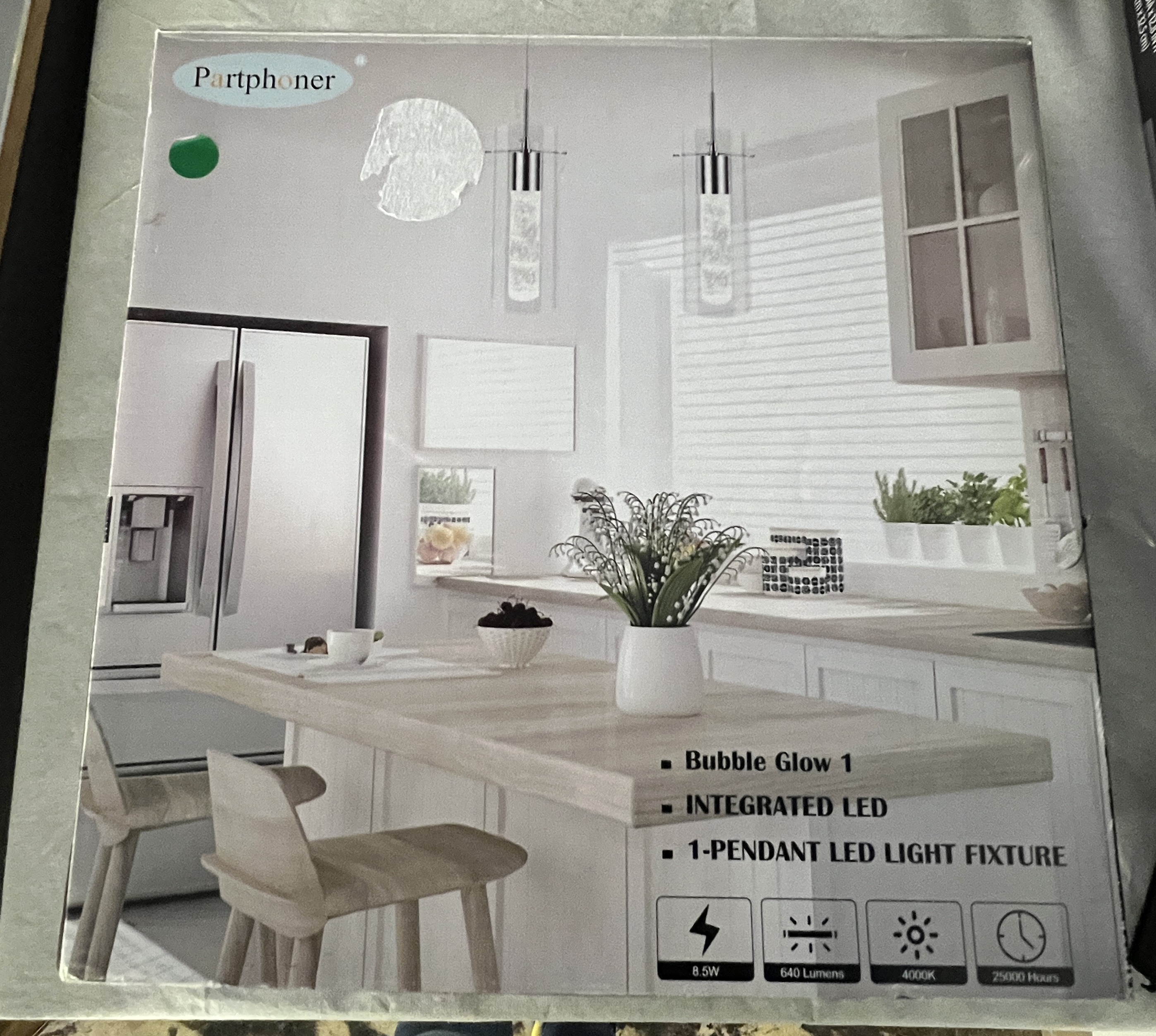 1 Pack Pendant Ceiling Light Fixture, Pendant Lights for Kitchen Island Crystal Pendant Light, 1-Light Integrated Kitchen Hanging Light Fixture Modern Island Light with Bubble Glass (Min Bid Amount: $2)