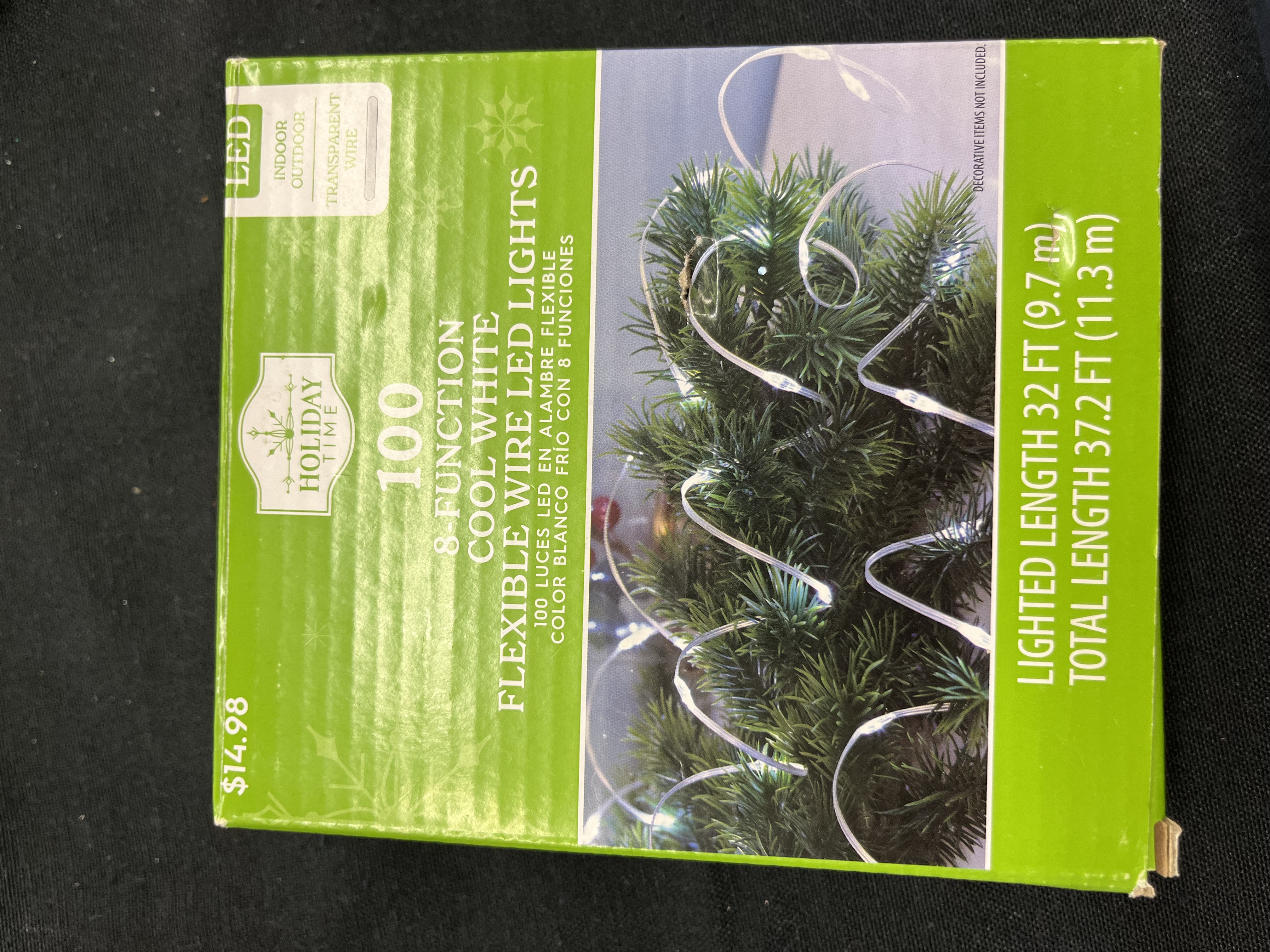 Add a pop of light with the Holiday Time 100-Count 8-Function LED Flexible Wire Christmas Lights. These wire lights are as flexible as your lighting needs. Ideal for indoor and outdoor use, these lights have a lighted length of 32 feet and a total length of 37.2 feet. The transparent wiring blends with any surface, giving you endless decorating possibilities. Perfect for porches, patios, rooms, hallways, railings, and mantles. The 8 lighting functions include Combination, In Waves, Sequential, Slo-Glo, Chasing/Flash, Slow Fade, Twinkle/Flash, and Steady On. These lights are available in 3 festive colors: Warm White, Cool White, and Multicolor. The Holiday Time 100-Count 8-Function LED Flexible Wire Christmas Lights are the perfect lighting addition this holiday season.