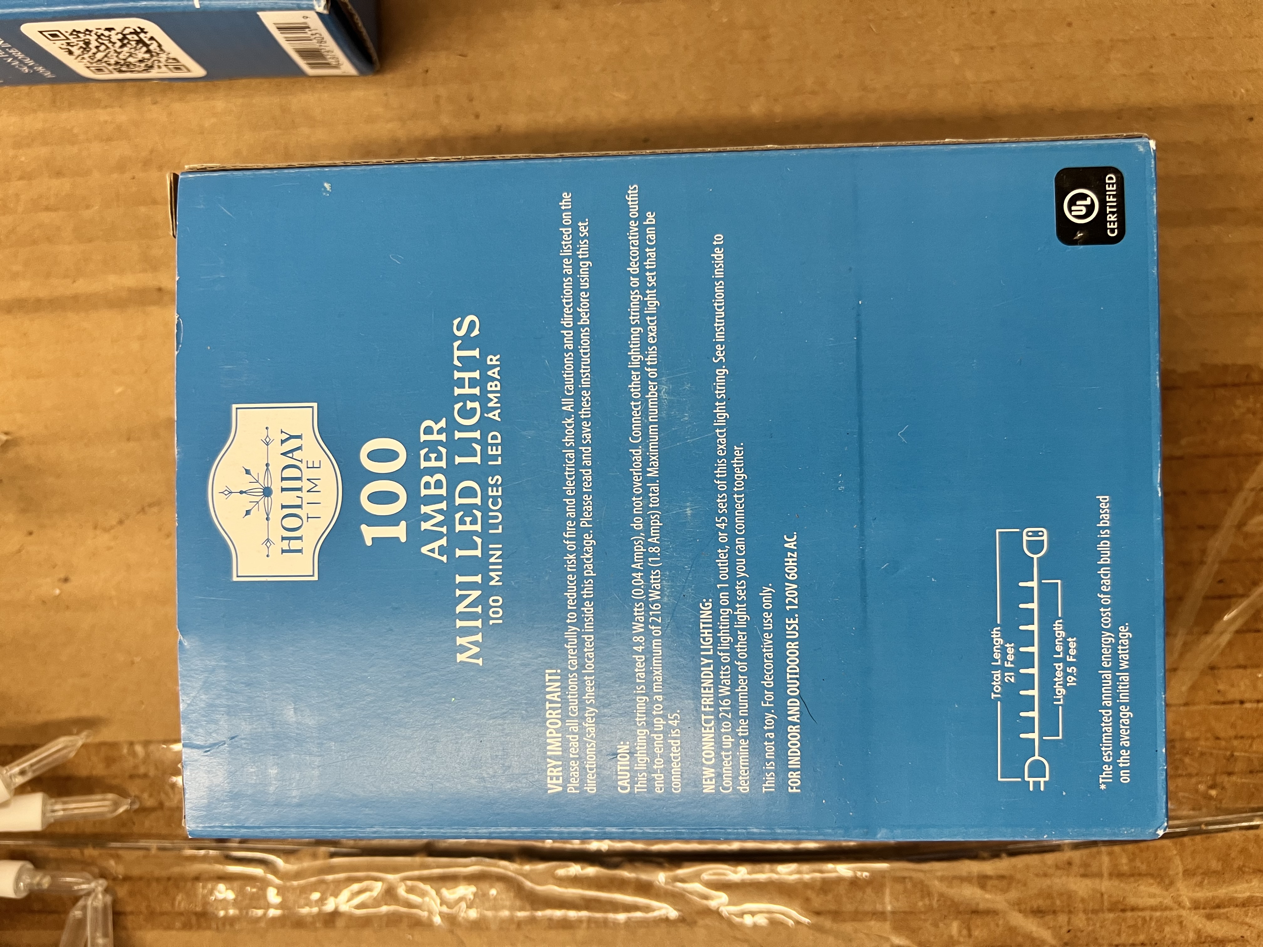 100-Count LED mini Christmas lights Lighted length: 19.5 feet Total length: 21 feet Light bulb spacing: 3.25 inches Ideal for indoor and outdoor use Connect up to 45 sets of this exact same light White wire blends in with light backgrounds Great for holiday parties and decorating