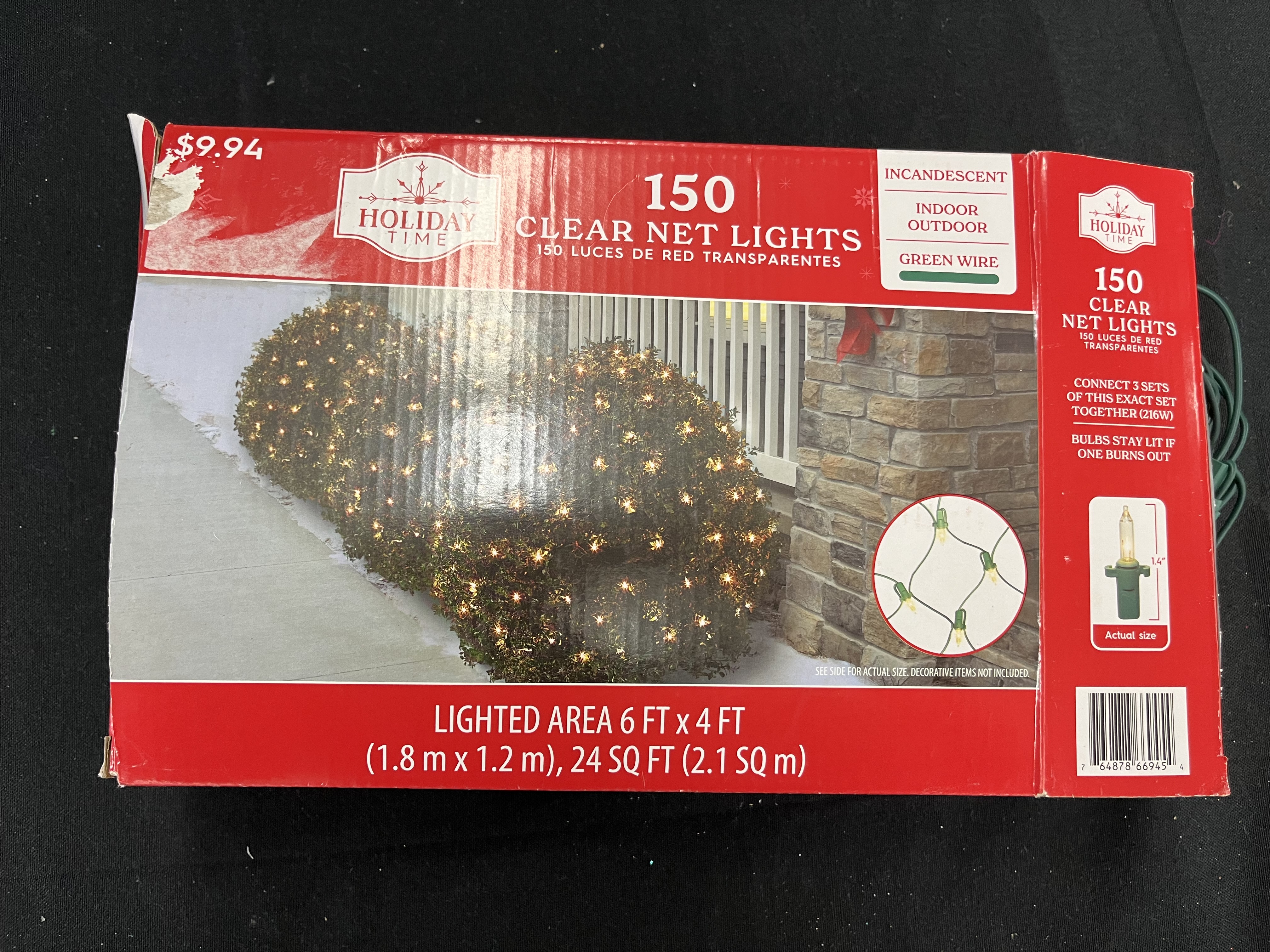 Deck the halls and welcome the most wonderful time of year to your home with the Holiday Time 150-Count Incandescent Net Lights. These lights are an easy way to add a festive look to your home or yard. The green wire easily blends in with your indoor or outdoor greenery. The light design will contribute to a glimmering look that will be memorable and totally worthy of a special post. Each light set covers 24 square feet of lighted area to coordinate beautifully with the rest of your festive holiday decor, transforming your living space into an enchanting winter wonderland that will delight your children and any special holiday guests. These lights are available in 2 festive colors: Clear and Multicolor. Bring home the Holiday Time 150-Count Incandescent Net Lights today.I