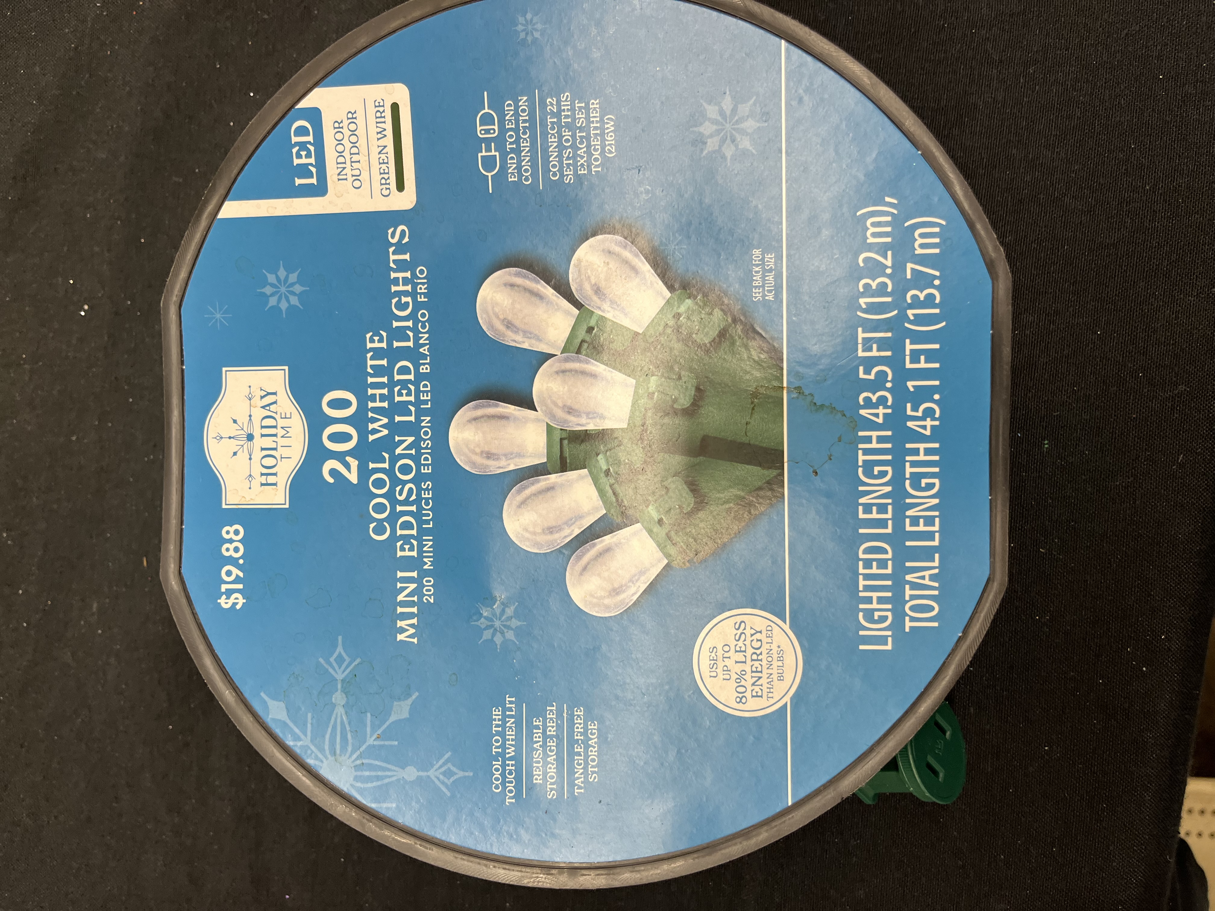 Holiday decorating is easy with the simple and festive Holiday Time 200-Count LED Mini Edison Christmas Lights. These lights create a brilliant design perfect for your Christmas trees, decor, displays, or for illuminating your outdoors. These LED Christmas lights remain cool to the touch even when lit and are UL-Certified. This set of lights has a lighted length of 43.5 feet and a total length of 45.1 feet. You can connect up to 22 sets of this exact string of lights using the end-to-end connections. The Holiday Time LED Mini Edison Christmas Lights are crafted with green tangle-free wire to blend in with tree branches and greenery and come in 2 festive colors: Cool White and Multicolor. Add the Holiday Time 200-Count Mini Edison LED Christmas Lights to your holiday decorations and be the envy of the neighborhood.