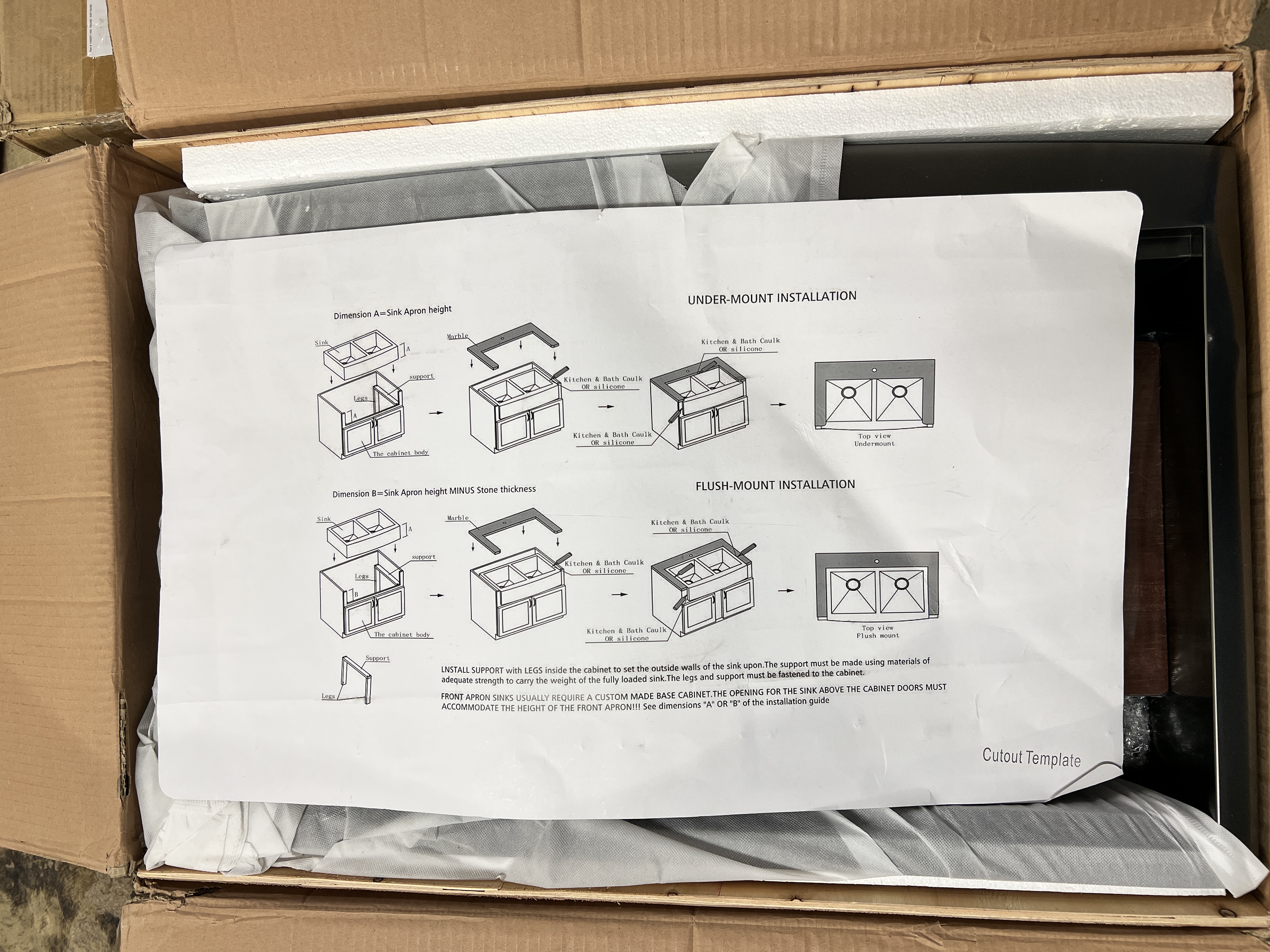 What You Will Get: 30 inch farmhouse sink, 1xpc Multi-functional dish grid with rubber feet , 1xpc deep drain basket keeps food from clogging the drain pipe and prevent water flow, 1xpc Dish Drying Roll-up Rack to air-dry washed bowls, pot, fry pans,1xpc Colander to hold fruits and vegetables, 1xpc Installation instruction to guid you how to install it, 1xpc Cutout template and some mounting clips to help you install it more quickly.
