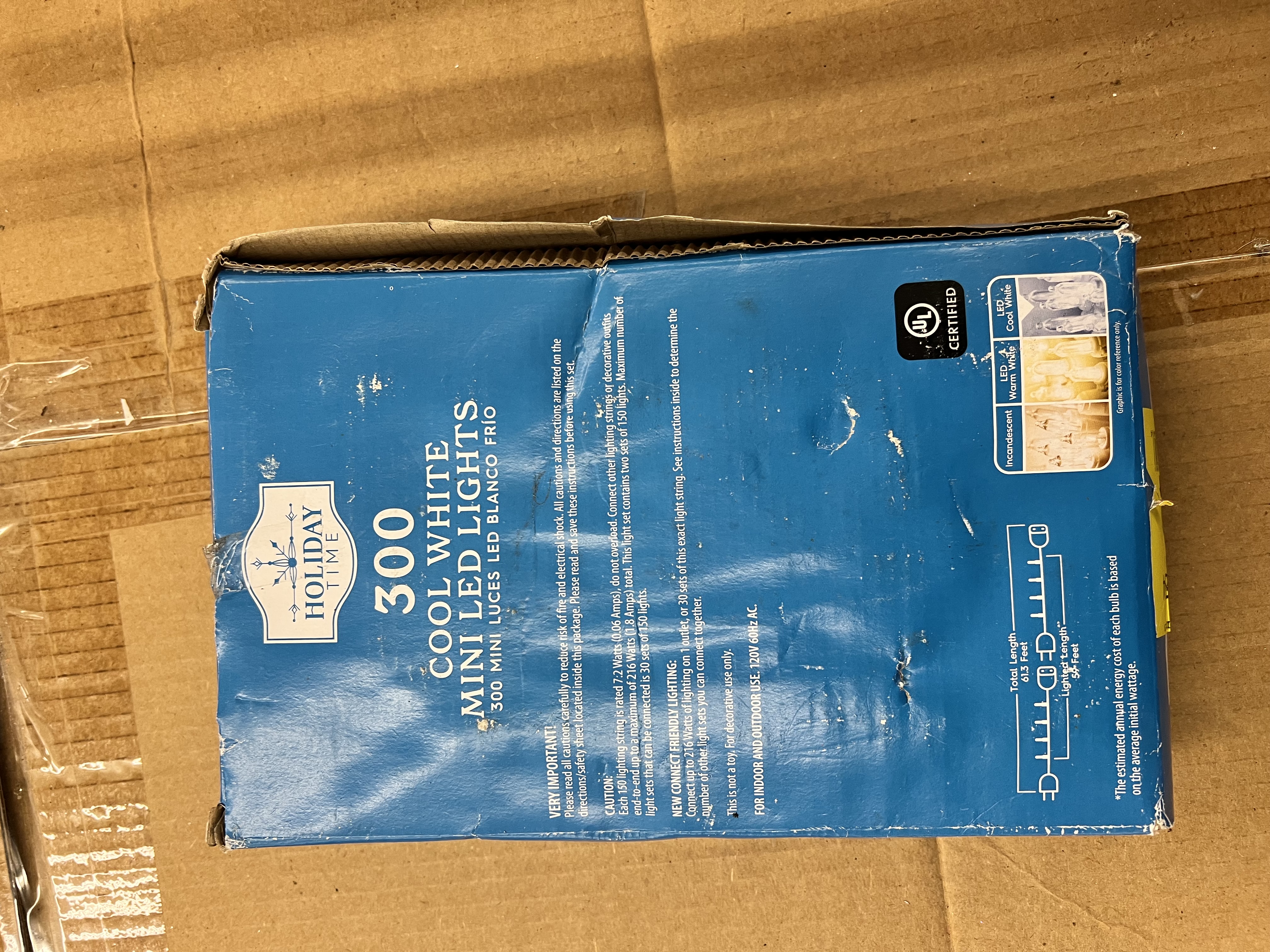 300 LED mini Christmas lights 2 sets of 150 lights Lighted length: 59 feet Total length: 61.3 feet Green wire Versatile option to light up your Christmas trees, decor, displays, home, yard, and more End-to-end connectors Connect to up to 30 sets of this exact string of lights Designed with durable, break-, fade-, and chip-resistant bulbs UL certified LED lighting remains cool to the touch even when lit Ideal for indoor and outdoor use