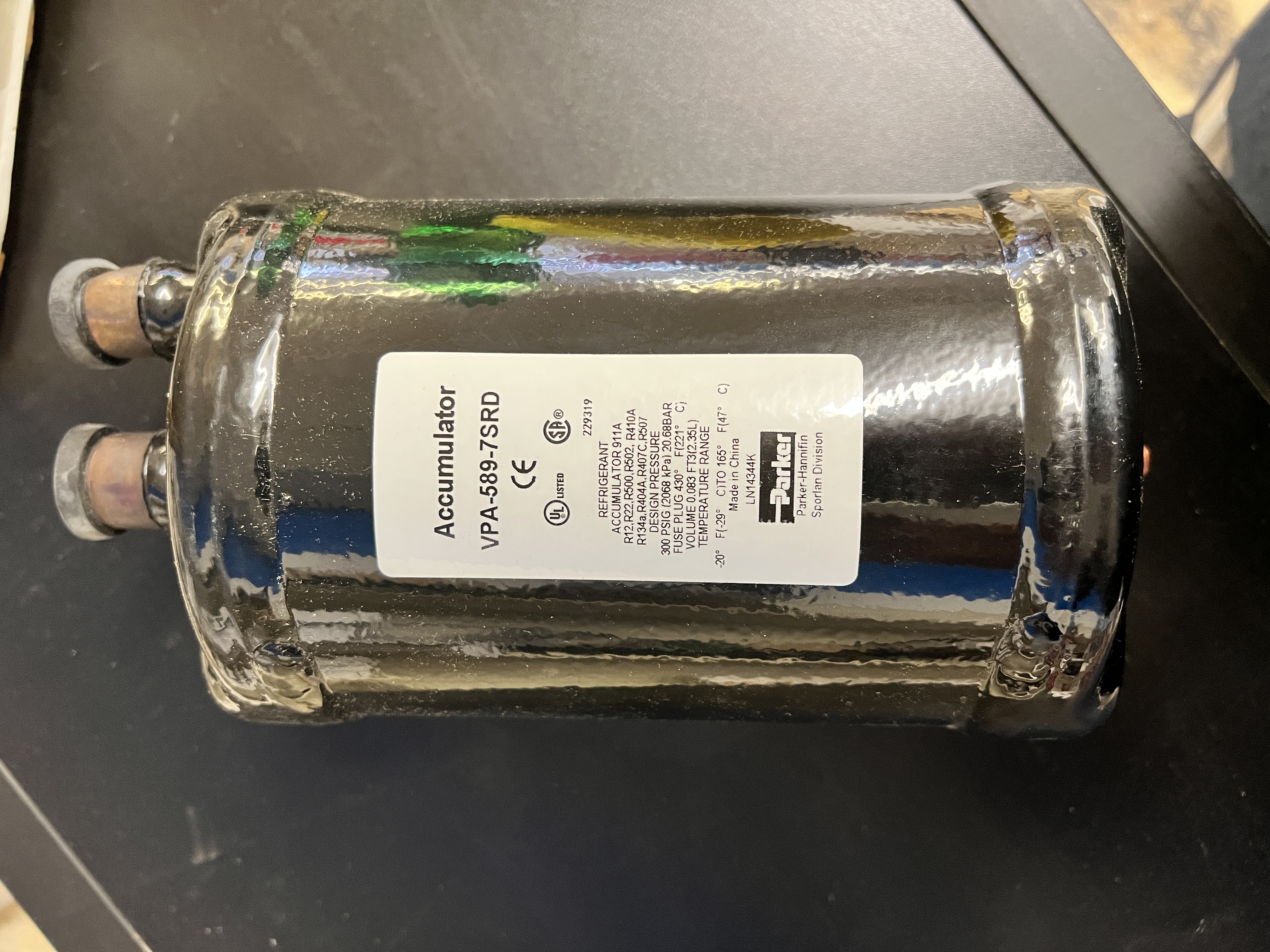 Fittings and "U" tube are matched to accumulator holding capacity and total system charge for minimum pressure drop and maximum refrigerant flow