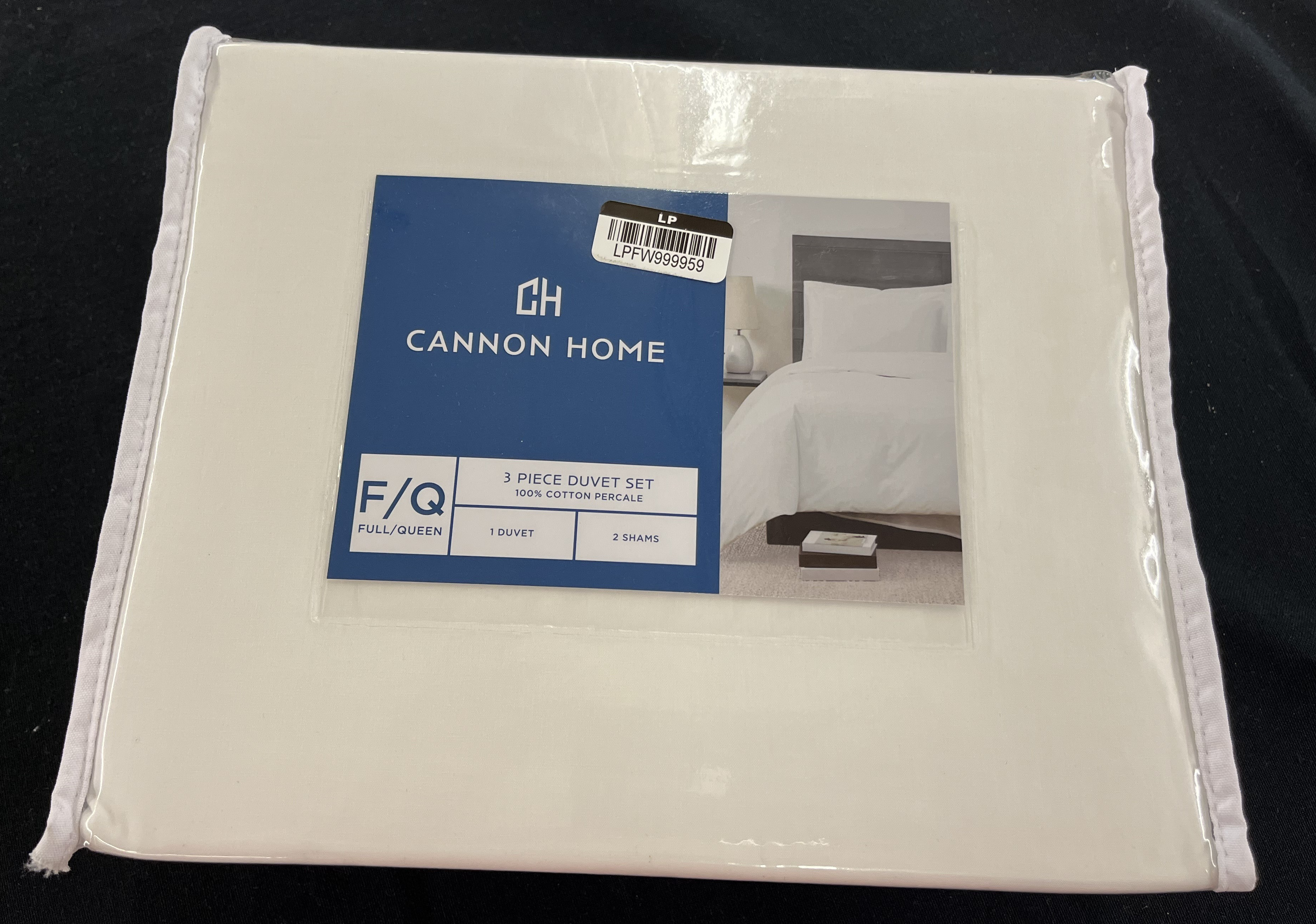Cannon's solid cotton percale bedding collection is the ideal combination of luxury and durability. Offered in multiple colors, this bedding set will work with any bedroom and style. The tight percale weave produces a soft and smooth fabric with breathable cotton threads. This high quality duvet set has a thread count of 200 and is made to impress. The comforter insert is set in place with a button enclosure and ties. Face and back are 200 thread count, 100% cotton percale weave for a nice crisp feel. This item is machine washable, but care should be taken to wash in appropriate size equipment to preserve the items quality. This item is imported from India. Set includes: one duvet cover 90 inches wide by 90 inches long with button colsure and corner ties and two standard shams 20 high by 26 wide with a 2 inch flange.