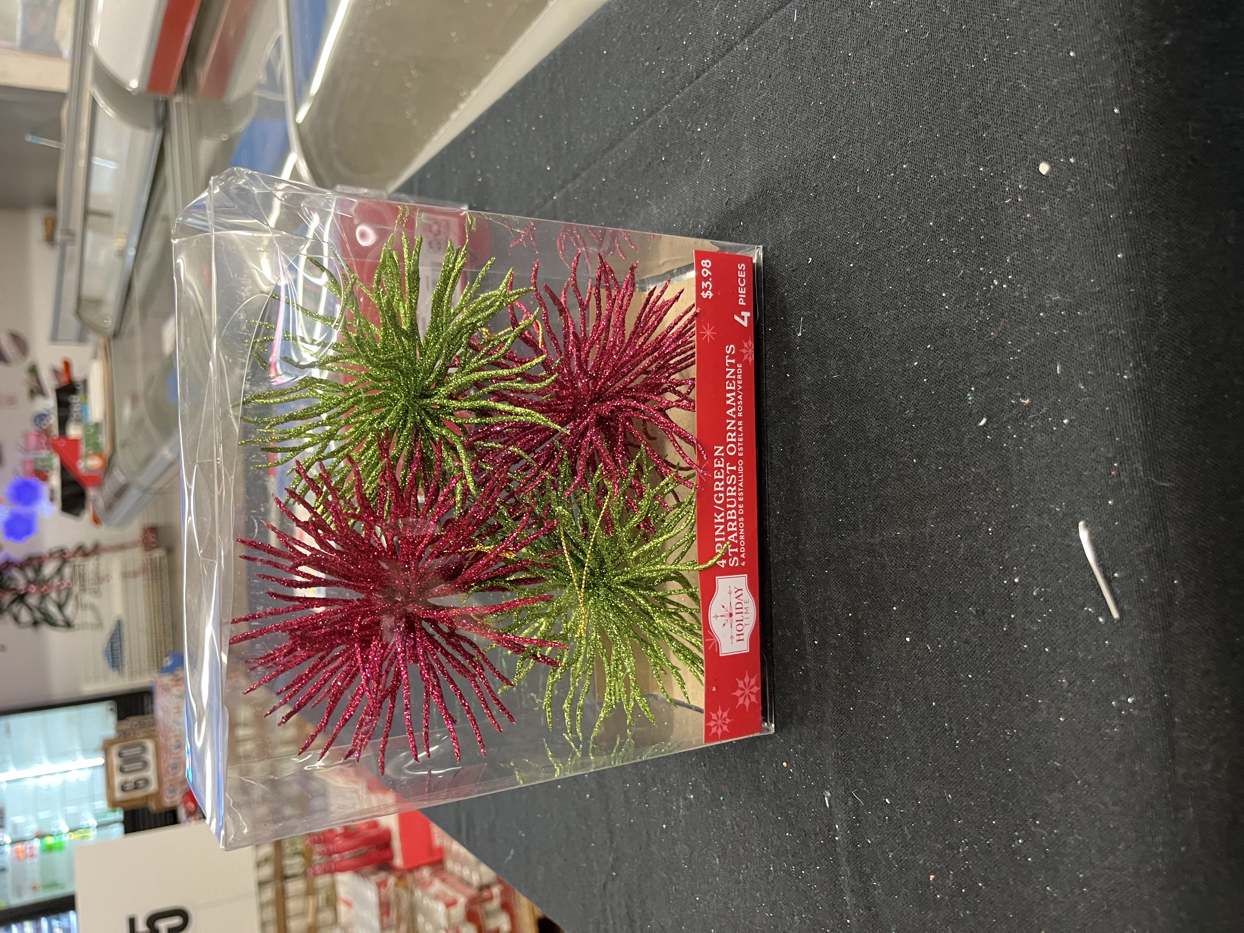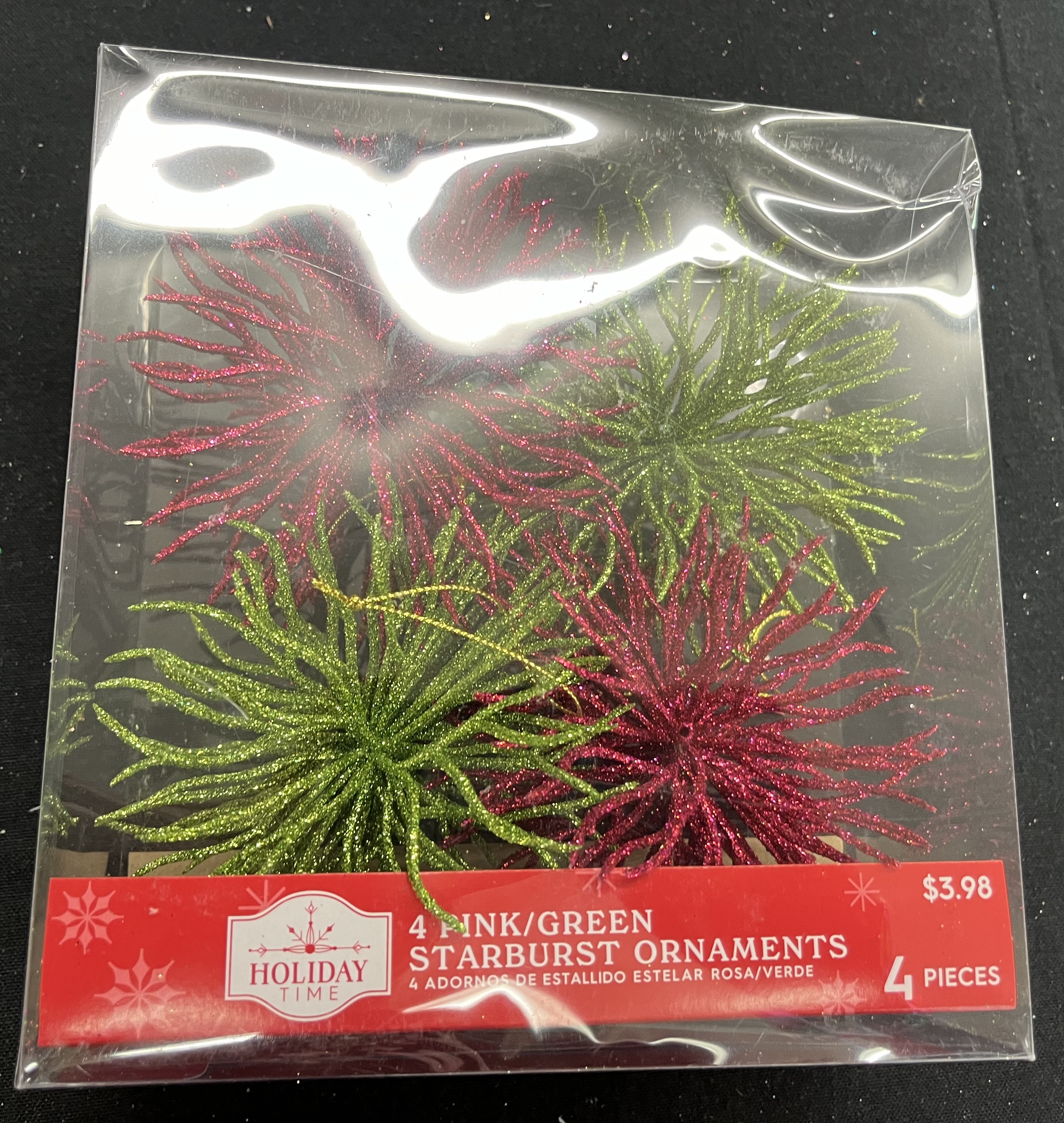 4-Count Pink Green Starburst Ornament, by Holiday Time