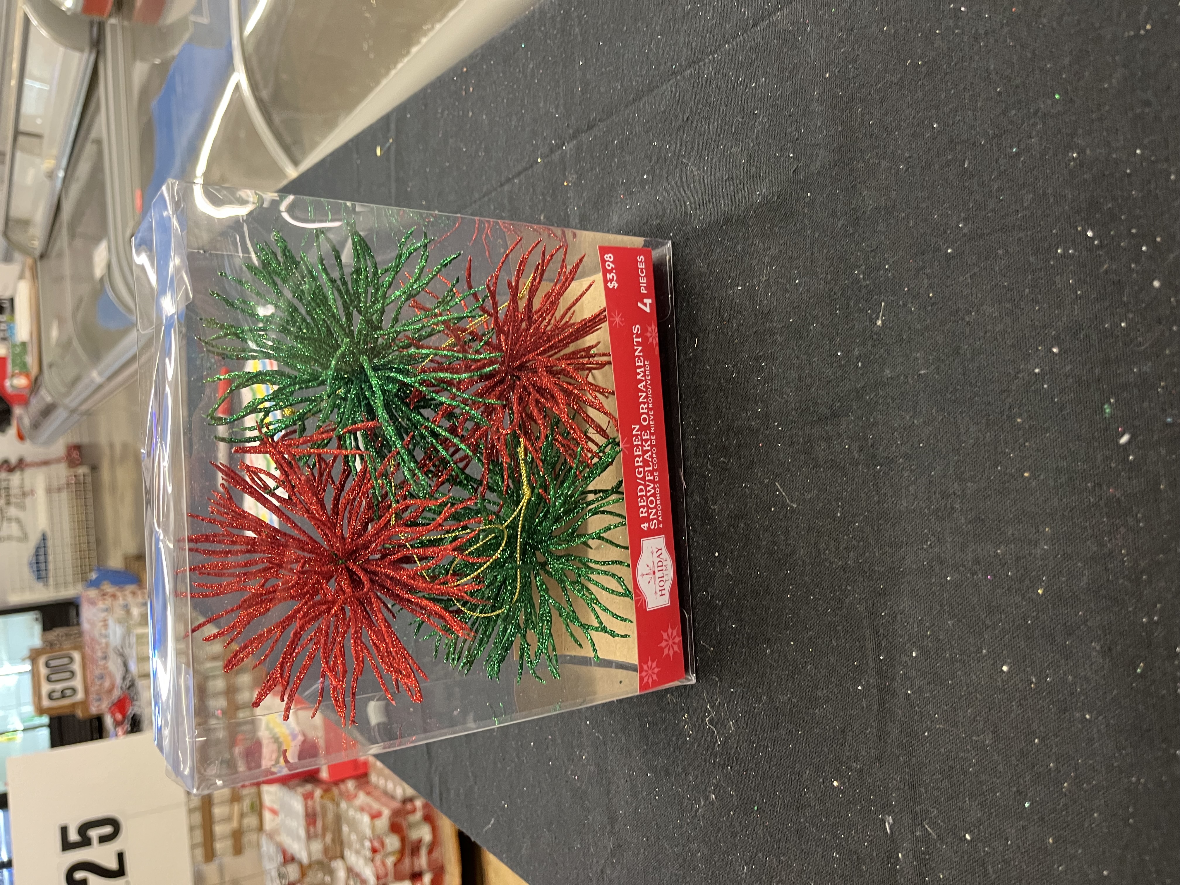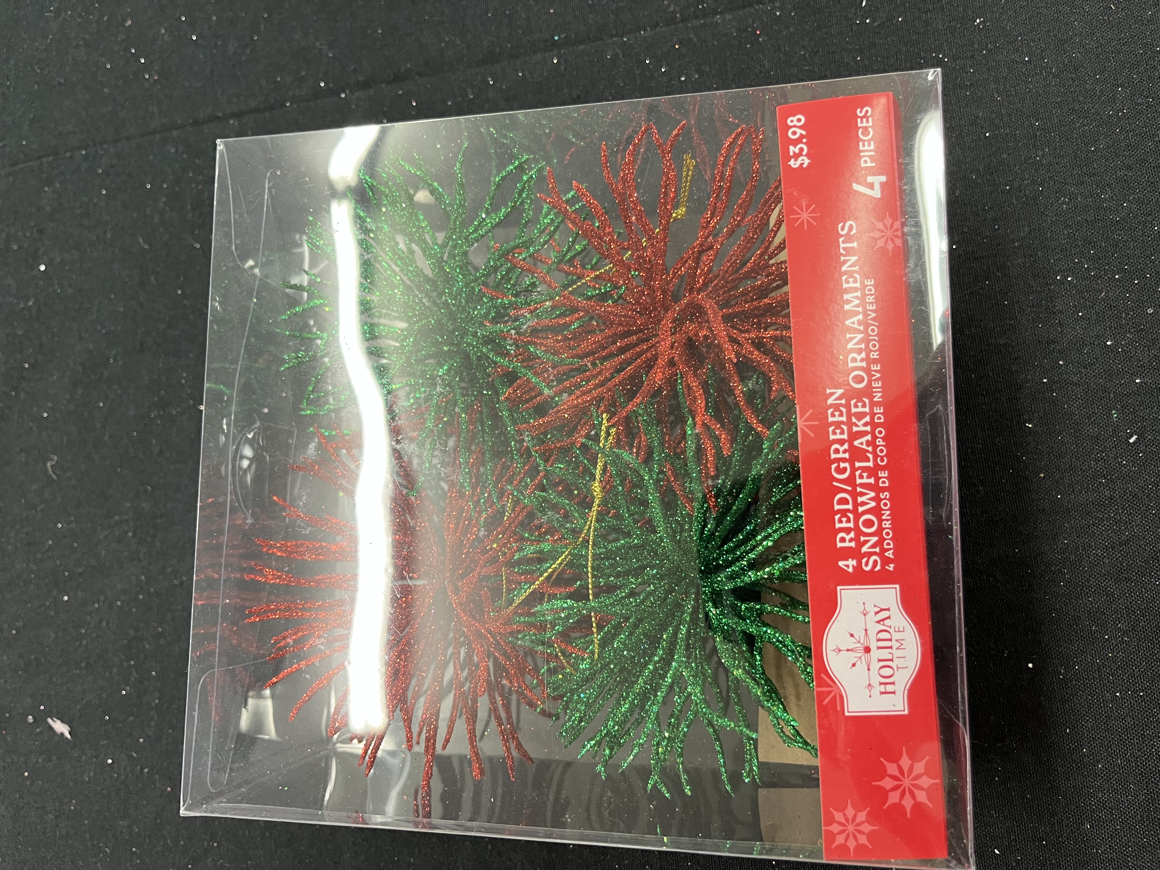 4-Count Red Green Snowflake Ornament, Ornament, 0.097kg, by Holiday Time