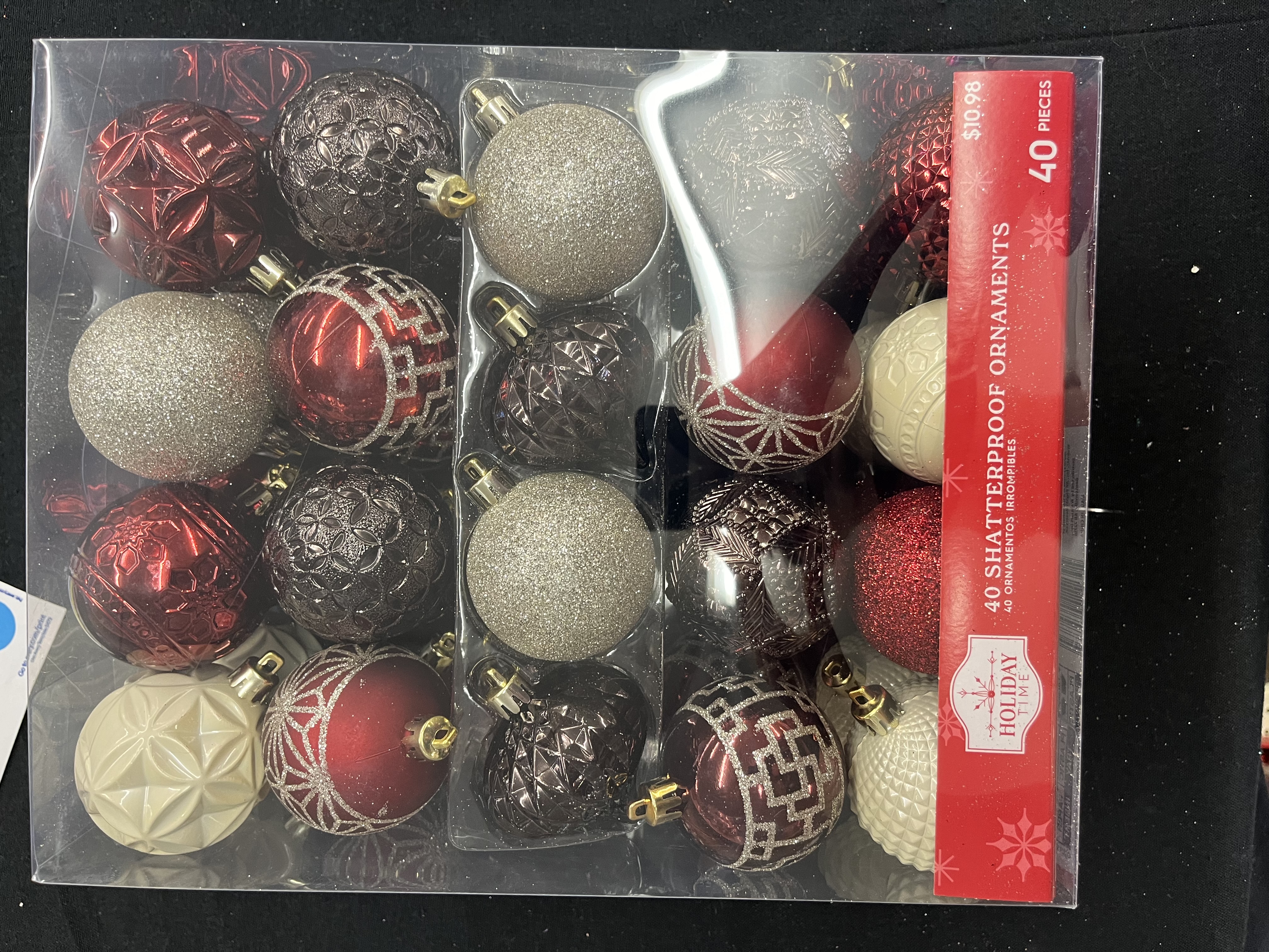 Add a decorative flare to your Christmas tree with the Holiday Time 40-Count 60mm Shatterproof Christmas Ornaments. This set of ornaments will add sparkle and color to your tree in festive shades of the season. These 60mm Christmas ornaments are available in a variety of colors. Each set contains a mix of shiny, matte, or glitter styles in a variety of elegant designs measuring 2.36 inches in height. These ornaments are shatterproof to help make decorating safe and fun for the whole family and include a loop for easy hanging. Go all out this season when you decorate with the Holiday Time 40-Count 60mm Shatterproof Christmas Ornaments