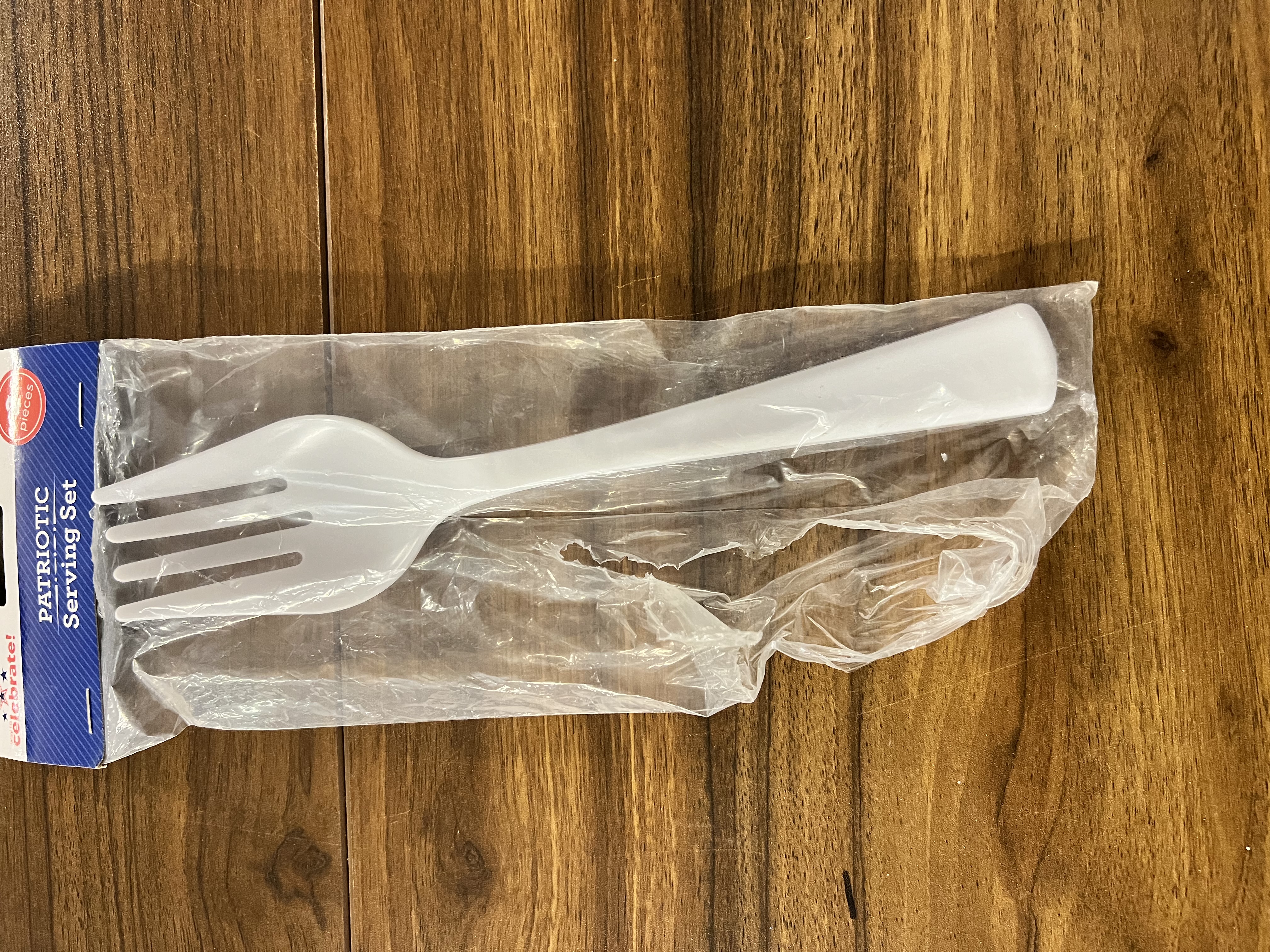 Each package includes 1 Way to Celebrate 4th of July Red & Blue Plastic Spoon and Fork Serving Set The spoon and fork serving set is made of durable plastic and recyclable materials, for your convenience The plastic serving set features a red spoon and white fork to perfectly compliment any 4th of July theme The serving set is great for Patriotic celebrations and parties at home, school, or anywhere else Enhance your party with fashionable serveware Also be sure to check out the other items from our wide selection of Patriotic and holiday party supplies. Spoon not included.