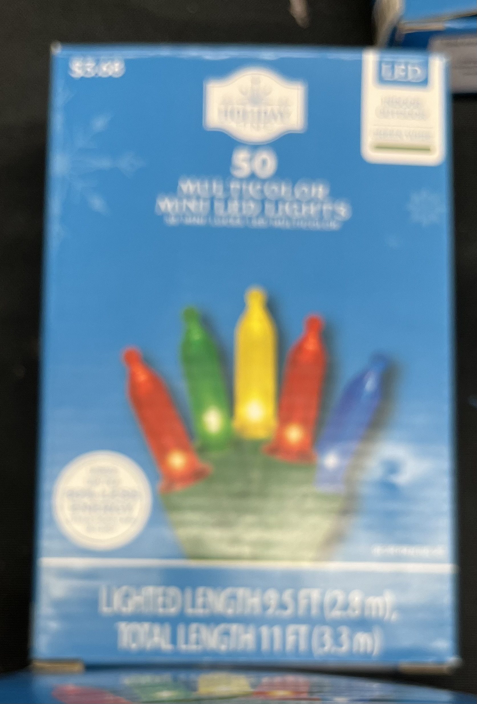 Light up Santa's Workshop this holiday season with the Holiday Time 50-Count LED Mini Christmas Lights. Just the thing to illuminate your Christmas tree, you can connect up to 90 sets of these LED mini lights and make sure every branch is shining bright. These festive lights on green wire are also great for lighting windows, decorating the front doorway or porch railings, or creating a photo-worthy backdrop. Perfect for decorating your house or yard for parties or carolers, the durable bulbs are break-, fade-, and chip-resistant. These lights have a lighted length of 9.5 feet and a total length of 11 feet. The lights are available in 2 festive colors: Warm White and Multicolor. Make your house the most festive in town this year with the Holiday Time 50-Count LED Mini Christmas Lights.