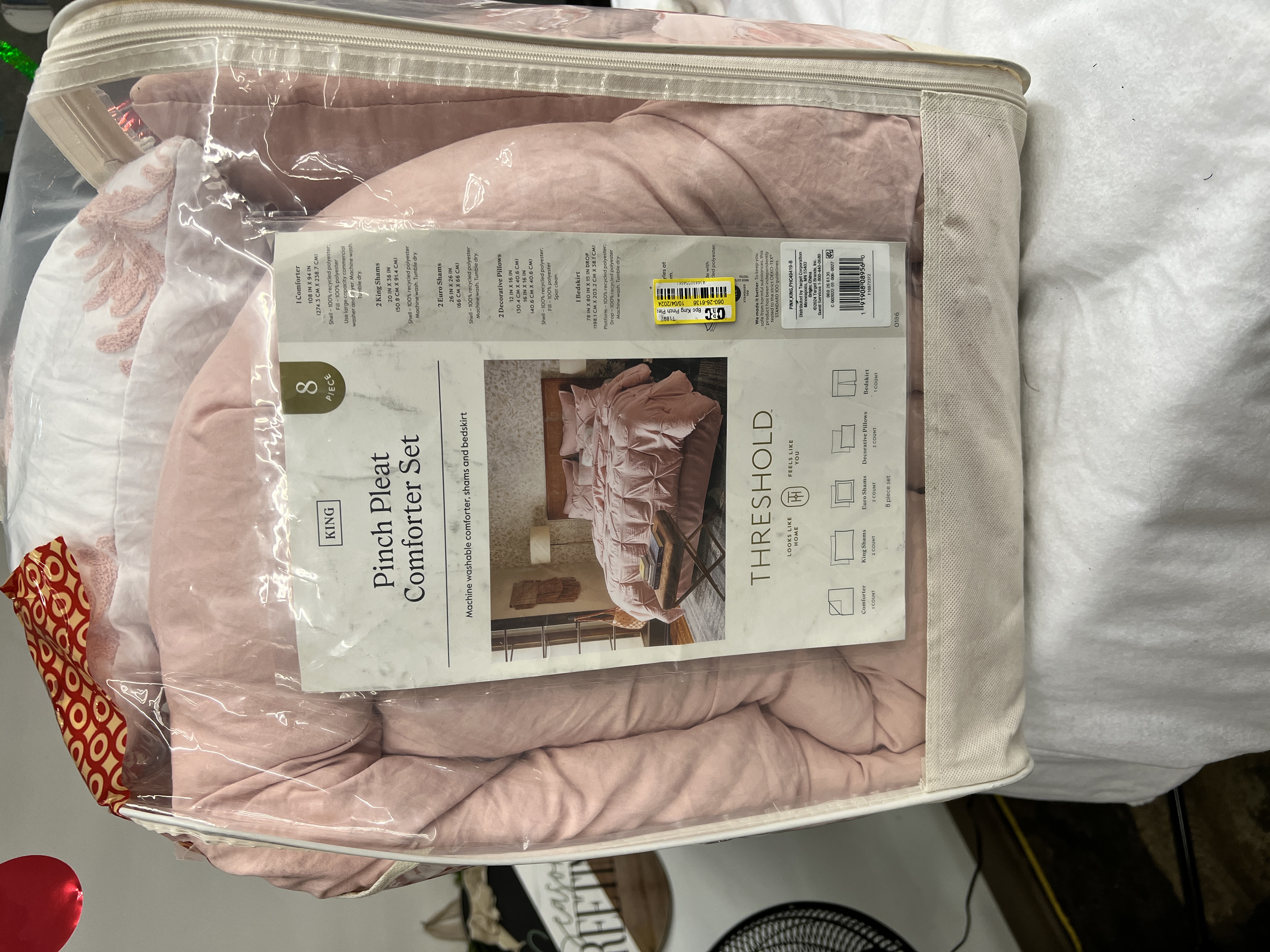 Dress up your sleep space with a hint of shabby-chic elegance with the 8pc Montvale Pinch Pleat Comforter Set from Threshold™. Simply stylish pinch pleats add texture and dimension for a look that's brimming with timeless elegance, while the solid color options are easy to pair with a variety of different decors. Paired with a soft comforter, this bedding set includes matching pillow shams, Euro shams and decorative pillows to complete the stunning look.