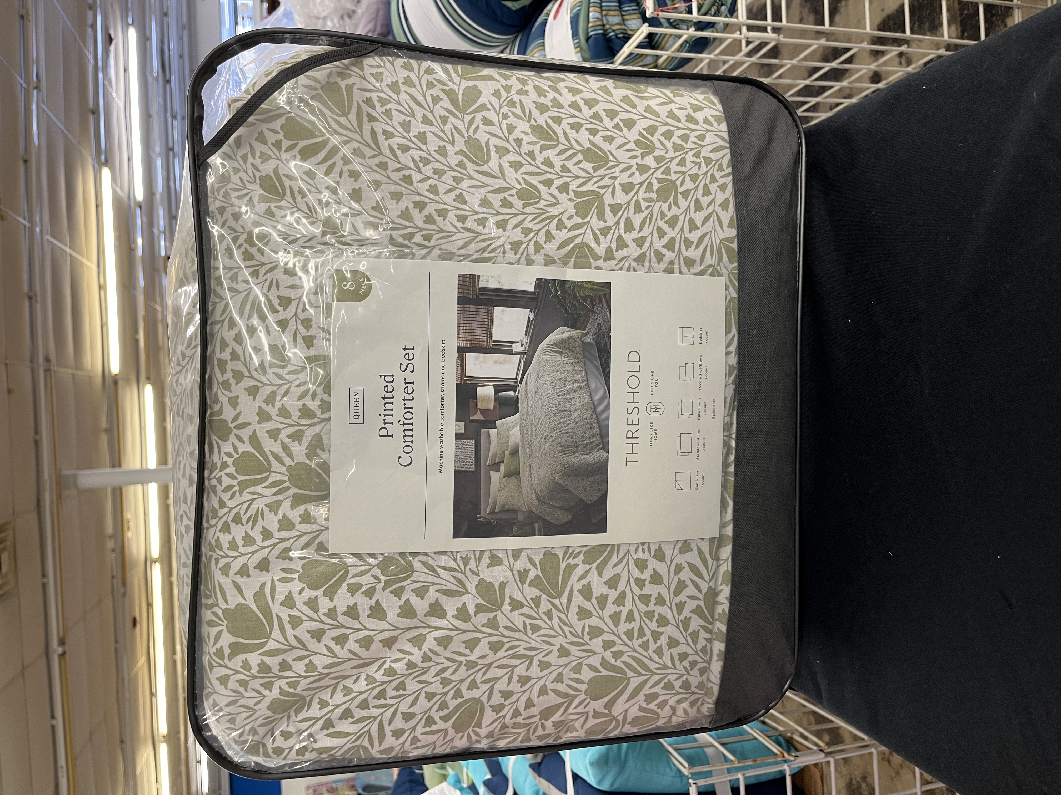 Give your serene sleeping nook some timeless elegance with this 8-Piece Floral Comforter Set from Threshold™. The eight-piece bedding set includes a comforter adorned with a green floral pattern that will add lovely flair to your space. It comes with shams, decorative pillows and a bedskirt for a complete look. For added convenience, the multi-piece comforter bedding set boasts a lightweight construction to keep you in absolute comfort through the night, and is machine washable for easy upkeep. 8pc floral comforter set • Includes shams, decorative pillows and bedskirt • Features allover floral pattern • Lightweight material • 6in inner envelope