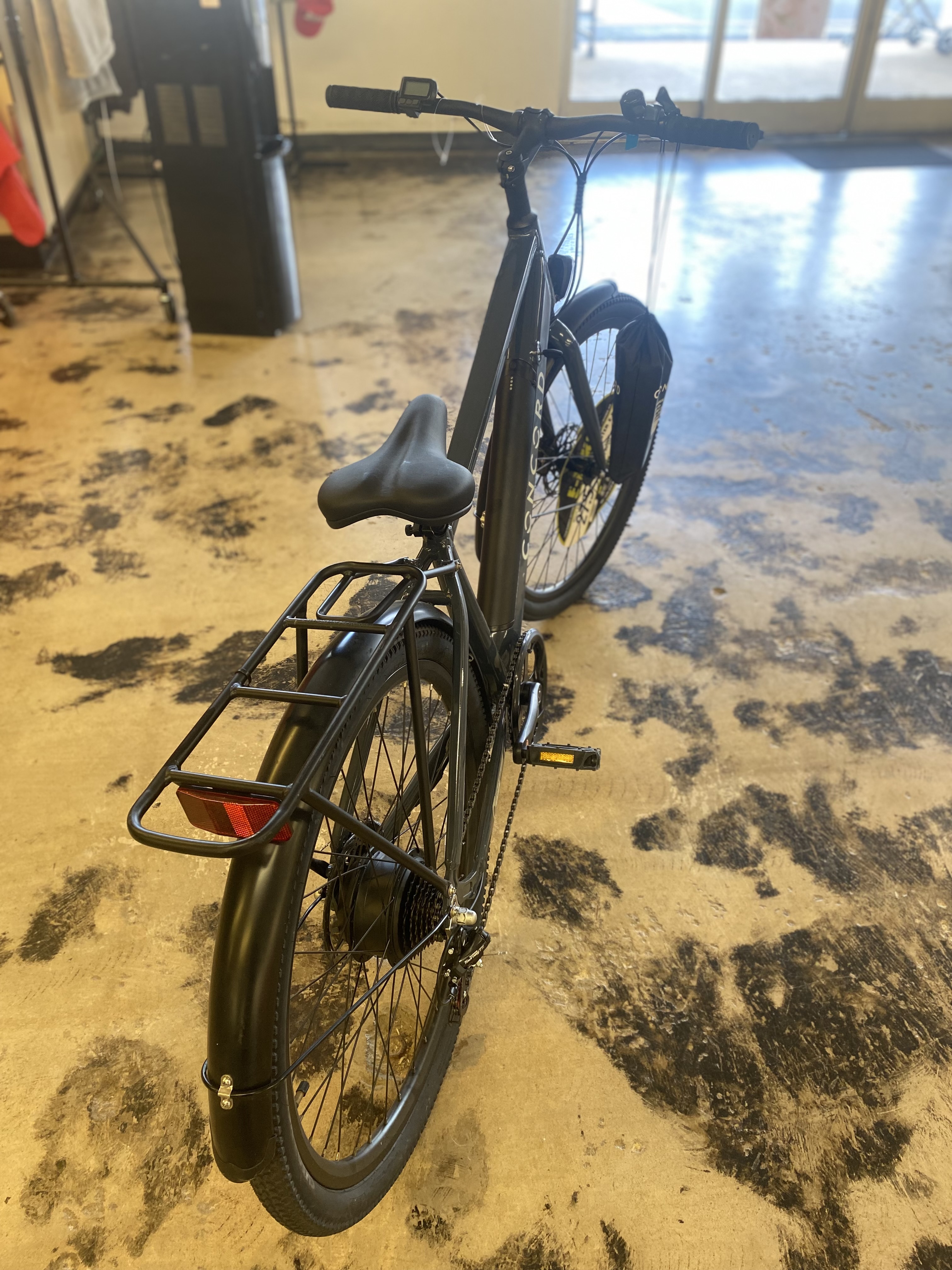 Take on your next adventure with the Concord 27.5" Commuter Step-Over Electric Bike. This adult electric bike is equipped with a reliable 350W high-speed brushless rear hub motor, providing a torque curve that seamlessly augments your pedaling power. The 36V 10Ah battery, which is portable and lockable, offers a range of up to 20 miles per charge. The user-friendly display provides real-time information such as pedal assist level, power status, speed, trip distance, and headlight switch control. The gear level operates smoothly, mimicking a traditional bicycle without resistance. Additionally, the Shimano 7-speed gear with trigger shifters and derailleur ensures quick, precise gear shifts, enabling you to navigate any terrain with remarkable ease. Bring home the Concord 27.5" Commuter Step-Over Electric Bike today.