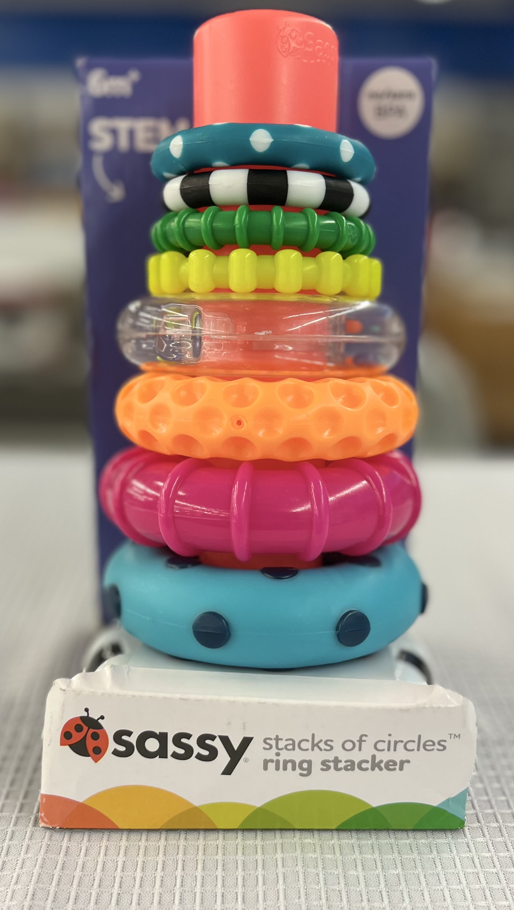 Sassy Stacks of Circles Stacking Ring STEM Learning Toy, Age 6+ Months, Multi, 9 Piece Set