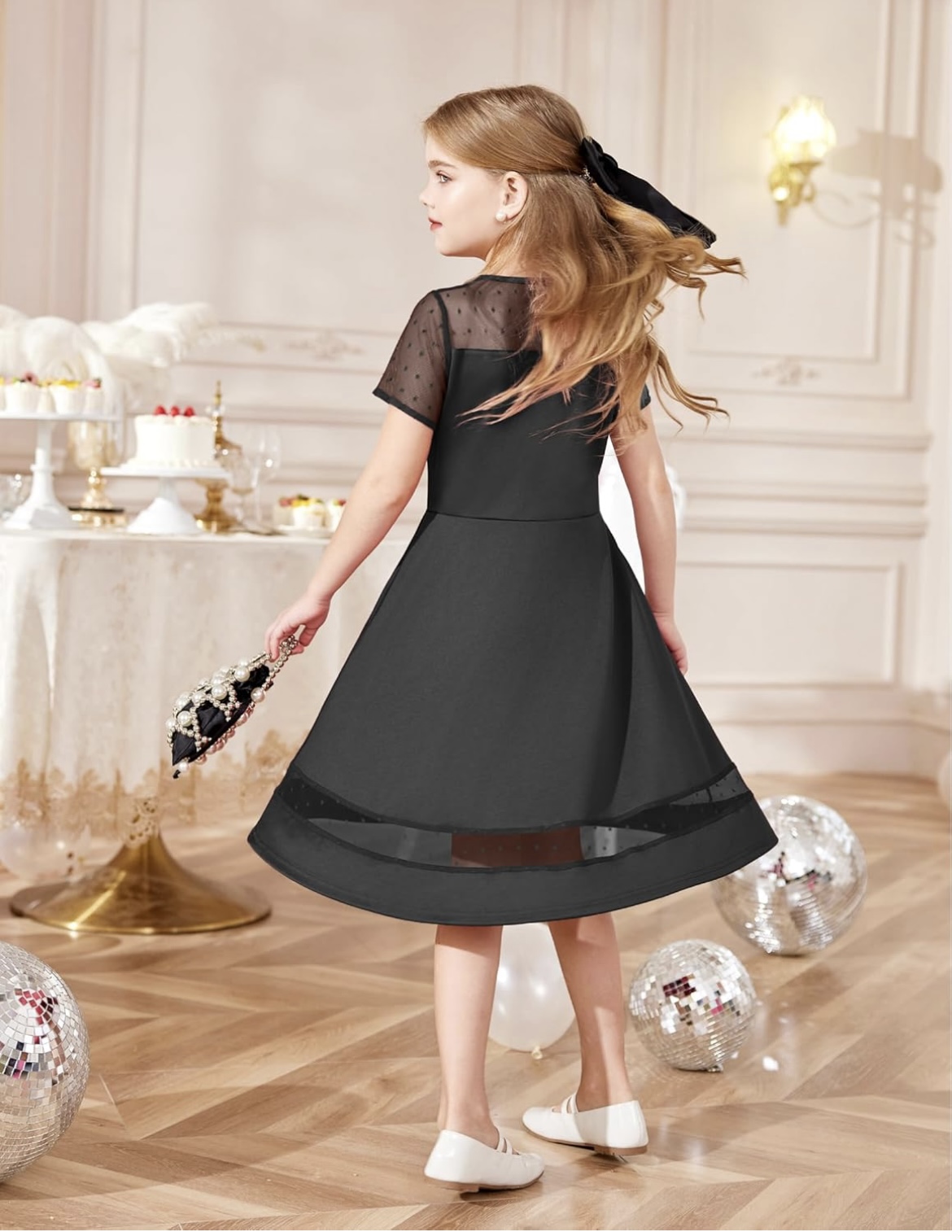 Arshiner Tween Girls Dress Formal Contrast Mesh Short Sleeve A Line Party Dresses with Pockets for 5-12 Years