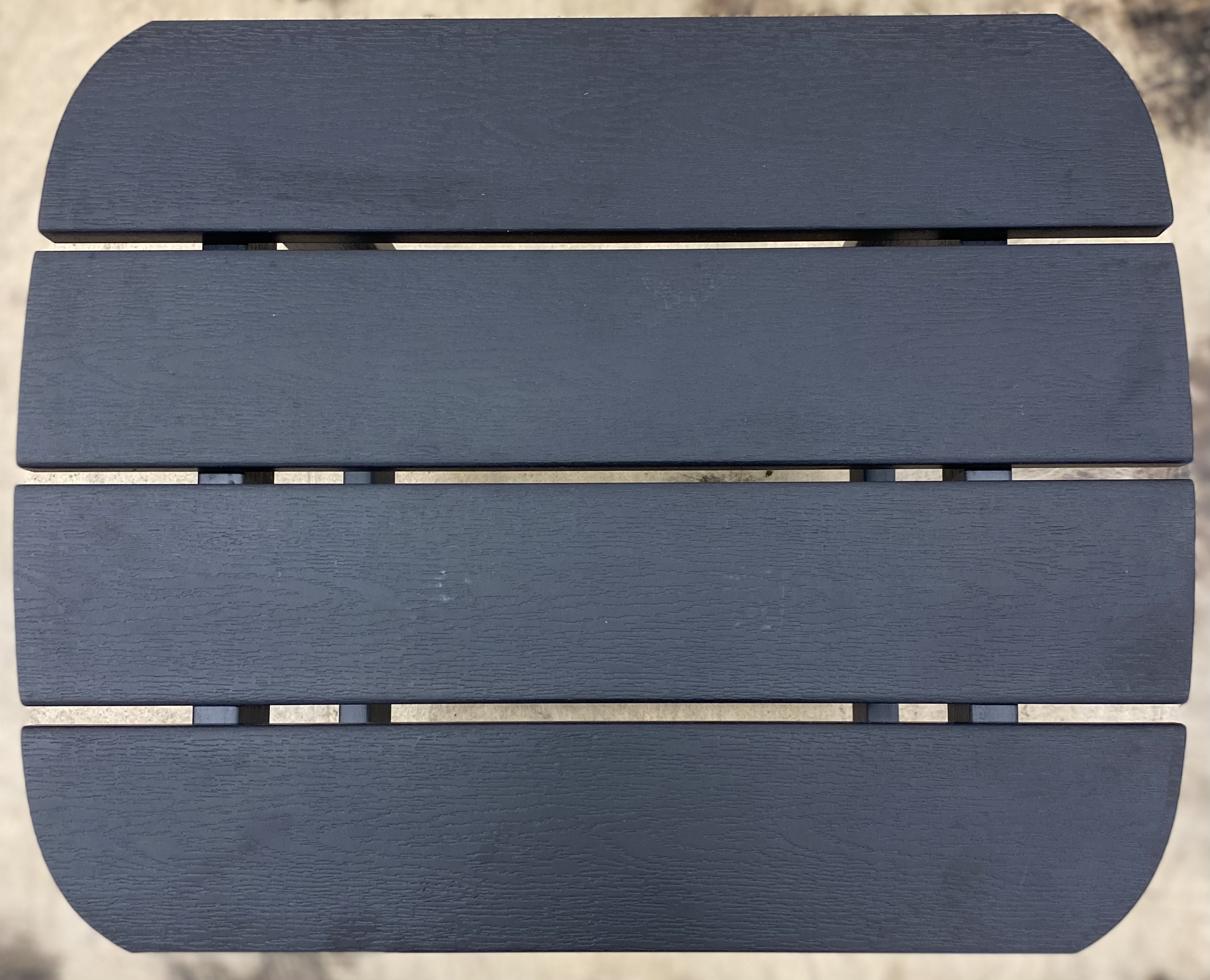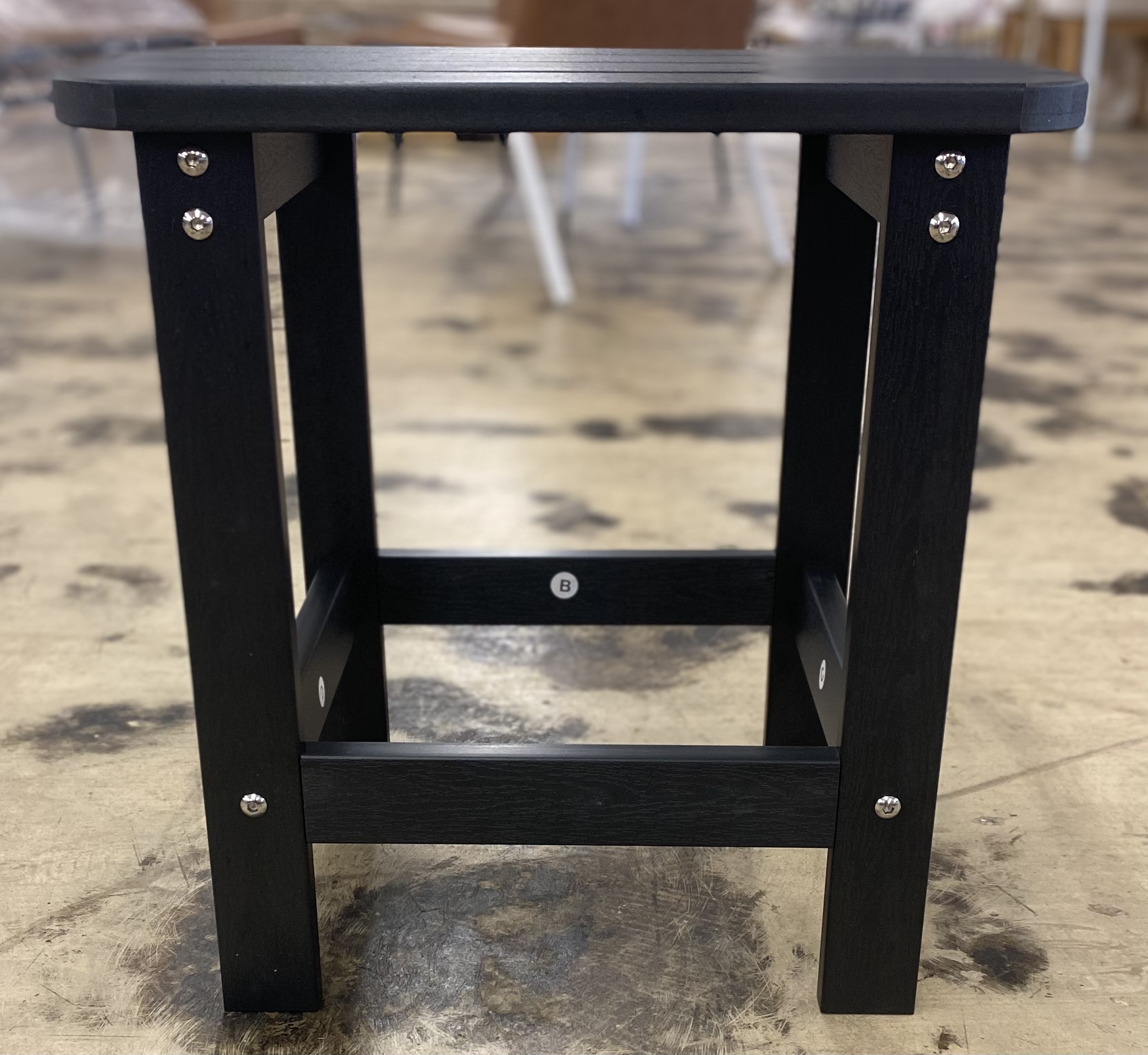 Tie all aspects of your outdoor décor together with the unsung hero of design, the side accent table. The classic look of this poly resin side table mimics the lattice design of your Adirondack chairs but will also blend seamlessly with other patio furniture. Designed for indoor or outdoor use, place this slatted side table in your sunroom or on the front porch for a cohesive look. Longevity and durability are important hallmarks for quality furniture and this patio side table is up to the task. Constructed from polystyrene, this accent patio table is more durable than plastic and won't chip, splinter or peel but is lightweight and easily portable to change up your design. Metal screws securely join all pieces of this poly resin table allowing it to hold up to 200 lbs. static weight capacity. Exemplary UV, weather and stain resistance makes this patio furniture table an ideal piece for your deck, patio, or poolside or to hold drinks and snacks while camping or tailgating. Assembly takes less than 30 minutes for your convenience. Pair this poly resin patio table with our set of 2 or 4 all-weather poly resin wood Adirondack chairs for the complete set up. Additional Features: Stainless Steel Hardware is rust resistant, Assembles in 30 Minutes or Less for quick use, Colorful Adirondack style patio table great for all environments such as poolside, camping and tailgating, Mix or match with our All-Weather Poly Resin Wood Adirondack Chairs