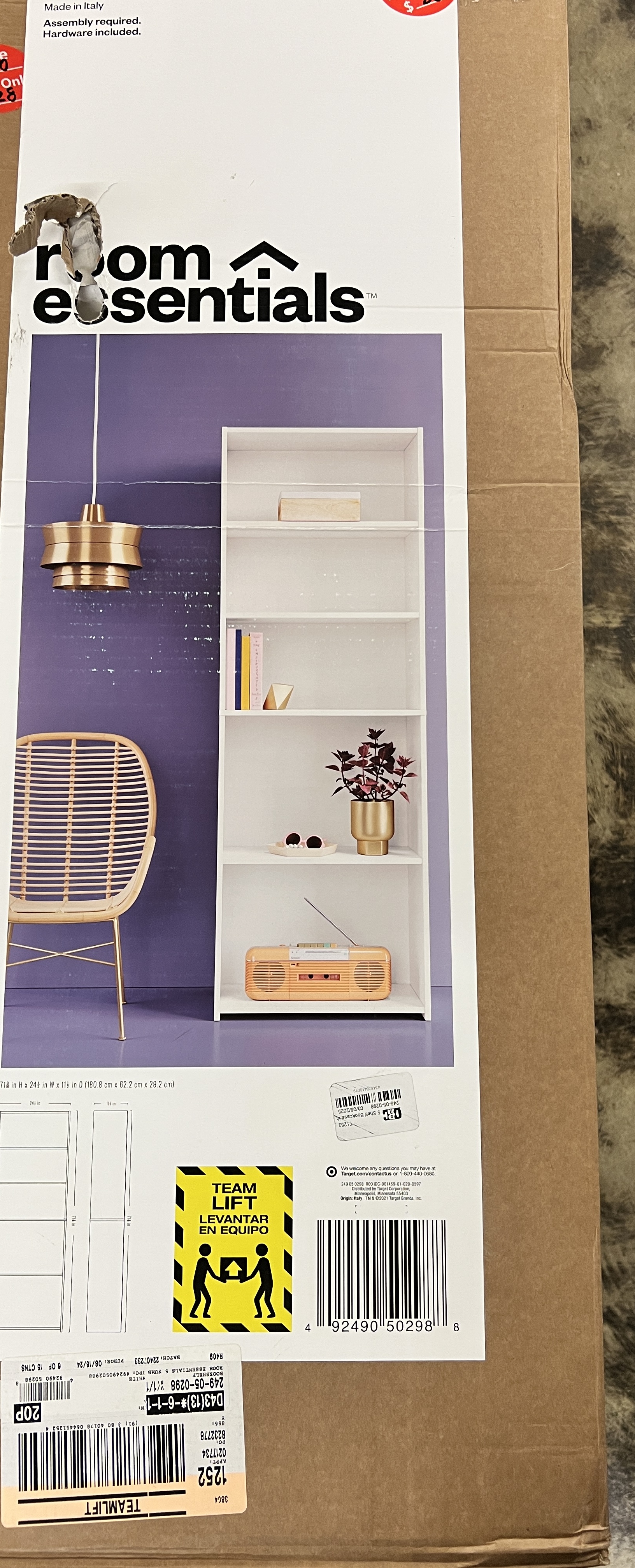 Display books, mementos and pictures in style with the 5-Shelf Bookcase from Room Essentials™. Standing at about 71 inches high, this wood-finish bookshelf comes with five open, adjustable shelves, making it easy to fit your favorite possessions while adding a functional and decorative touch to your room. The spacious vertical bookcase is an ideal pick to keep your treasures organized and accessible - from artwork to your favorite novels to picture albums and more - in any area of your home.
