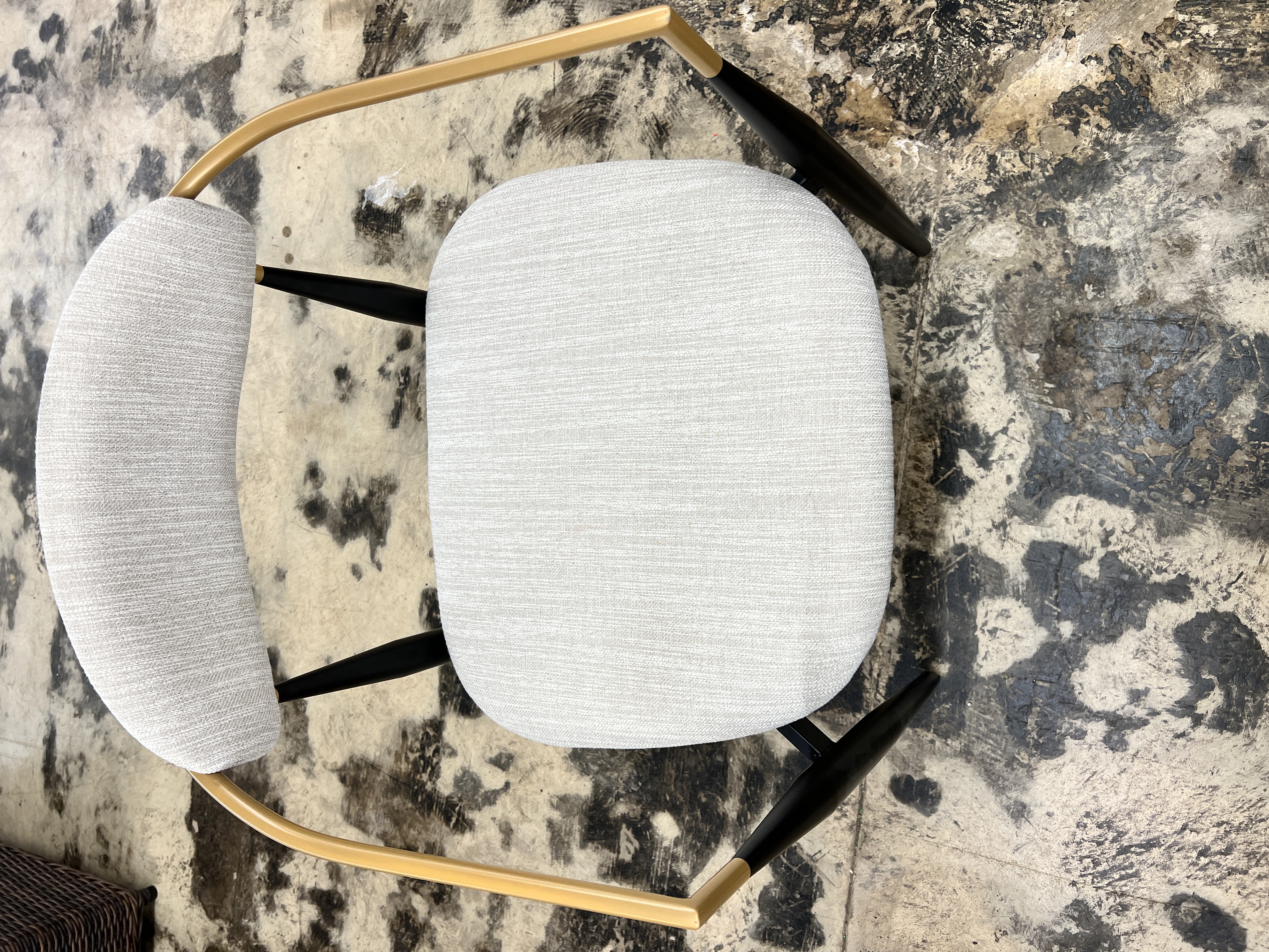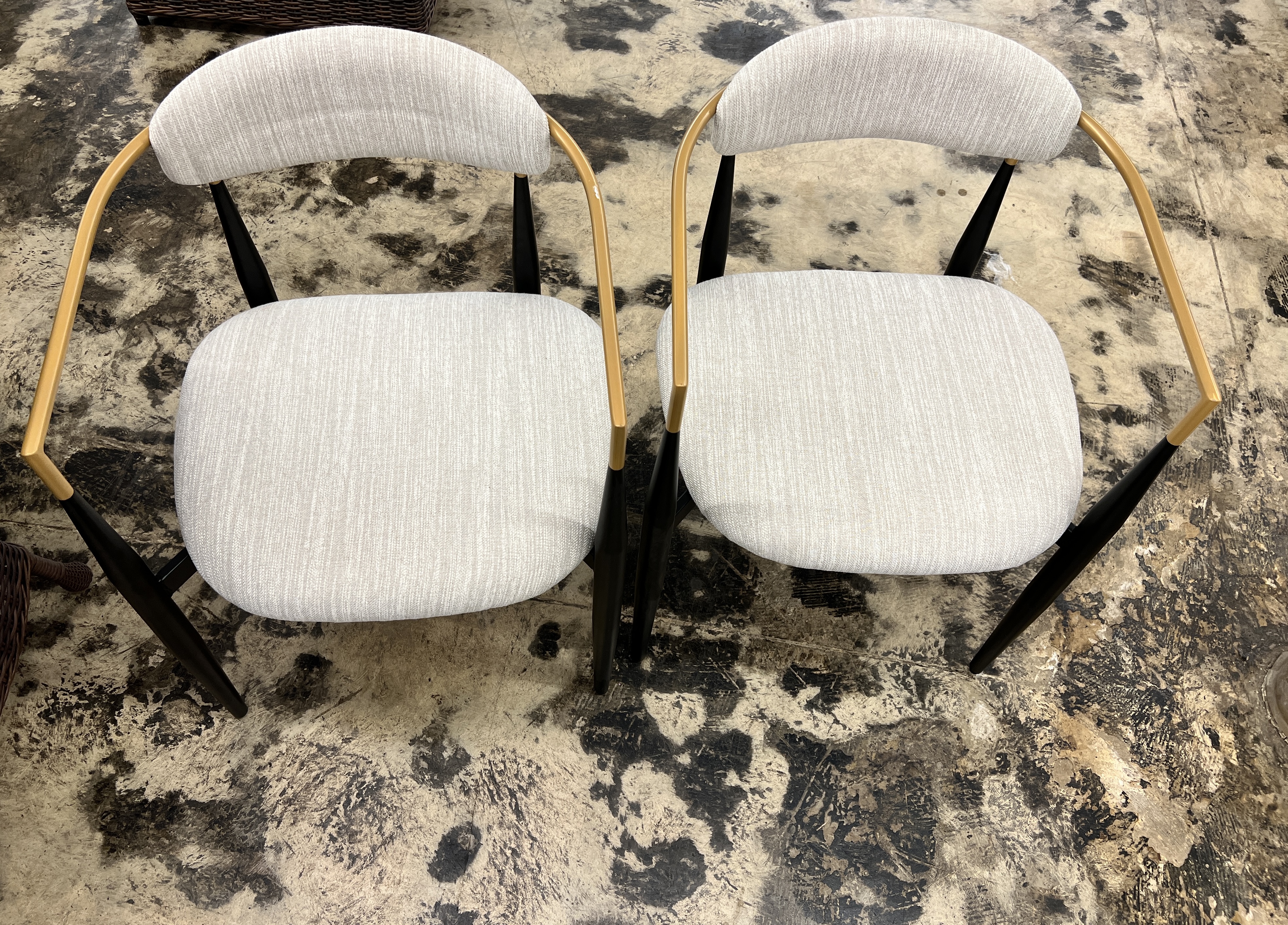 Whether you prefer a mid-century modern design aesthetic or a more modern ambiance, this chic pair of dining chairs is just what your dining room is missing. Featuring unique, open iron frames with gold accents, these chairs truly take an unexpected approach to dining room seating. Their smooth, opulent upholstery makes them incredibly comfortable and adds perfect amount of contrast. Pair them with a coordinating table for a cohesive look or go eclectic route by styling them with a traditional or industrial table