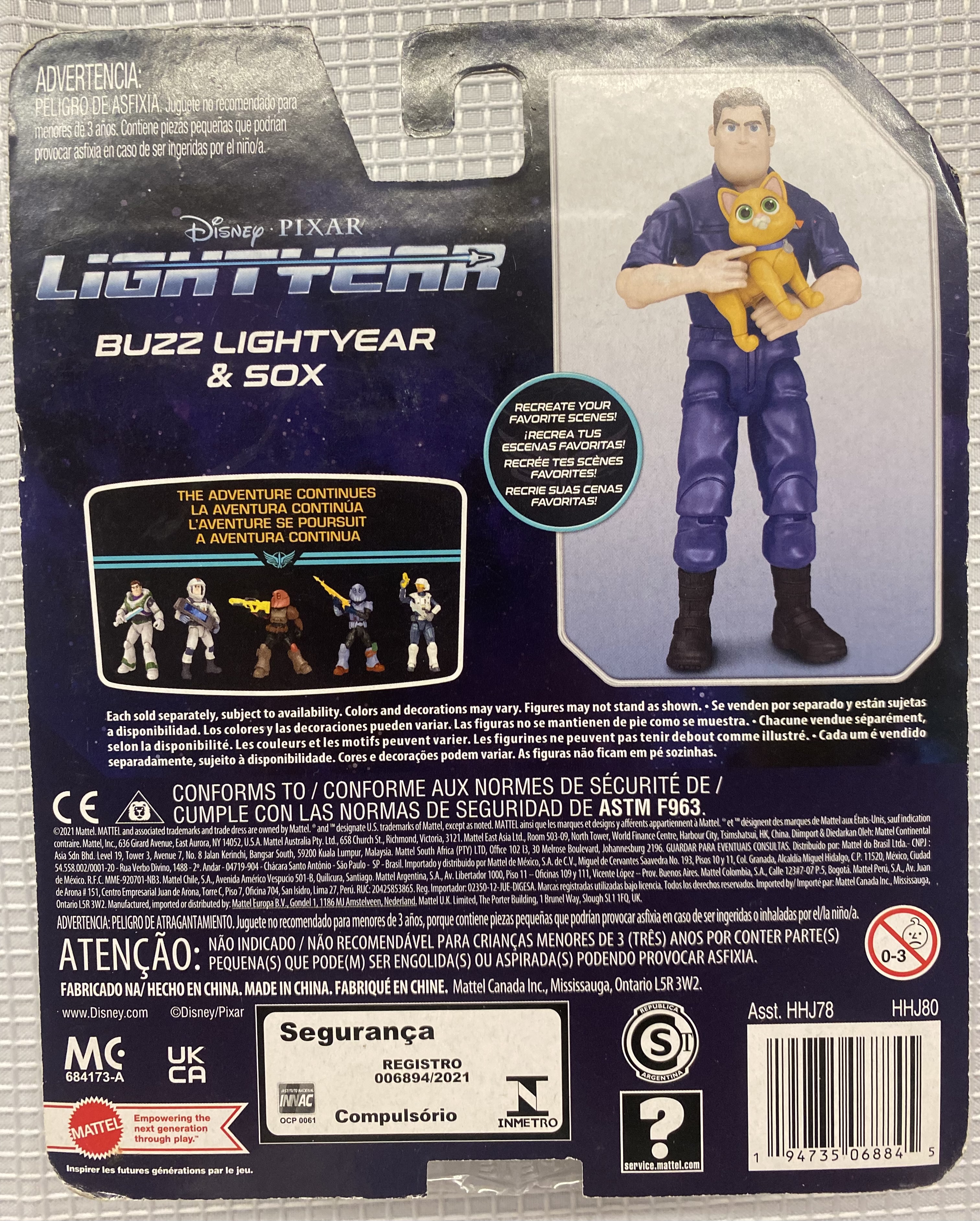 Discover Disney and Pixar's Lightyear. Stranded on an uncharted planet, Buzz Lightyear and his crewmates will need to battle hostile plants, giant bugs and the ultimate threat, Zurg, to complete their mission and return home. This high-quality, posable action figure of Buzz Lightyear in his jumpsuit will inspire creative space ranger play or a spectacular display. At 5 inches tall, this movie-authentic detailed figure has 12 movable joints to recreate all his signature poses. He comes with his robot companion Sox, with posable legs, tail and head. Other characters and vehicles are also available at this scale, so fans can recreate the excitement of battle, flight and exploration and create dramatic Lightyear displays. Each figure and vehicle sold separately, subject to availability. Colors, dimensions and decorations may vary.