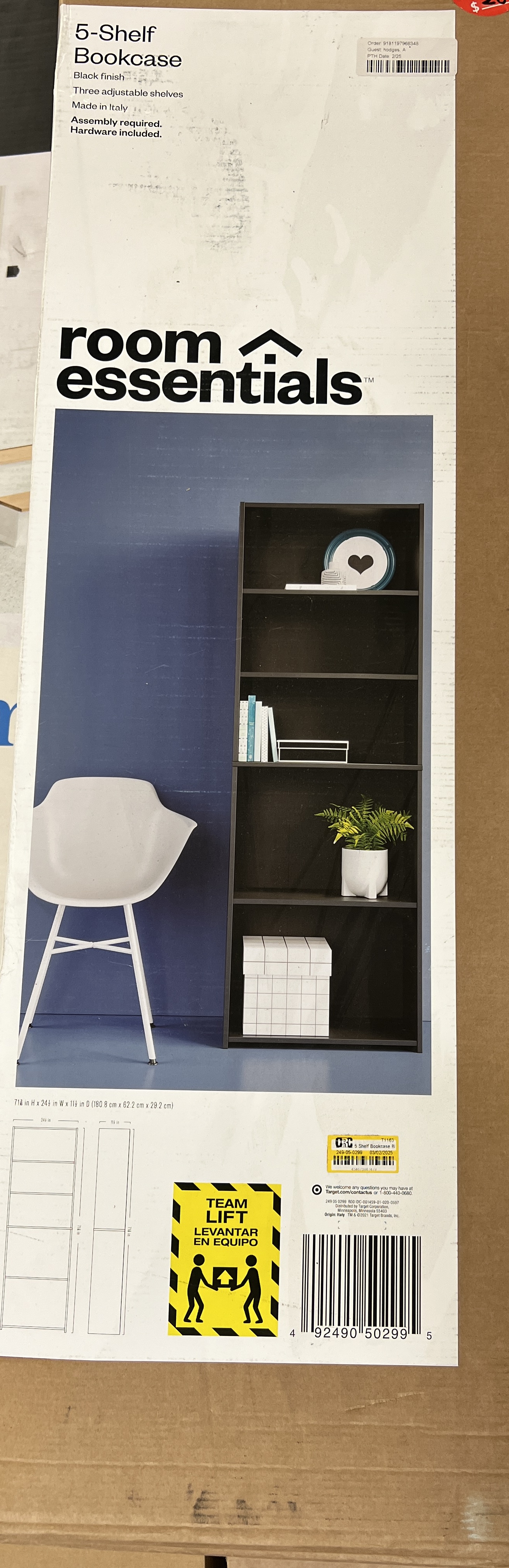 5 Shelf Bookcase Black - Room Essentials™: Adjustable, Open Storage, Modern Style, 71" Tall