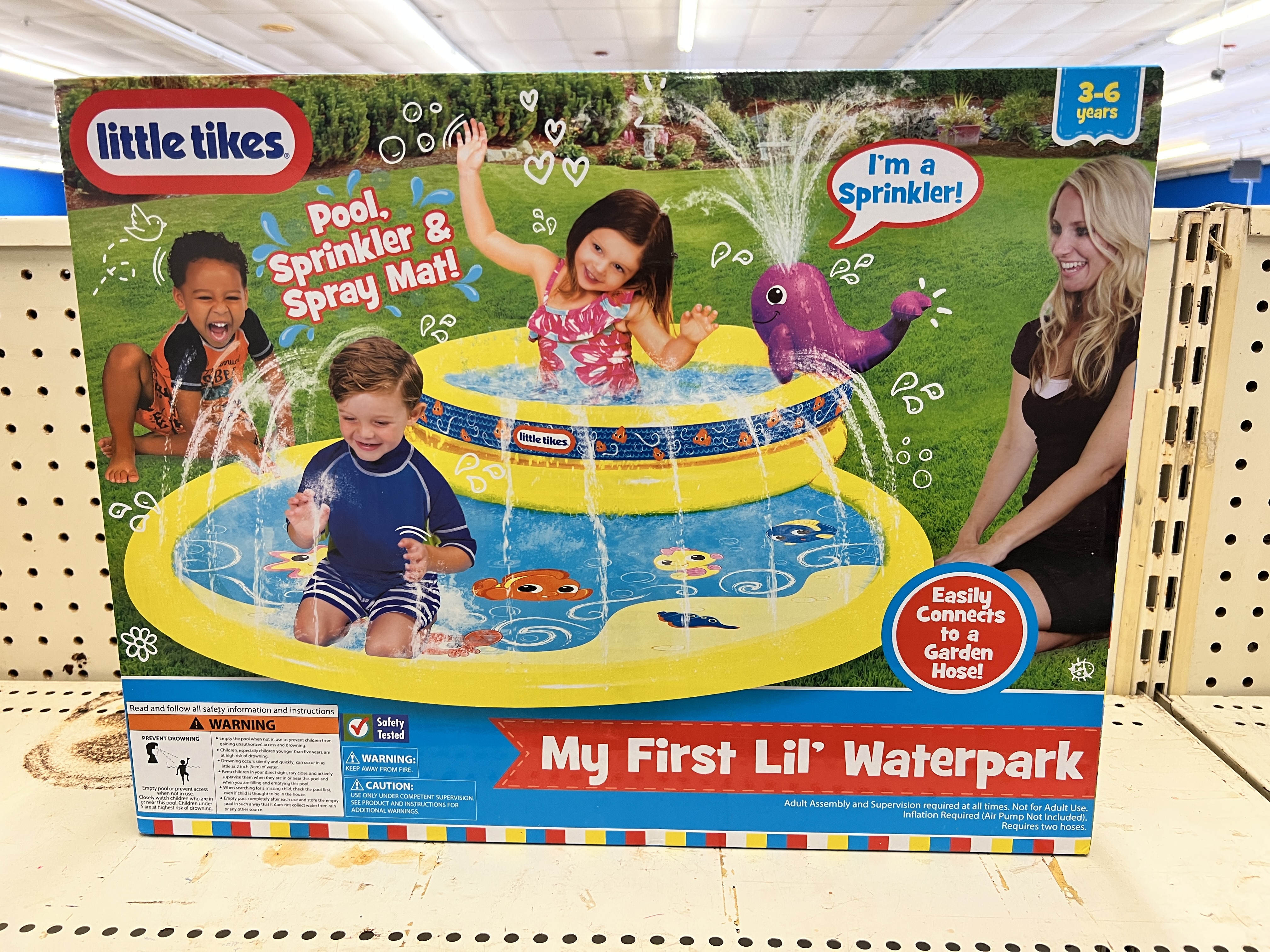 The Little Tikes My First Lil Water Park is a fun and easy way to keep your child cool and entertained on a hot summer day. This inflatable water playset includes a round splash pool, a whale sprinkler, and a spray mat with multiple water spouts for endless fun. The pool is made of durable, heavy-weight vinyl, making it easy to clean and store when not in use. The whale sprinkler features a built-in soft spray fountain, while the spray mat creates a refreshing splash zone for kids to enjoy. Whether they want to splash, swim, or play, this versatile backyard water toy provides hours of summer fun. Perfect for outdoor play, it encourages active movement, sensory play, and water exploration. • Enjoy swimming and splashing fun and encourage active outdoor play with this inflatable water park • Includes one round splash pool, one whale sprinkler, and one spray mat with multiple water jets and spouts • Features a built-in soft spray fountain on the whale sprinkler and a refreshing splash zone on the spray mat • Easy to set up and store, no tools required, air pump not included • Made of durable, heavy-weight vinyl, perfect for backyard water play, toddler splash fun, and summer activities • Great for outdoor water play, sensory water activities, and cooling off on hot days