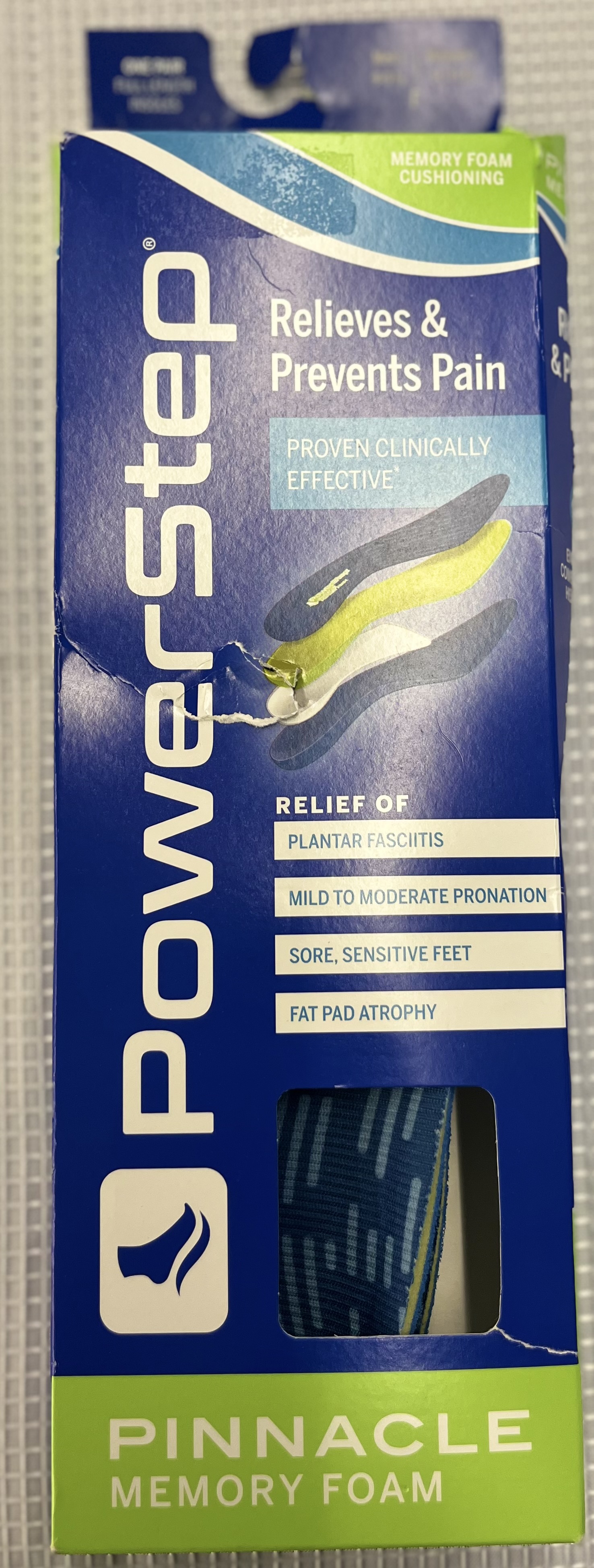 PowerStep Memory Foam Orthotic Insoles provide ultimate comfort and support for those who have more sensitive feet or those who are one there feet for long hours. The plush memory foam layer is a slow-recovery foam that conforms to the shape of the foot for added comfort and pressure relief, alleviating pain associated with fat pad atrophy/degeneration. Pinnacle Memory Foam full length insoles with built-in neutral arch support and two layers of plush cushioning are the perfect balance of comfort and support and is intended for footwear where the factory insoles can be removed and designed for shoes such as Athletic (Walking/Running), Work, & Casual Dress Shoes.