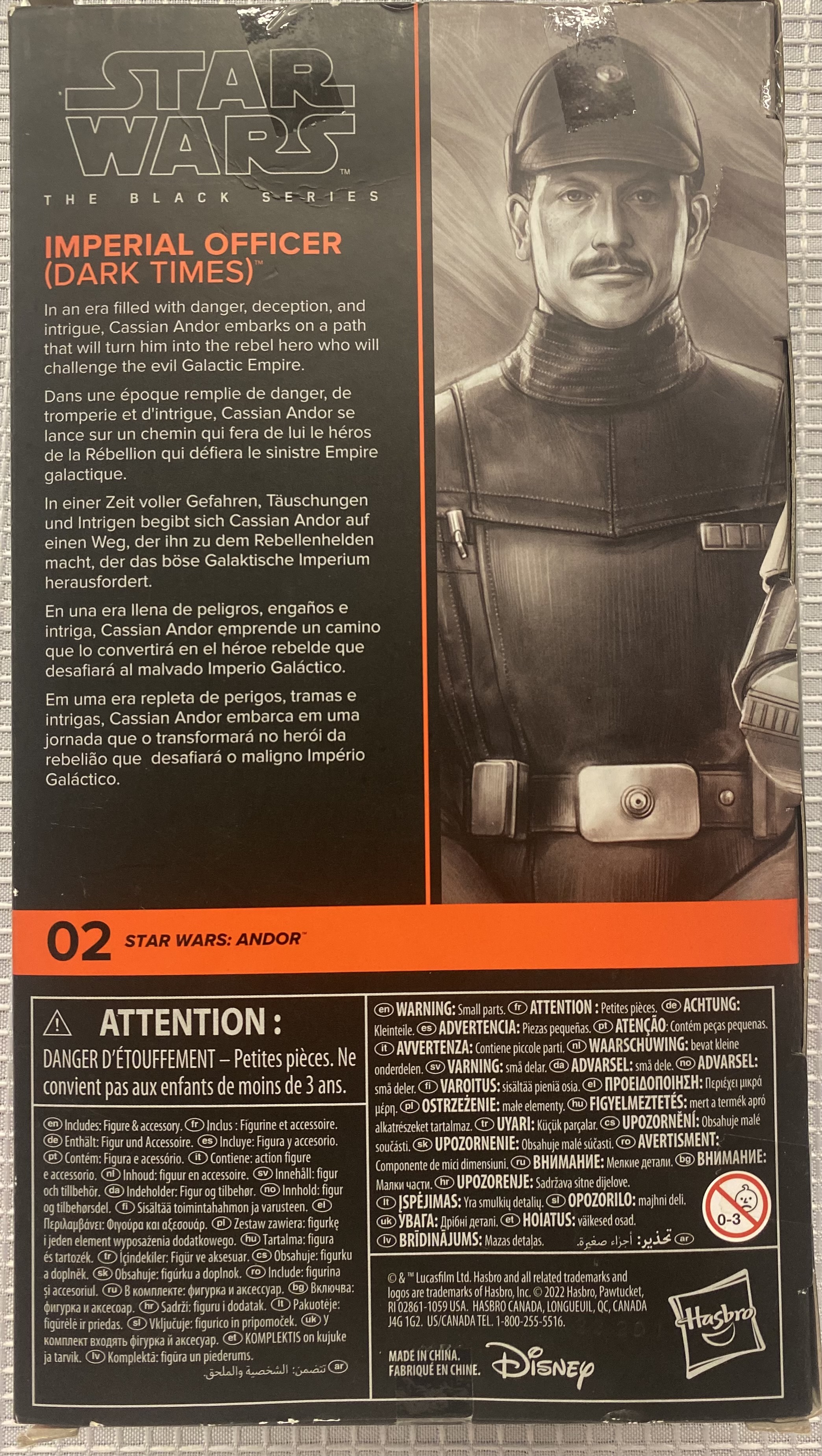 In an era filled with danger, deception, and intrigue, Cassian Andor embarks on a path that will turn him into the rebel hero who will challenge the evil Galactic Empire. Kids and collectors alike can imagine the biggest battles and missions in the Star Wars saga with figures from Star Wars The Black Series! With exquisite features and decoration, this series embodies the quality and realism that Star Wars devotees love. Star Wars The Black Series includes figures, vehicles, and roleplay items from the 40-plus-year legacy of the Star Wars Galaxy, including comics, movies, and animated series. (Additional products each sold separately. Subject to availability.) The 6-inch-scale Black Series figure is detailed to look like the Imperial Officer (Dark Times) character from Star Wars: Andor, featuring premium detail and multiple points of articulation. Star Wars products are produced by Hasbro under license from Lucasfilm Ltd. Hasbro and all related terms are trademarks of Hasbro.