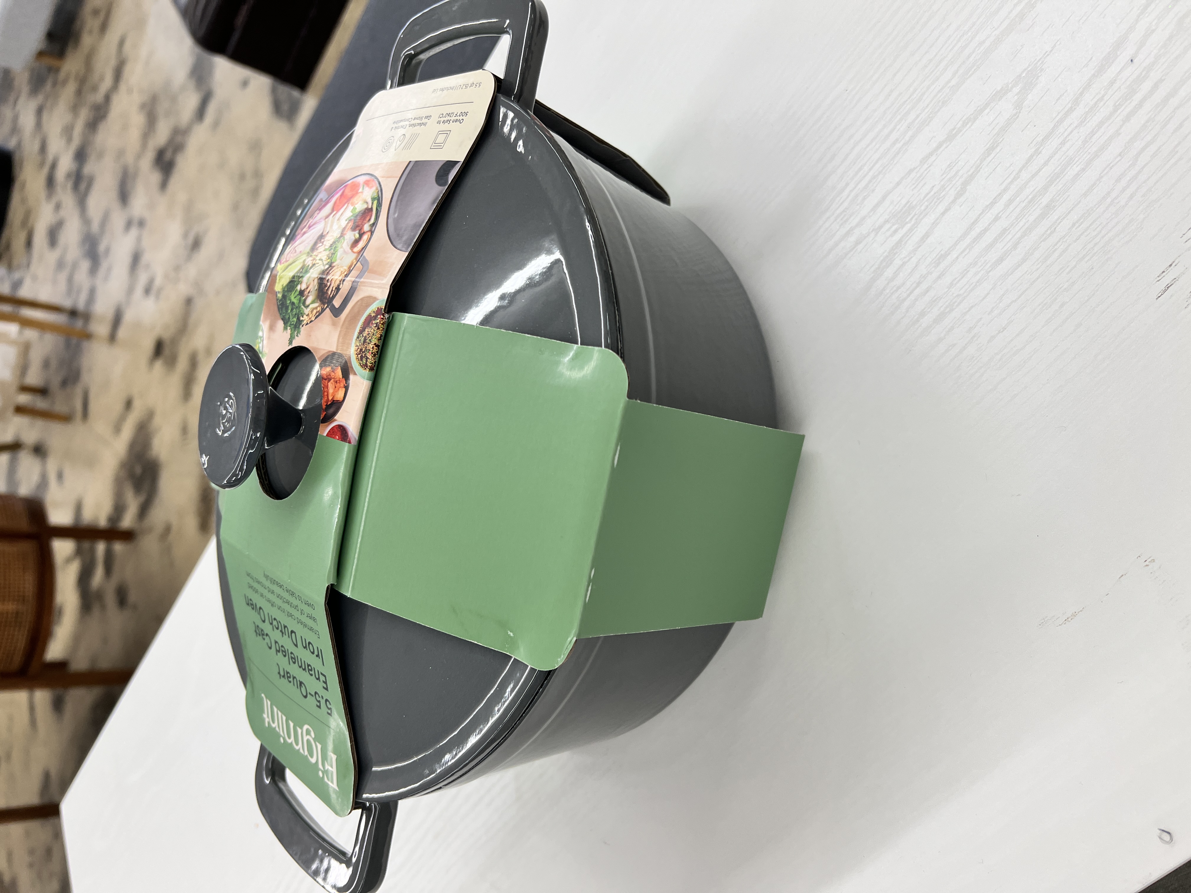 From stews and soups to pasta dishes and more, prepare satisfying meals for your family in the 5.5-Quart Enamel Dutch Oven from Figmint™. Made from sturdy cast iron with an enamel coating that helps it retain heat longer, this Dutch oven comes with a matching lid with a knob for easy lifting. Great for use with induction, gas and electric stoves, it features two side handles for carrying. Plus, with the beautiful finish, this Dutch oven looks as good as it cooks. Figmint™: Mixing up a taste of adventure everyday. 5.5qt Dutch oven • Enameled cast iron construction helps retain heat Suitable for induction cooking • 2 side handles for carrying • Knob on lid for easy on and off • Oven safe up to 500 degrees F • Induction, gas and electric stove compatible • Hand wash to clean