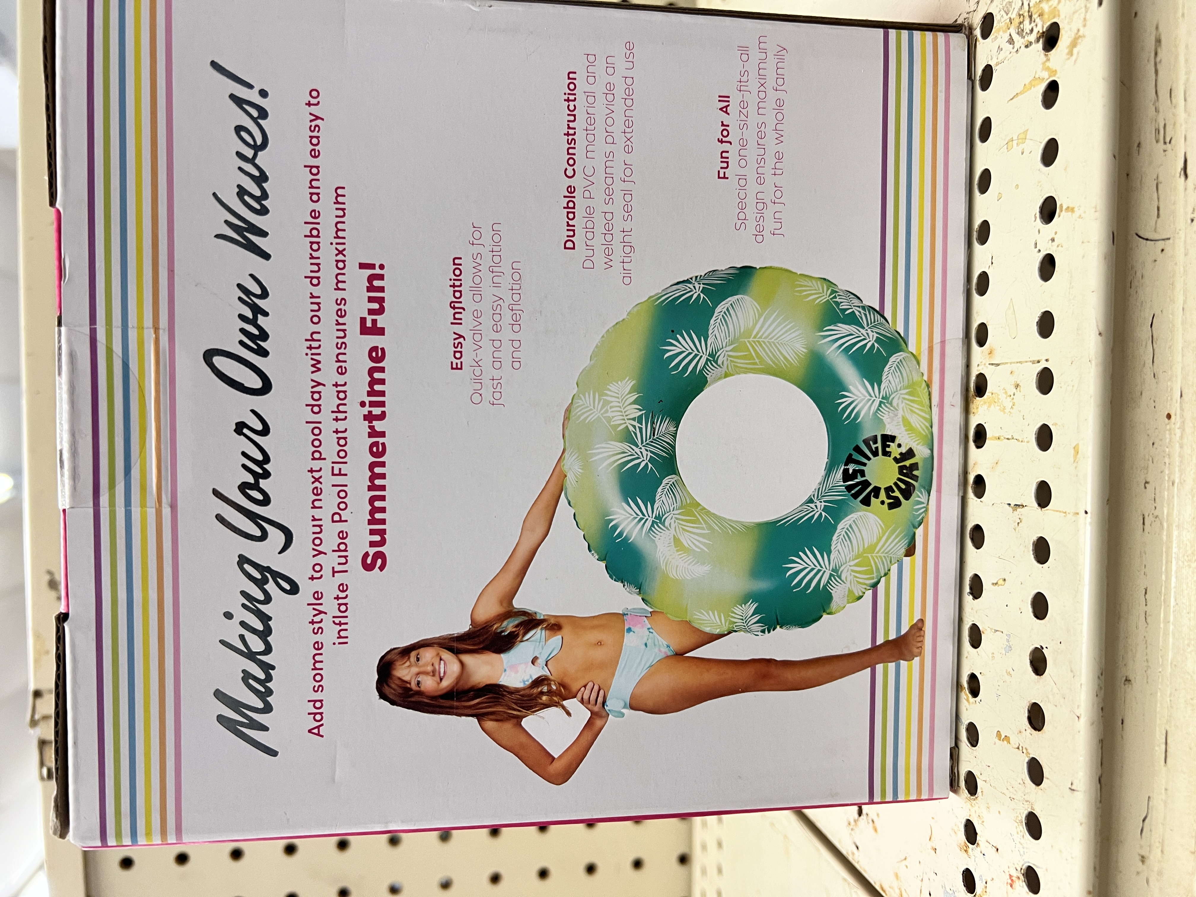 Justice Tube Pool Float with Grab Handles - Fabulous Fun! Perfect companion for a pool party or any summer day at the beach. Enjoy the water cool and carefree with Justice Ring design. With a sturdy, durable, construction, you'll be set up for hours of fun in the water. Color Green, for Kids and Adults from Ages 6+, Unisex • Easy Grip Handles - Molded handles offer a secure grip for easy portability. • Easy Inflation - Quick valve allows for fast and easy inflation and deflation. • Durable Construction - Durable PVC material and welded seams provide an airtight seal for extended use. • Fun for All - Special one-size-fits-all design ensures maximum fun for the whole family • Color: Green • For Kids and Adults, Ages 6+ • Unisex