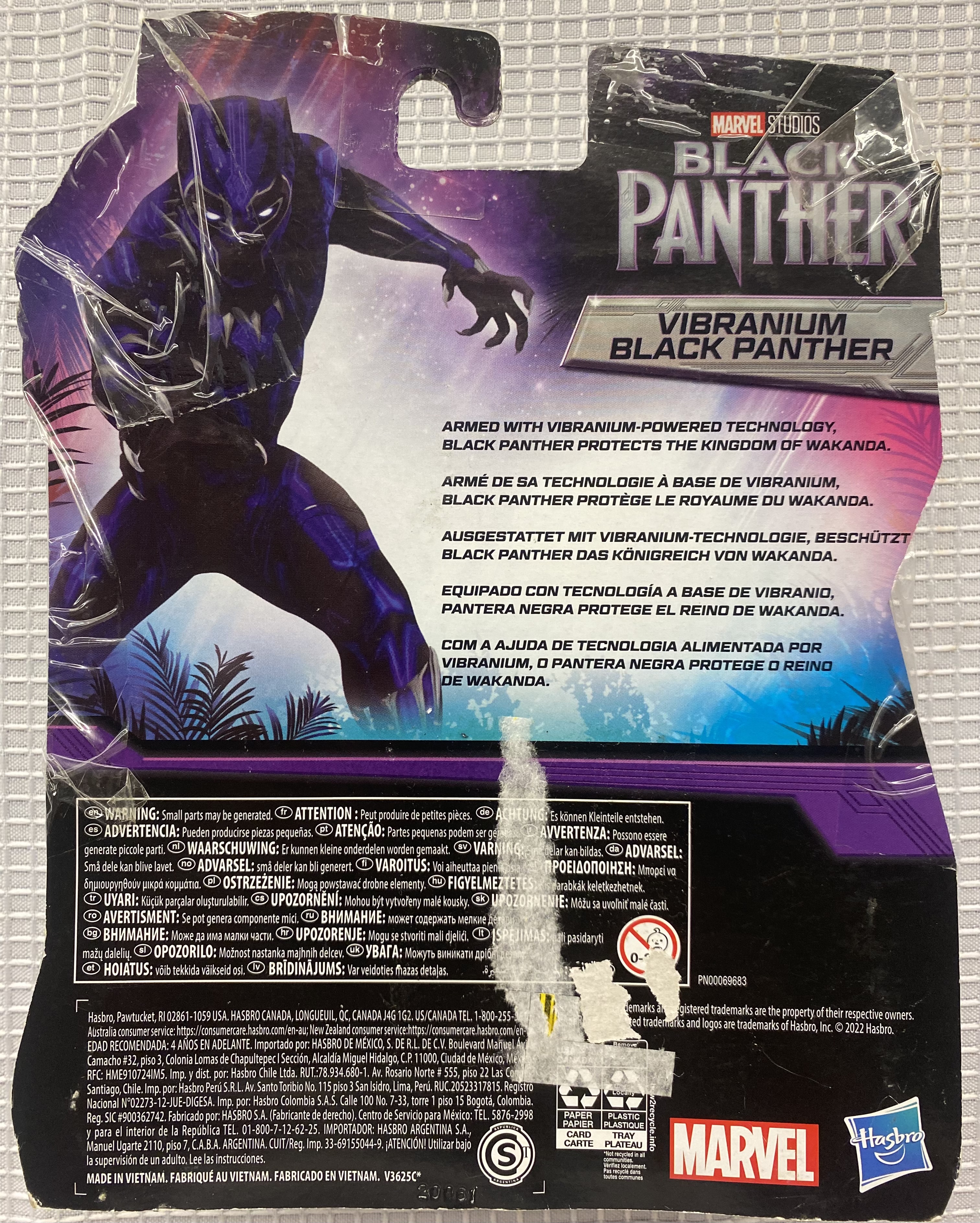 Armed with vibranium -powered technology, Black Panther protects the kingdom of Wakanda! Hero. Legend. King. Commemorate the incredible impact of Marvel’s acclaimed Black Panther, part of the Marvel Cinematic Universe, with figures from the Marvel Studios Legacy Collection. Kids ages 4 and up can imagine the biggest battles from the Marvel entertainment with Black Panther action figures, featuring entertainment-inspired design, detail, and accessories. Look for more Marvel Studios Legacy Collection Black Panther figures to imagine the action and adventure of Black Panther! (Each sold separately. Subject to availability.) Imagine protecting the kingdom of Wakanda from evil with this 6-inch-scale Vibranium Black Panther figure with vibranium gear accessory, featuring multiple points of articulation, so boys and girls can pose their figure for adventures they imagine. WAKANDA FOREVER! Copyright 2022 MARVEL. Hasbro and all related terms are trademarks of Hasbro. Includes: Figure and accessory. Figure scale: 6 inches Ages 4 and up WARNING: Small parts may be generated. Not for children under 3 years. © 2022 MARVEL. © 2022 Hasbro. All rights reserved.