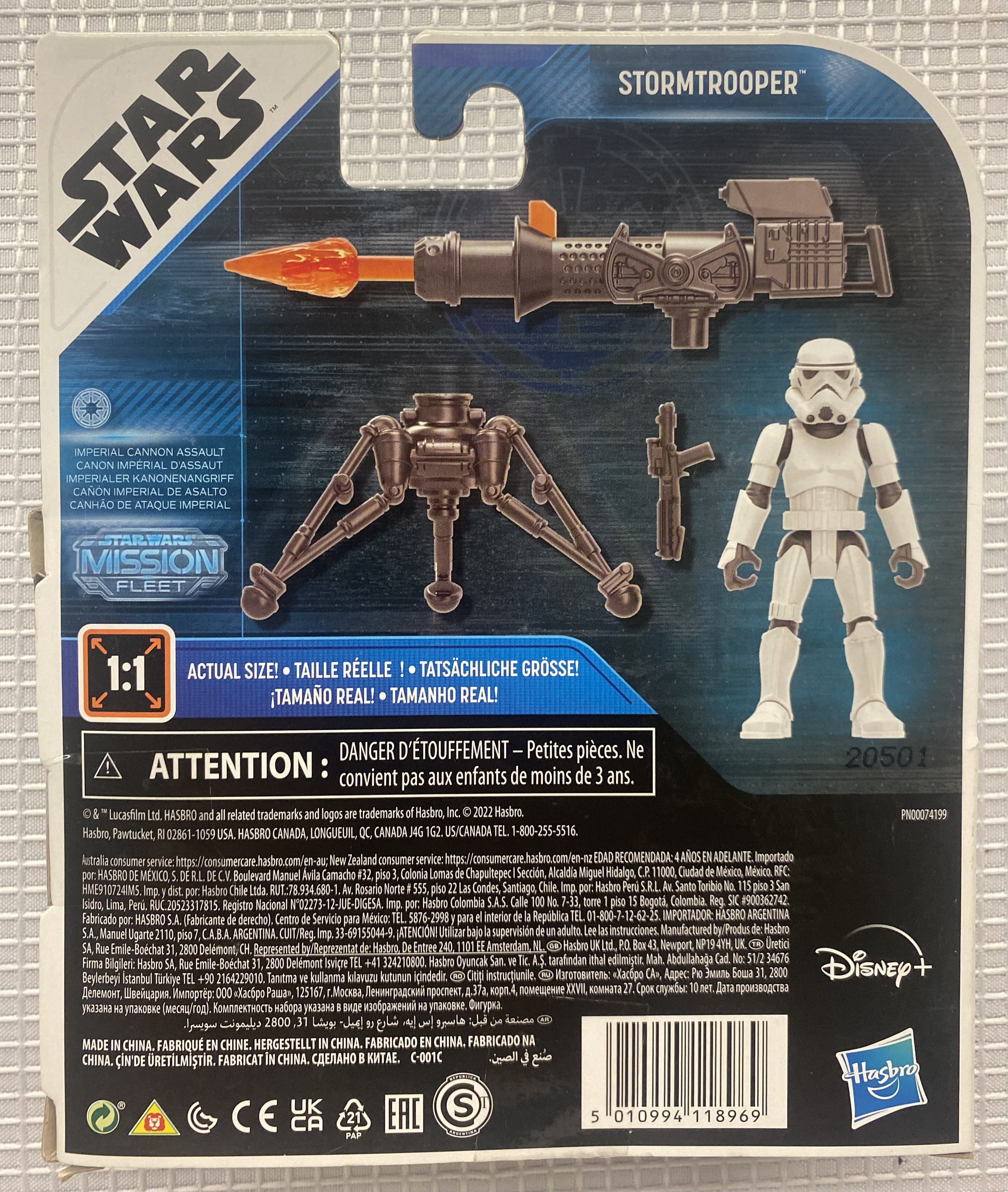 Stormtroopers are elite shock troops fanatically loyal to the Empire and impossible to sway from the Imperial cause. Blast off into galactic action with the Star Wars Mission Fleet Imperial Cannon Assault figure set! This Star Wars toy includes a 2.5-inch-scale Stormtrooper action figure with fully poseable arms, legs, and head, as well as design and detail inspired by the Star Wars Galaxy. Kids ages 4 and up will love to recreate their favorite Star Wars moments with the included accessories -- a handheld blaster, projectile, and E-Web cannon that can be mounted onto the tripod. Star Wars Mission Fleet toys are kid-friendly and make a great introduction to the Galaxy of Star Wars! (Additional products each sold separately. Subject to availability.) Star Wars products are produced by Hasbro under license from Lucasfilm Ltd. Hasbro and all related terms are trademarks of Hasbro. Includes: figure and 4 accessories. Figure scale: 2.5 inches Ages 4 and up WARNING: CHOKING HAZARD - Small parts. Not for children under 3 years. © & ™ Lucasfilm Ltd. © 2022 Hasbro. All Rights Reserved.