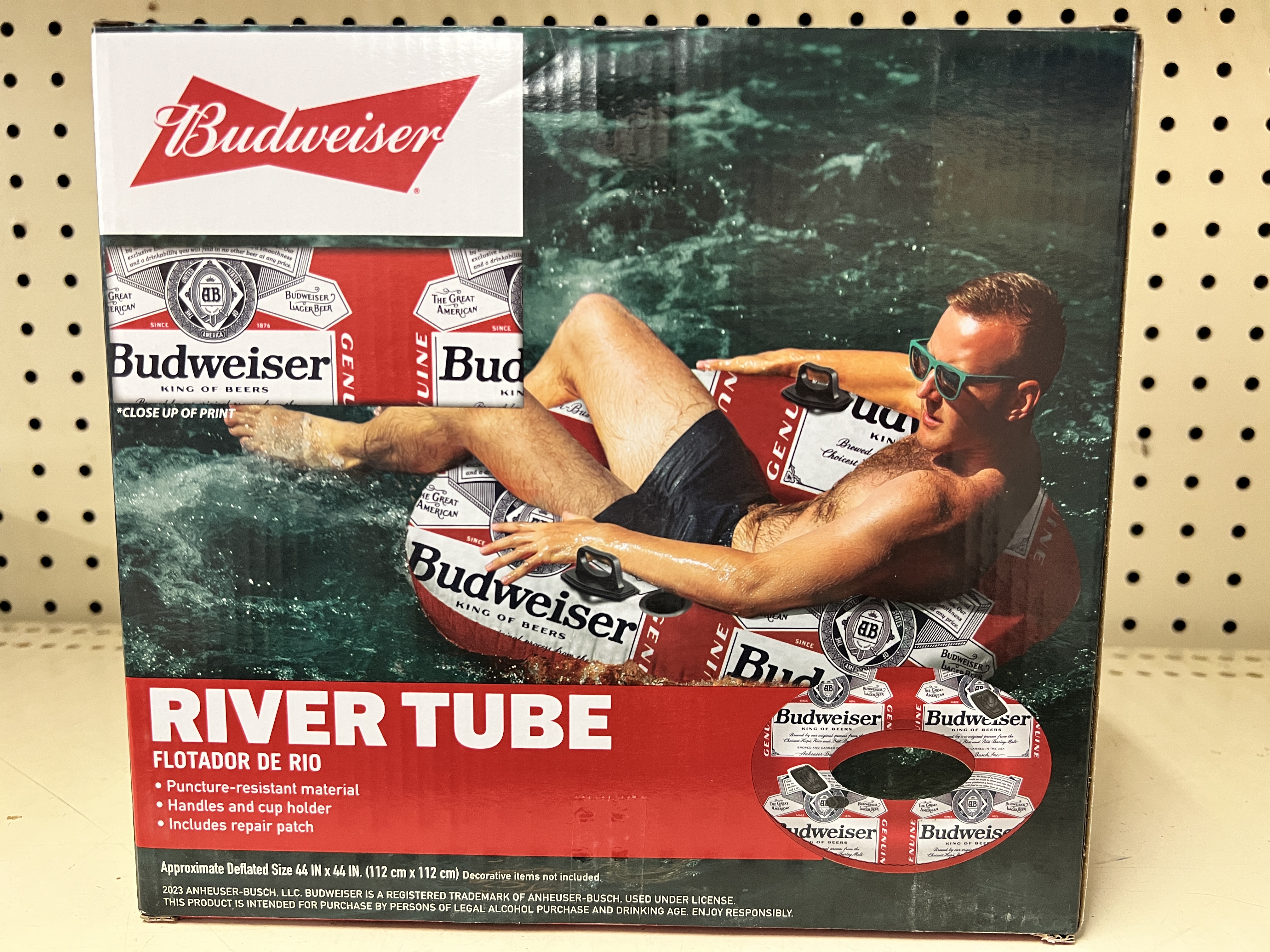 Let the good times wash in with the Budweiser Inflatable Swim Tube Float! Featuring 2 heavy-duty handles for a safe and secure ride, 1 patch repair-kit, and 1 built-in cup holder to enjoy your favorite adult beverage with. Easily inflate this float with the use of an air pump (not included) or deflate it when not in use for a simple storage solution. Designed with the classic Budweiser logo, this inner tube is built from durable, puncture-resistant materials guaranteed to last you through many fun summers to come! Officially licensed by ©Budweiser, All Rights Reserved • • • • Material: 0.32mm/0.35mm Phthalate Free PVC • Country of Origin: Imported • Size:OSFM • Age: Adult, 18+ • Features: Durable, Puncture-resistant materials • 1-Built in cup-holder • 1-Patch repair-kit • 2-Heavy-duty handles • Officially licensed by ©Budweiser, All Rights Reserved • Inflatable printed floating swim tube for beaches, pools and lakes