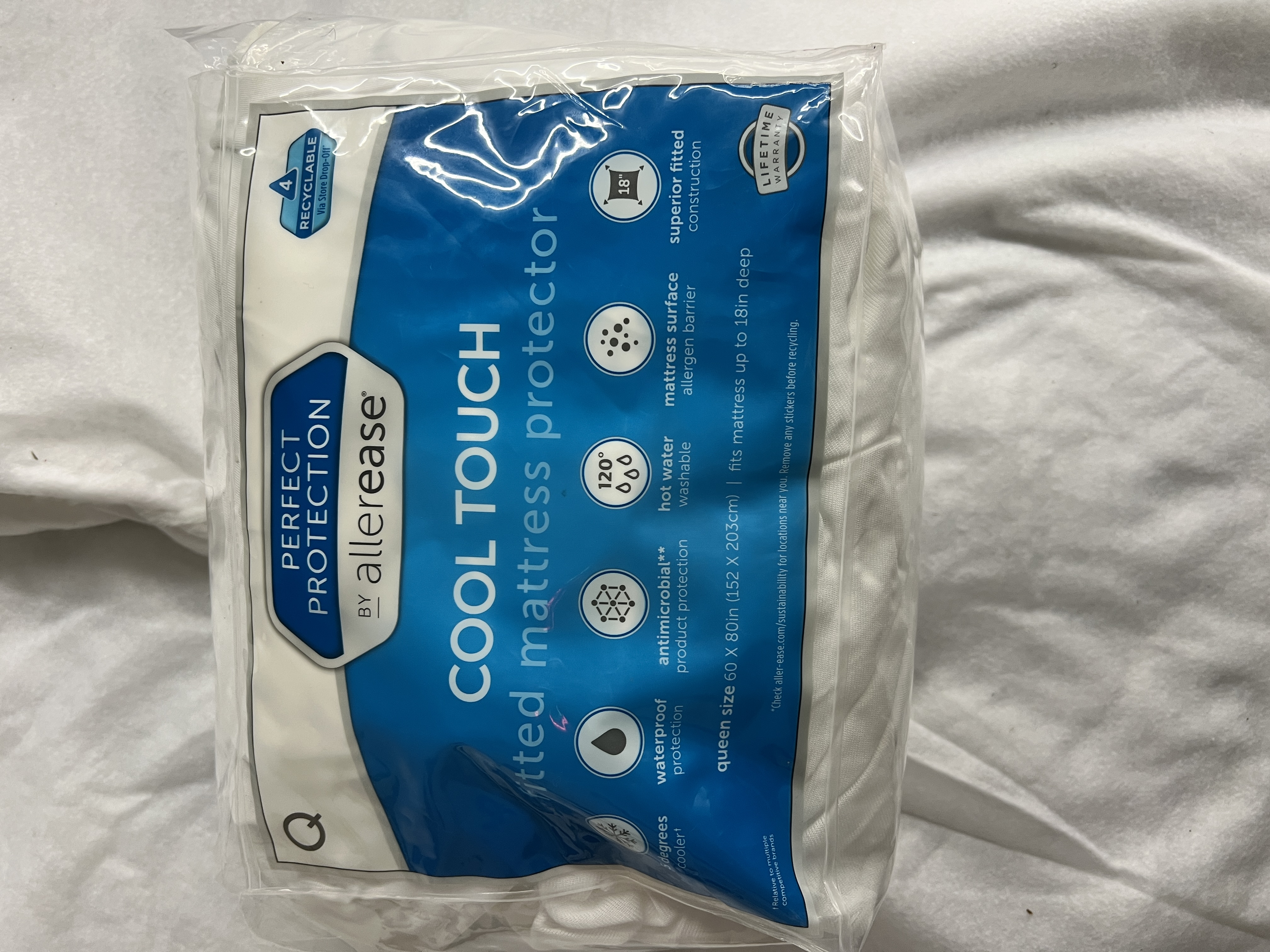 The Perfect Protection Cool Touch Mattress Protector is expertly-designed by the makers of AllerEase and tested to feel ~ 5 degrees cooler than other cooling bedding products. It is waterproof to protect your bed from spills & stains and features tightly woven fabric that prevents collection of unhealthy allergens like dust mites, pollen, and pet dander. The antimicrobial finish protects the product by inhibiting the growth of odor-causing bacteria to keep your bed fresh & clean. You can even wash it in hot water to remove surface allergens, dirt, and germs. The Cool Touch collection offers unmatched comfort & quality that is backed by a Lifetime Warranty. Perfect Protection is the perfect, convenient solution for a truly clean bed! • Mattress surface allergy protection prevents the collection of household allergens—like dust mites, pollen, and pet dander • Cool Touch fabric technology feels ~ 5 degrees cooler • Waterproof to protect from spills and stains • Soft, quiet fabric provides superior comfort • Hot water washable to remove surface allergens, dirt, and germs • Antimicrobial product protection inhibits the growth of odor-causing bacteria, keeping your bed fresh & clean • Lifetime warranty