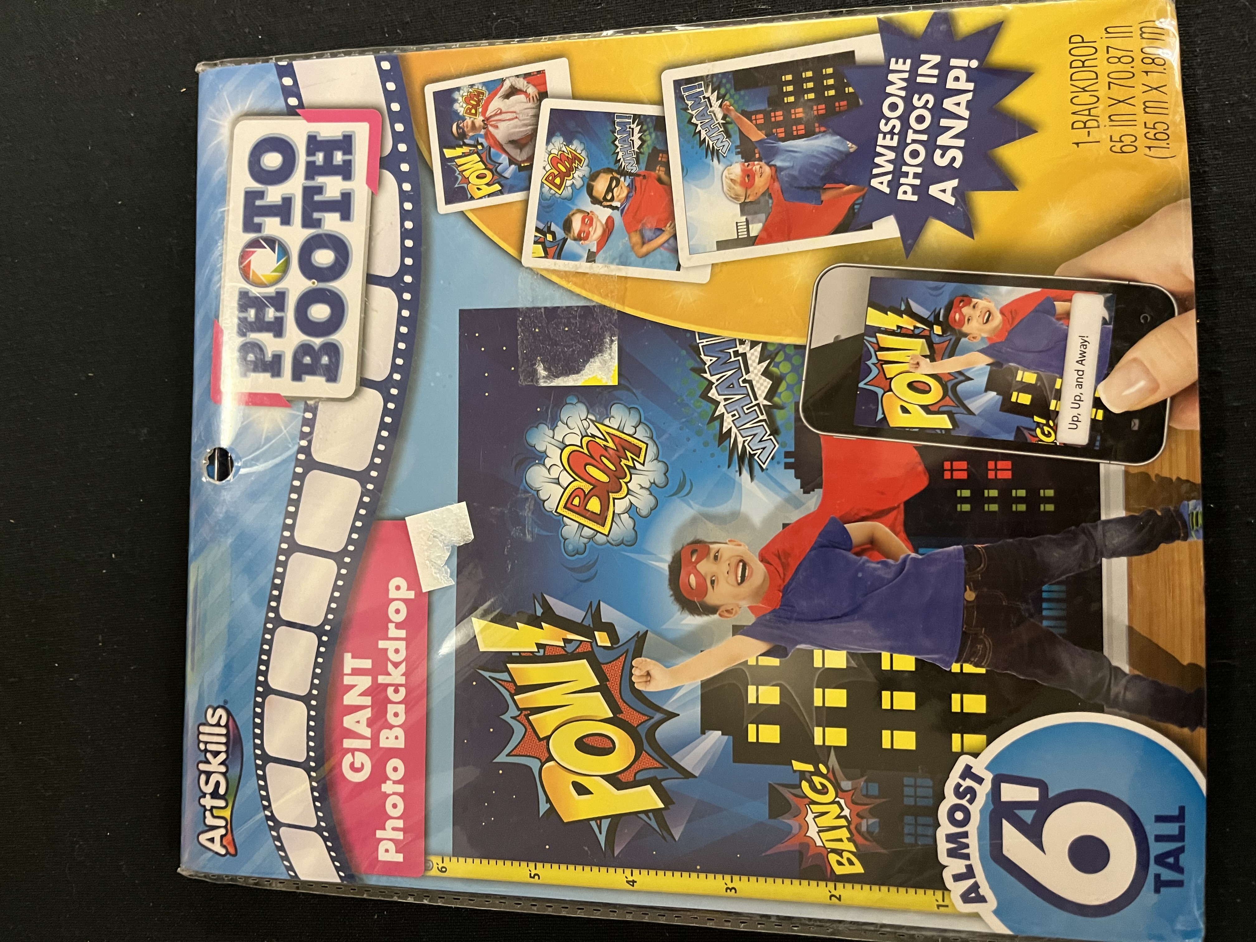 Make your party memorable with ArtSkills Giant Multi-color Superhero Photo Backdrop! This awesome 6' unisex rectangle photo backdrop makes a great decoration for boys and girls superhero parties or celebrations. Featuring words like "Pow", "Boom" and and "Bang", it designed in a Gotham style city scene. Use this background for photoshoots, photo booths, parties and selfies. Simply hang on the wall with tape and take pictures. The Superhero Photo Backdrops adds "POW!" to any photo! Model as your favorite comic book hero, or invent your own.