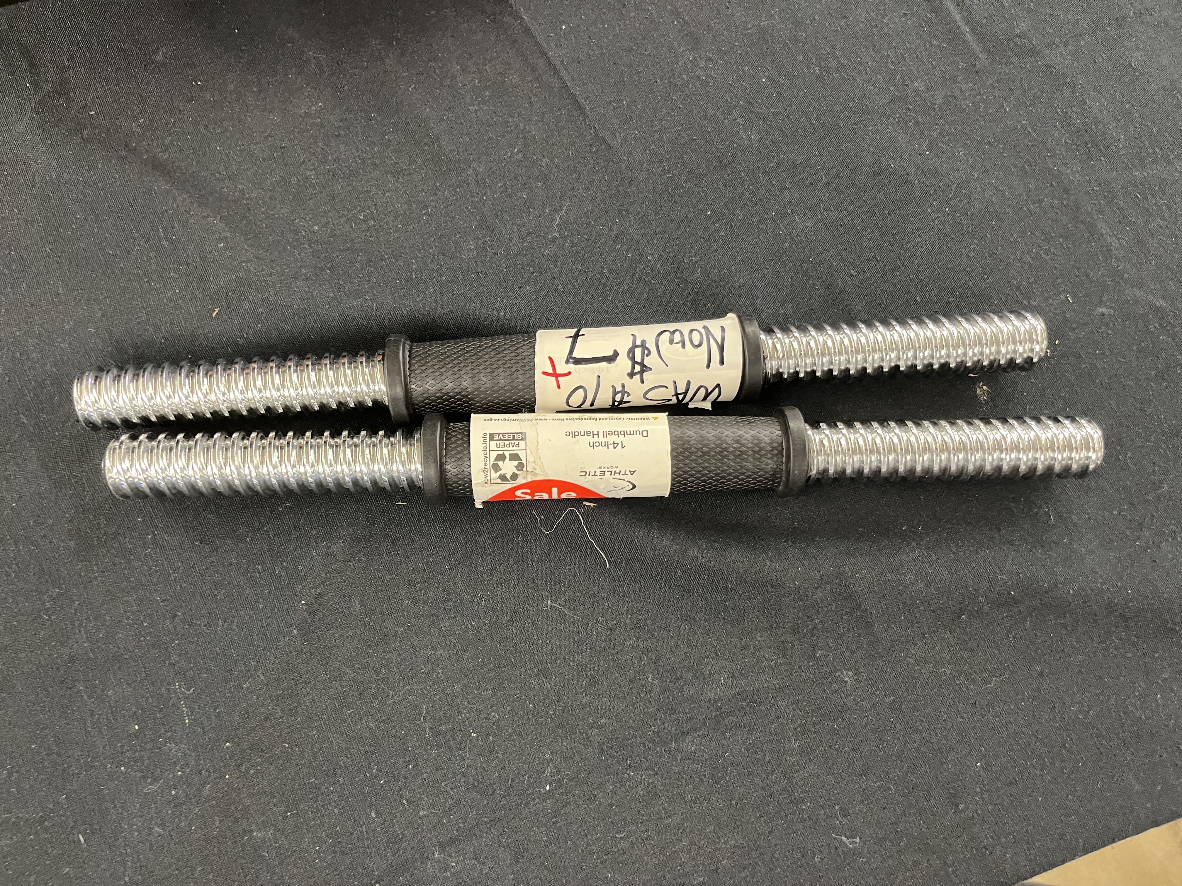 Athletic Works Standard 14" Threaded Adjustable Dumbbell Handle with Secure Star-lock Collars. It fits 1'' standard plates, 3 lbs Weight. It includes one solid steel construction dumbbell handle and 2 chromed spinlocks. This dumbbell handle accommodates all standard weight plates with 1" center hole. The rubber-coated handles provide a sure and comfortable grip. In addition, Threaded collar design provides for safe and easy plate changes. Ideal for use to increase your body muscles including chest, back, biceps, triceps, traps and your core. Good choice for the home training.