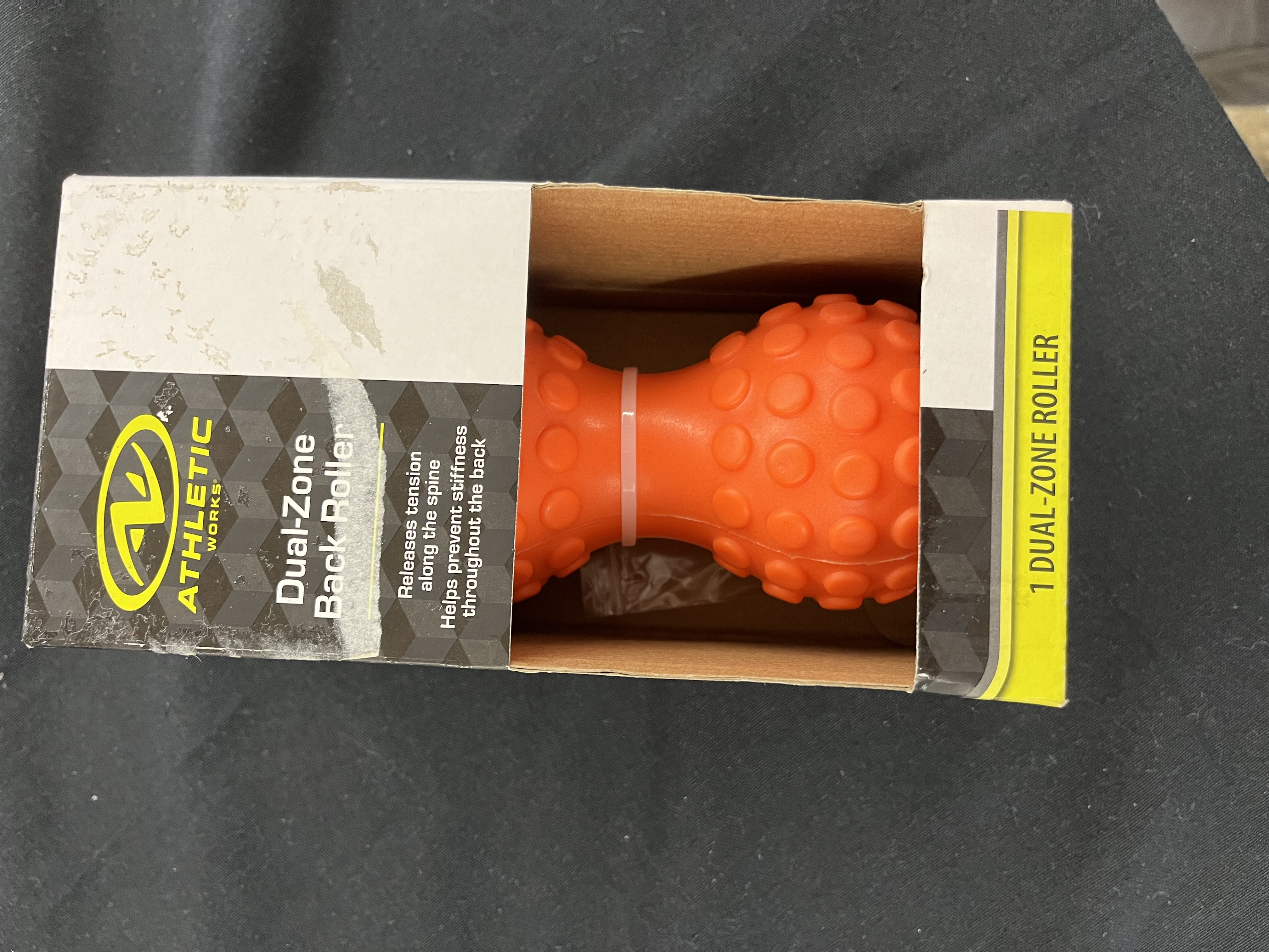 Relieve muscle tension and soreness with the Athletic Works Dual Back Massager. The ergonomic shape will gently cradle the spine to provide corrective therapy. The Muscle Roller features a textured surface to help stimulate blood flow to increase circulation and prevent stiffness. Roll between the ground and your back, along your spine, to massage soreness out of your back muscles. Our massager is also lightweight making it a great travel companion. Includes exercise guide.