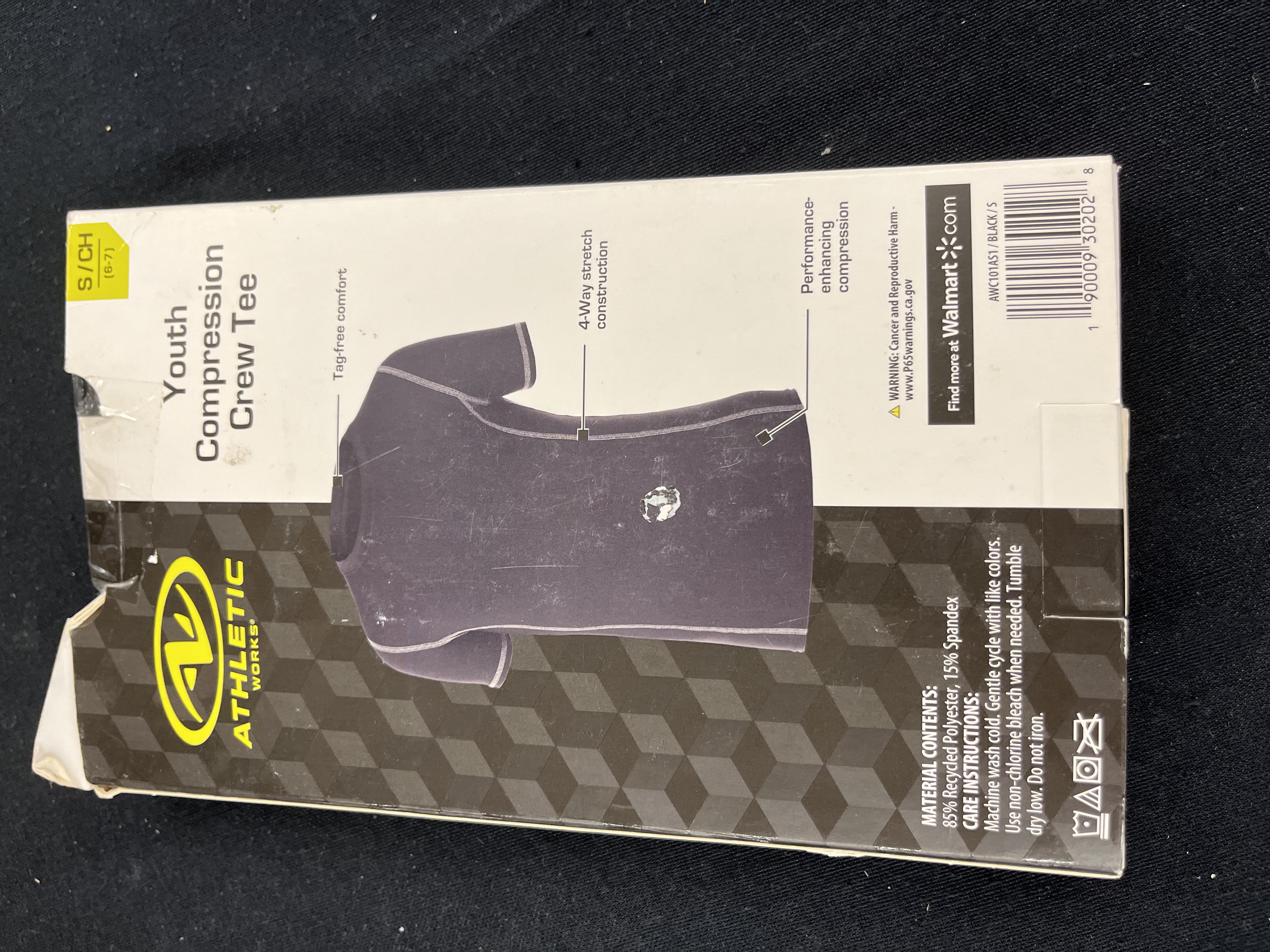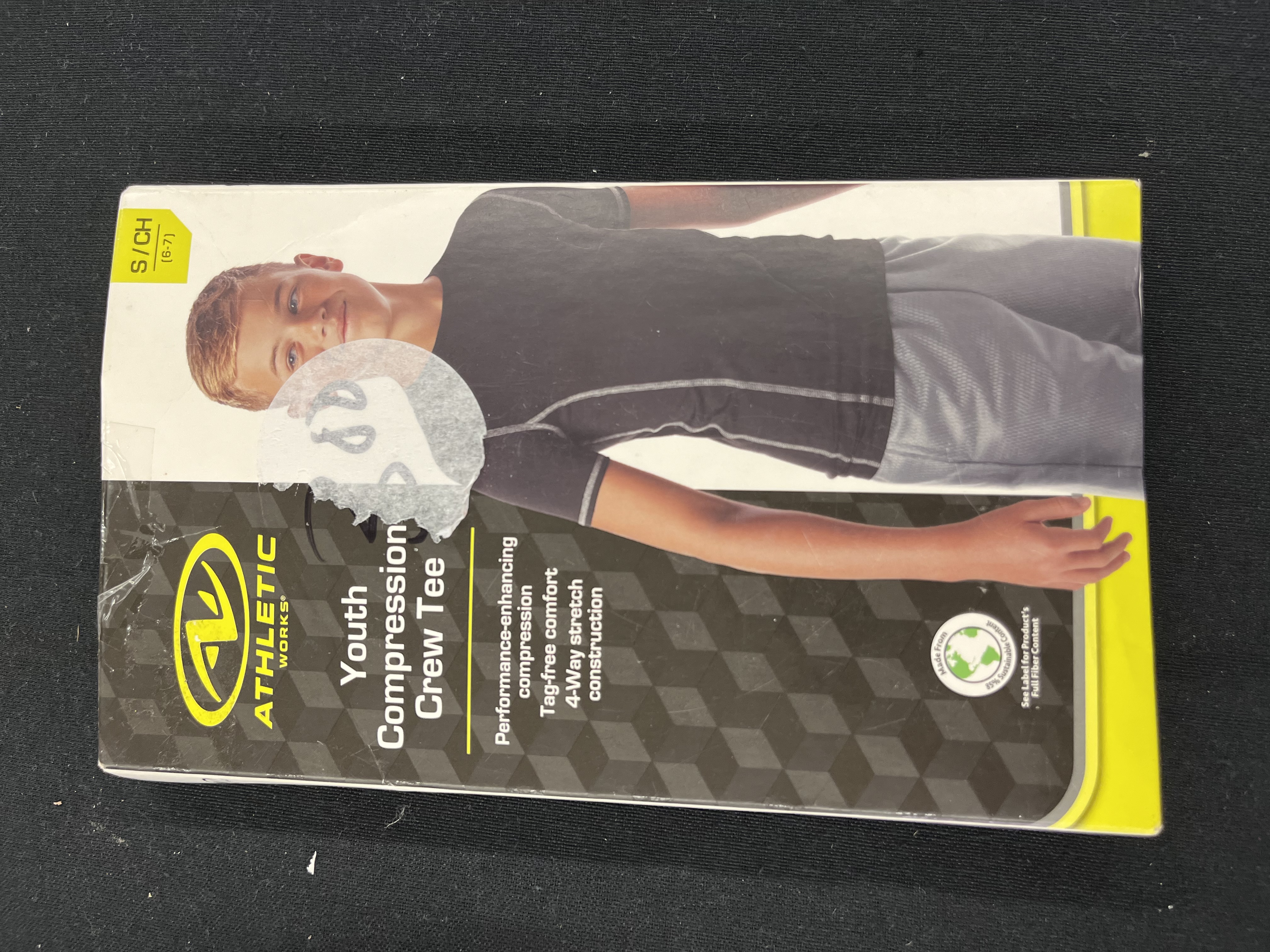 Nice find: youth T-shirts for an activewear collection. This Athletic Works’ Youth Compression Short Sleeve Crewneck T-Shirt is crafted in comfortable fabric with a contrast cover stitch design, 4-way stretch for ease of movement, moisture wicking to keep cool and dry and is tag-free to avoid irritation. Choose from between a white and black T-shirt (or pick up both!) to build an athletic look.