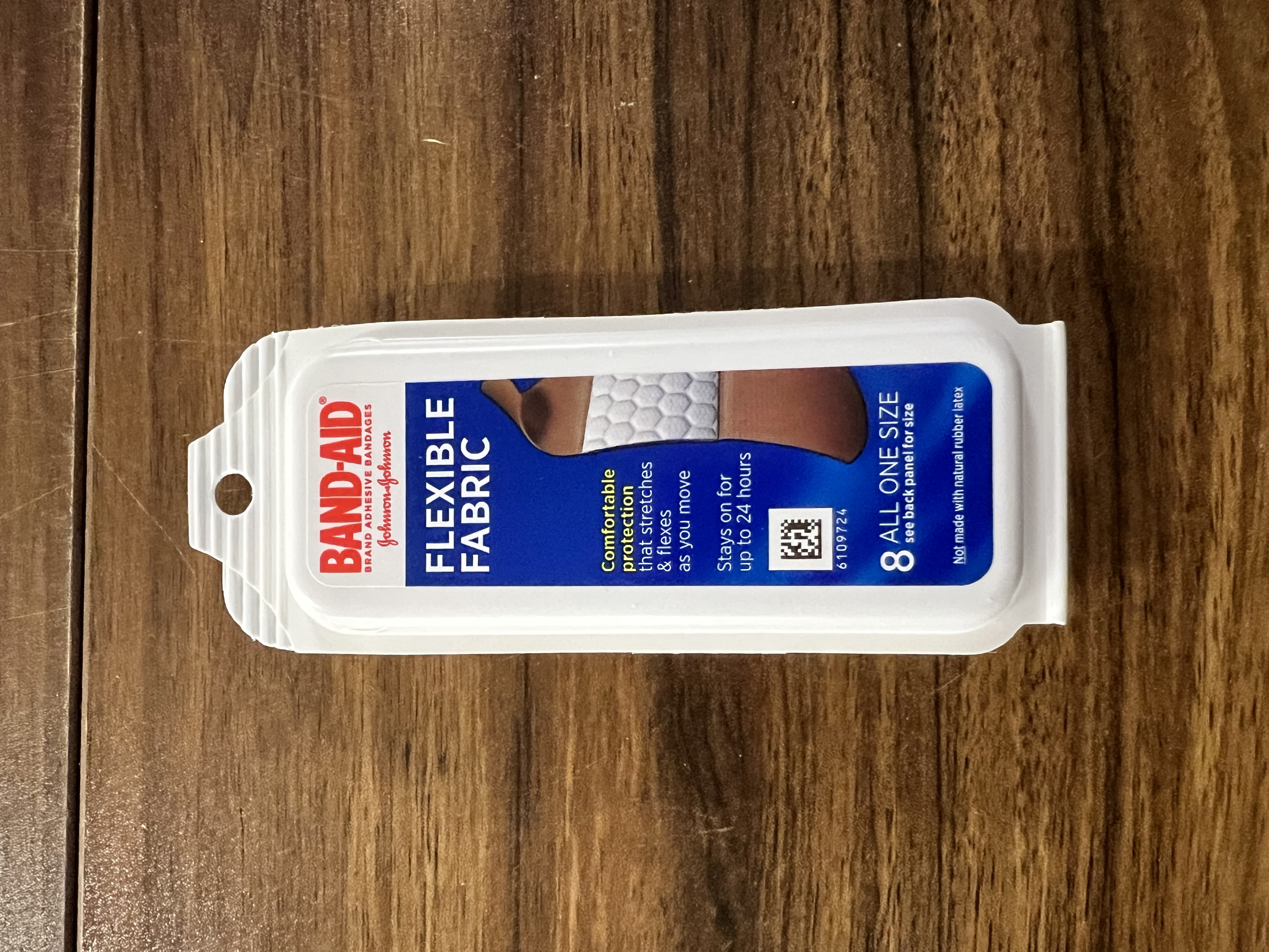 8-ct. travel pack Band-Aid Brand Flexible Fabric Adhesive Bandages to cover & protect minor cuts & burns These flexible bandages are made with Memory-Weave fabric, which stretches and flexes as you move The bandages feature Quilt-Aid Comfort Pads designed to cushion painful wounds which may help prevent reinjury These fabric bandages stay on for up to 24 hours & help protect against dirt and germs, which may cause infection The Hurt-Free Pad on these first-aid bandages won't stick to wounds allowing for gentle removal Package contains 8 wound care bandages from the #1 doctor recommended bandage brand in a travel pack Apply bandage to clean, dry skin for minor wound care and change daily, when wet or as needed For proper wound care, treat with wound an antiseptic ointment such as Neosporin prior to application
