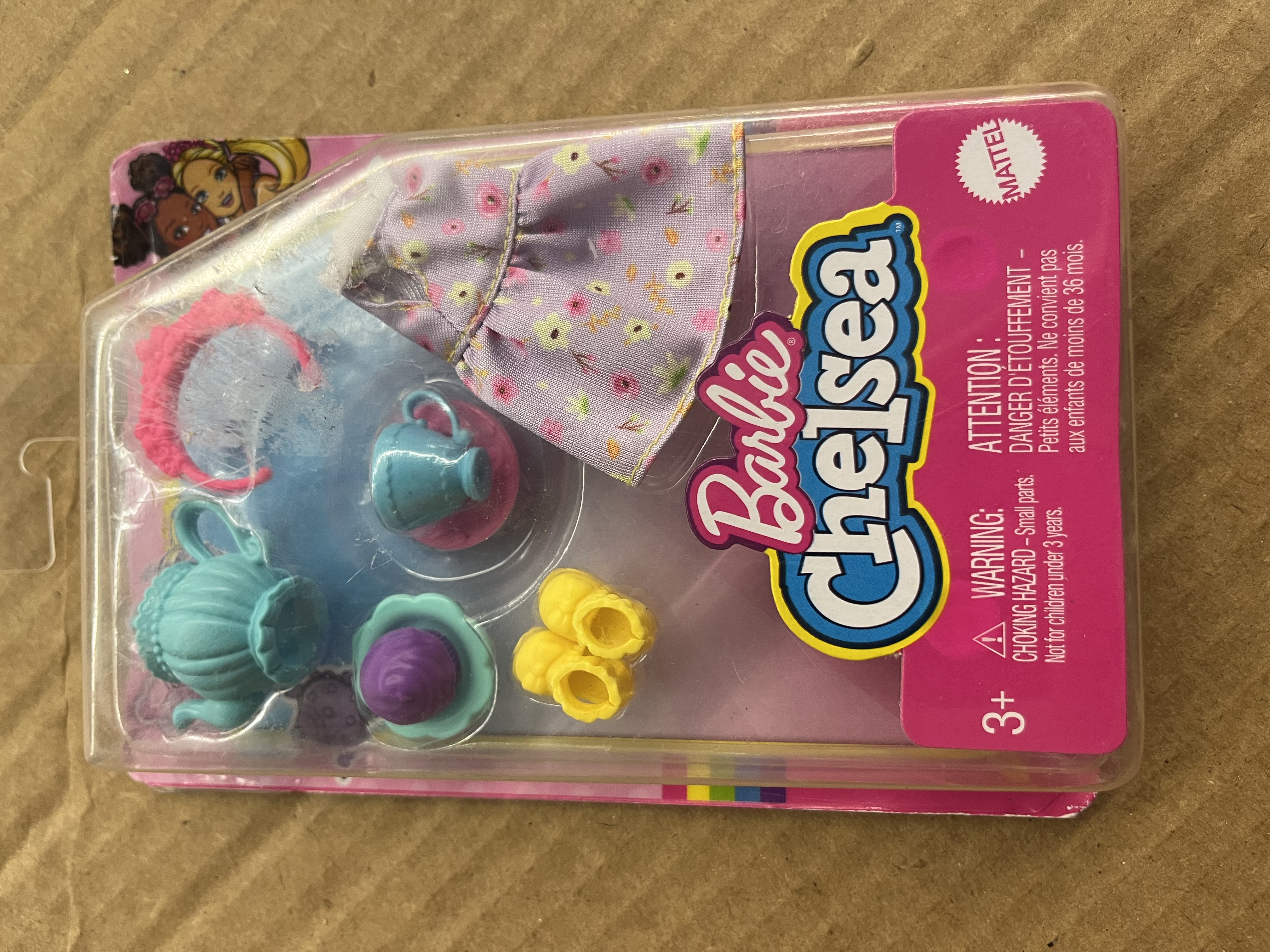Barbie Chelsea Accessory Pack, Tea Party Theme, Purple Floral Dress, Shoes & 5 Storytelling Pieces