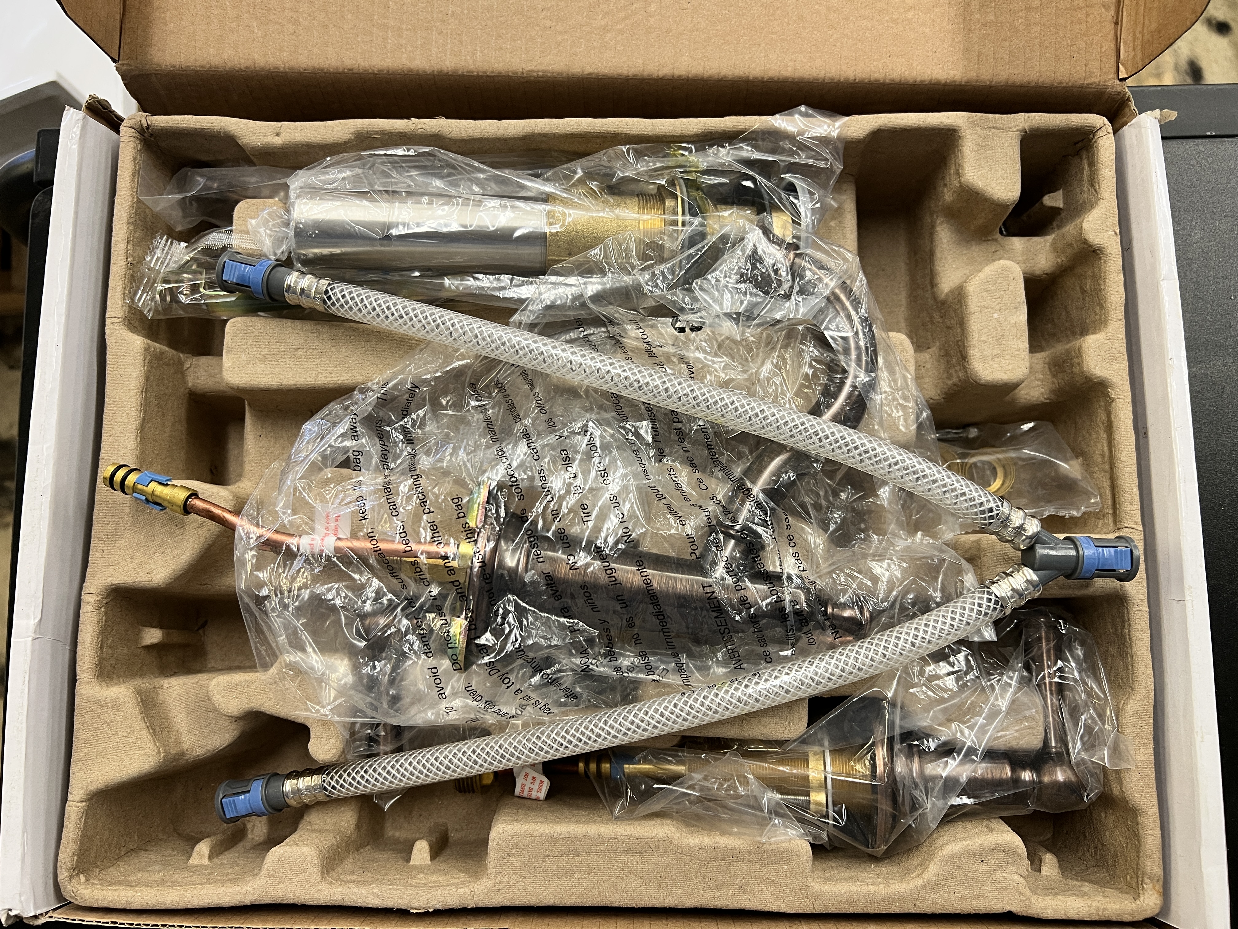 Constructed of brass Widespread installation – 3 hole faucet with 8" centers Double metal lever style handle Pop-up drain assembly included