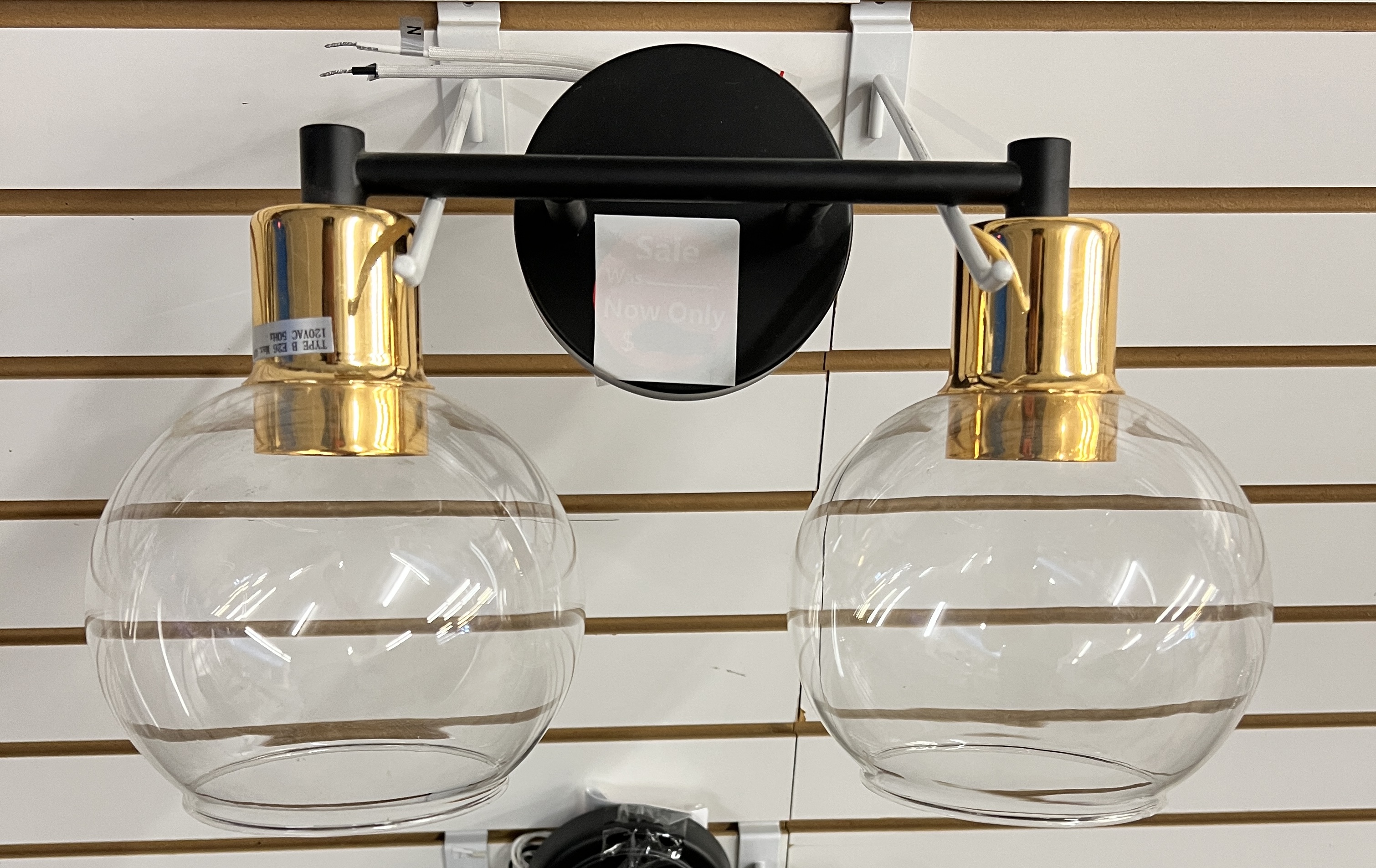 Bathroom Light Fixtures, 2-Light Modern Bathroom Vanity Light, Black and Gold Wall Sconce with Clear Glass Globe Shades, Adjustable Brightness Wall Lights for Kitchen, Bedroom, Hallway, Living Room (Min Bid Amount: $2)