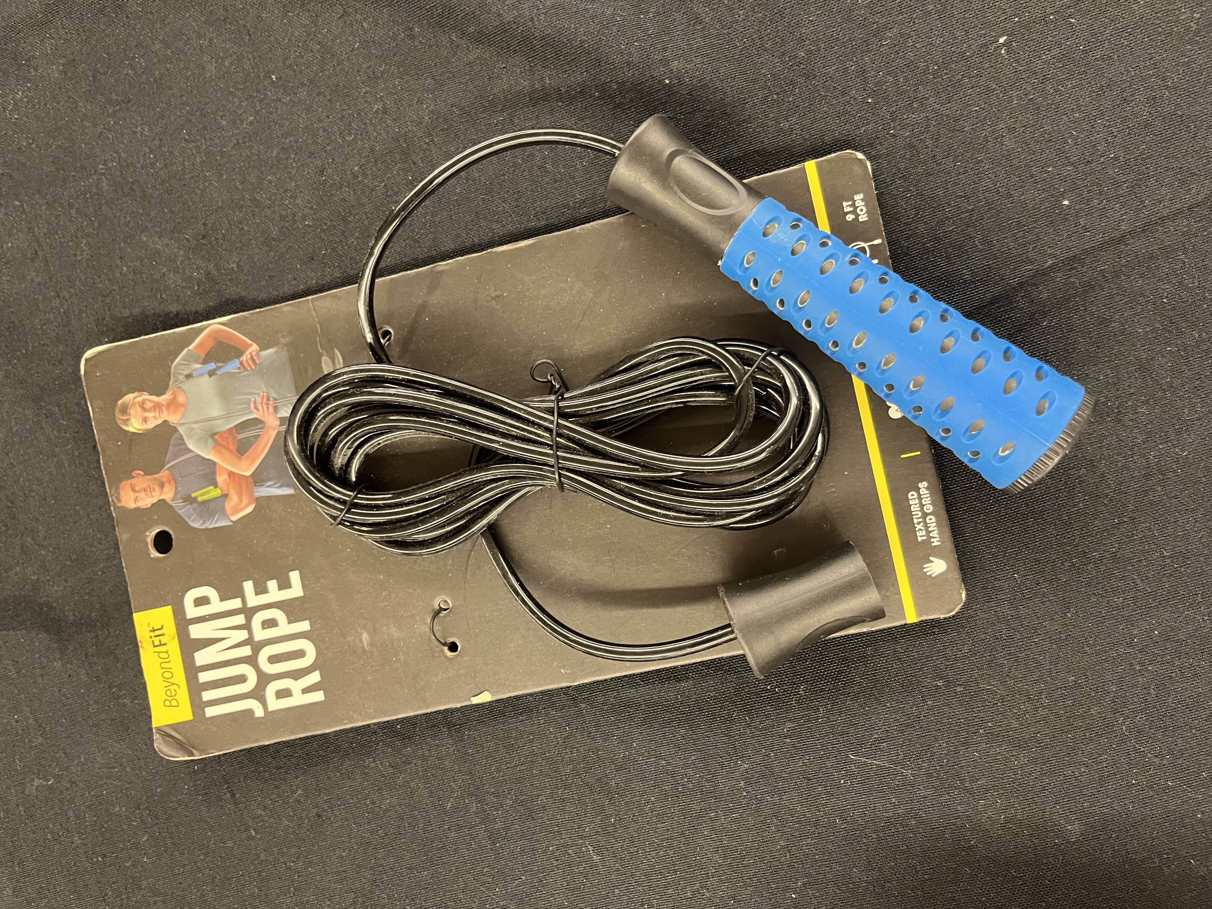 This Beyond Fit Jump Rope will help you burn calories and increase endurance through cardio and agility workouts. The Beyond Fit Jump Rope features comfort handles and a smooth glide rotation. The adjustable rope has just enough weight to hold its shape and is light enough for quick spins. Ideal for heights up to 6 feet. Helps boost coordination, strength and speed. Exercise Guide included.