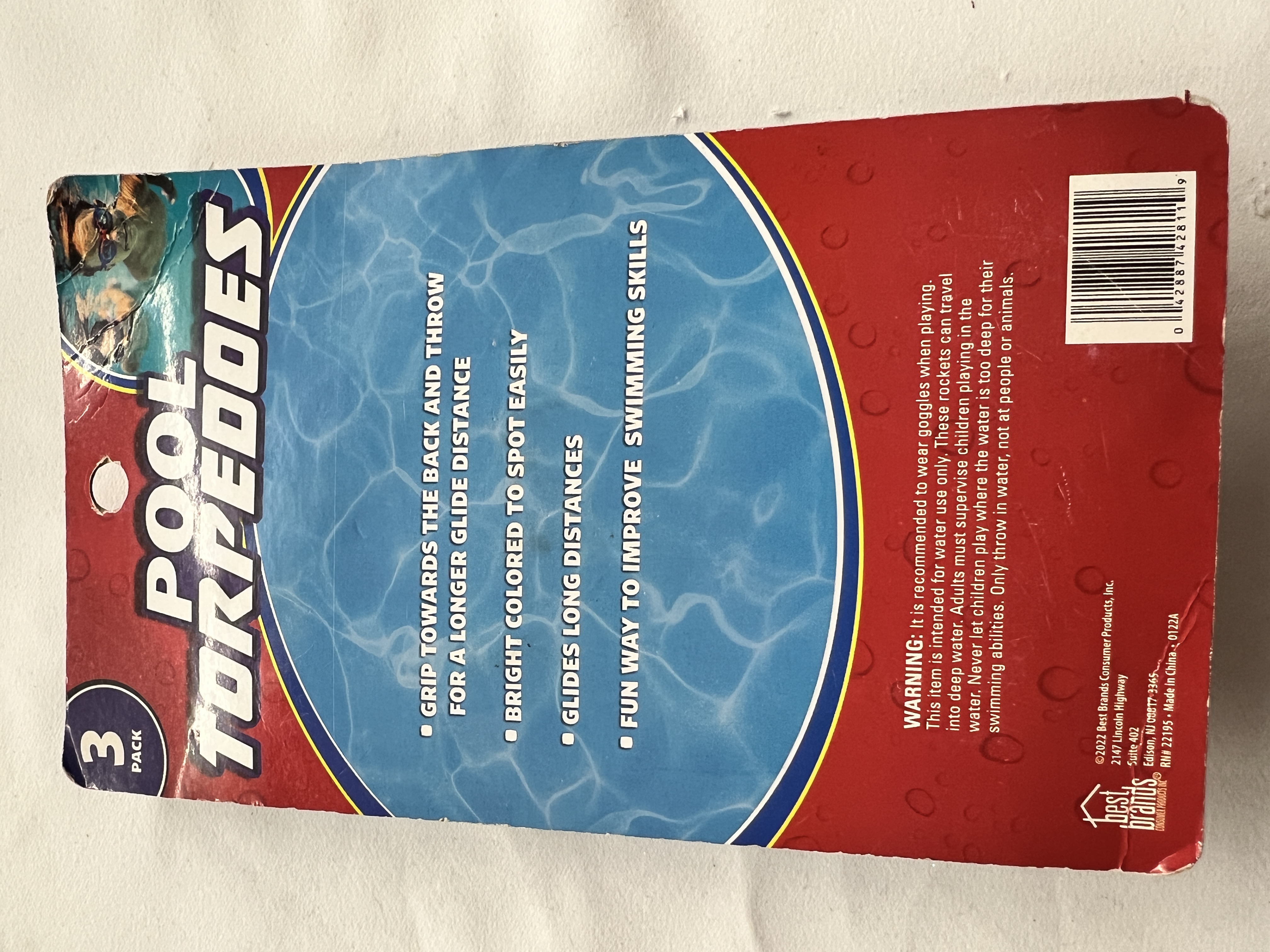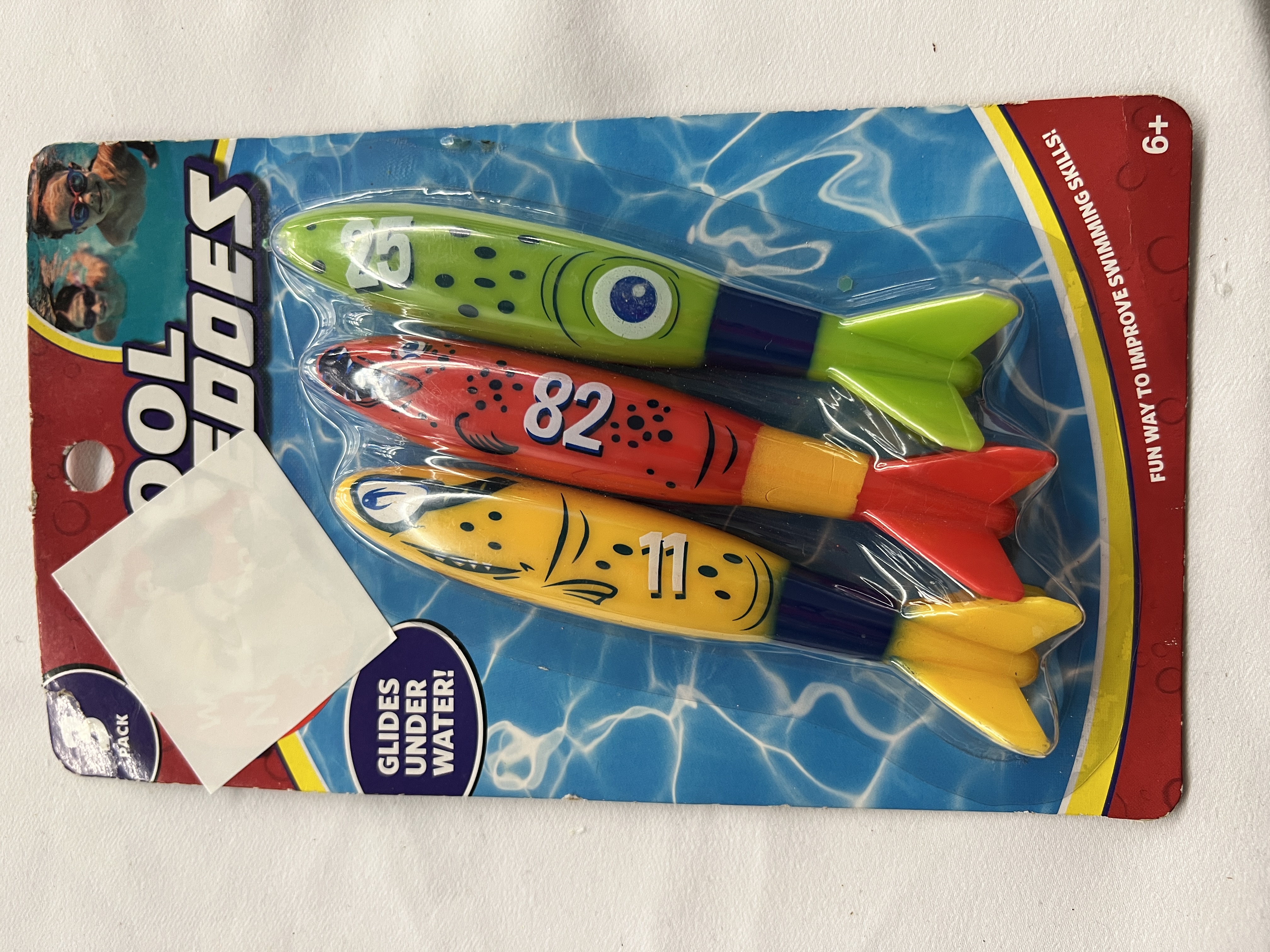 These Best Brands 3 pack Pool Torpedoes are the ultimate fun summer pool toy! Have races, watch them fly through the water, collect them for points to win the game! These colorful torpedoes are high quality, long lasting, and will provide your family with endless hours of excitement. To use, simply throw them in the pool and dive in for a fun family warm weather activity! Fun Pool Sinking Toys Quality Dive Toys for Kids Great for all Ages Perfect for Pools and Bathtube