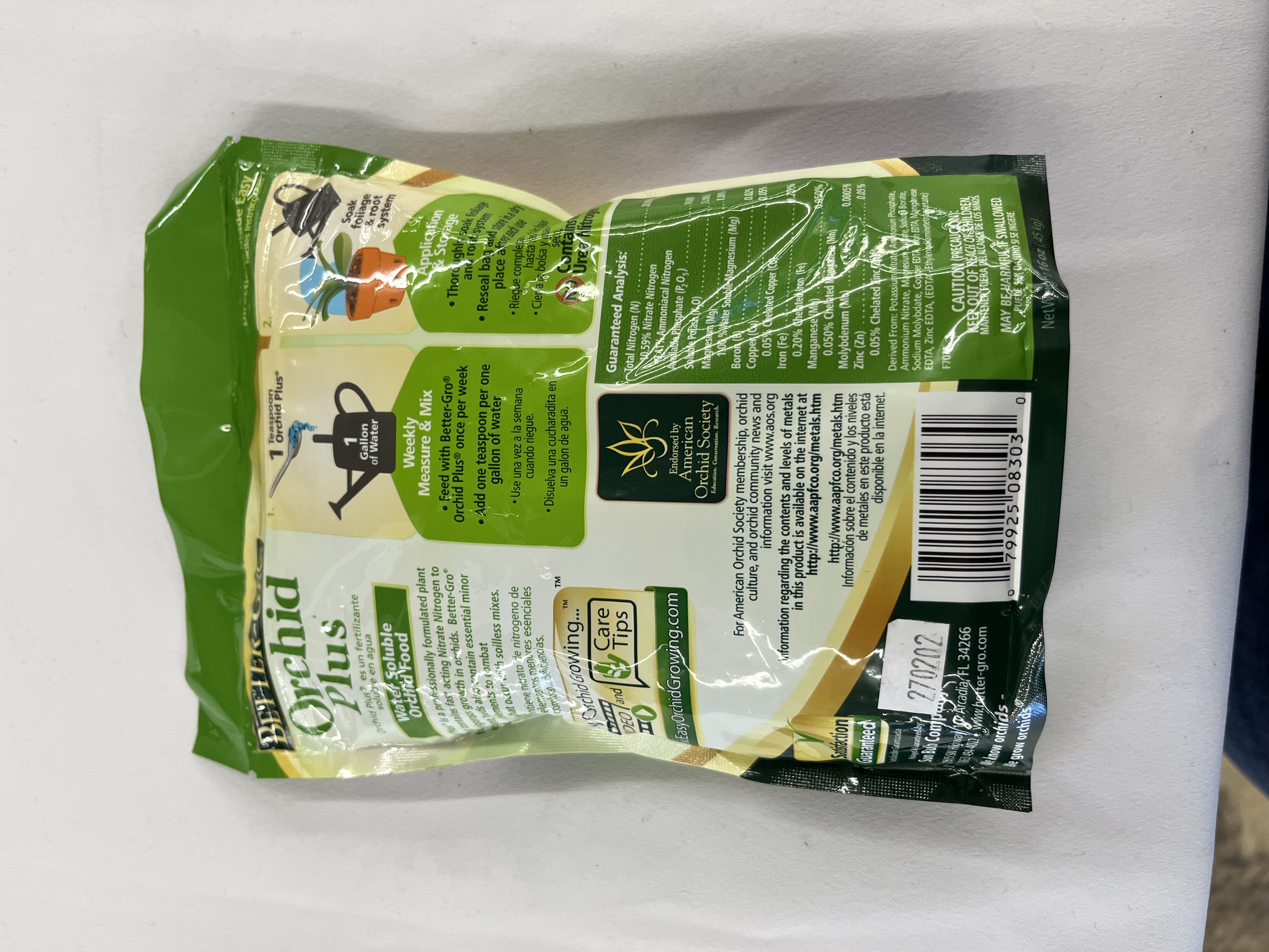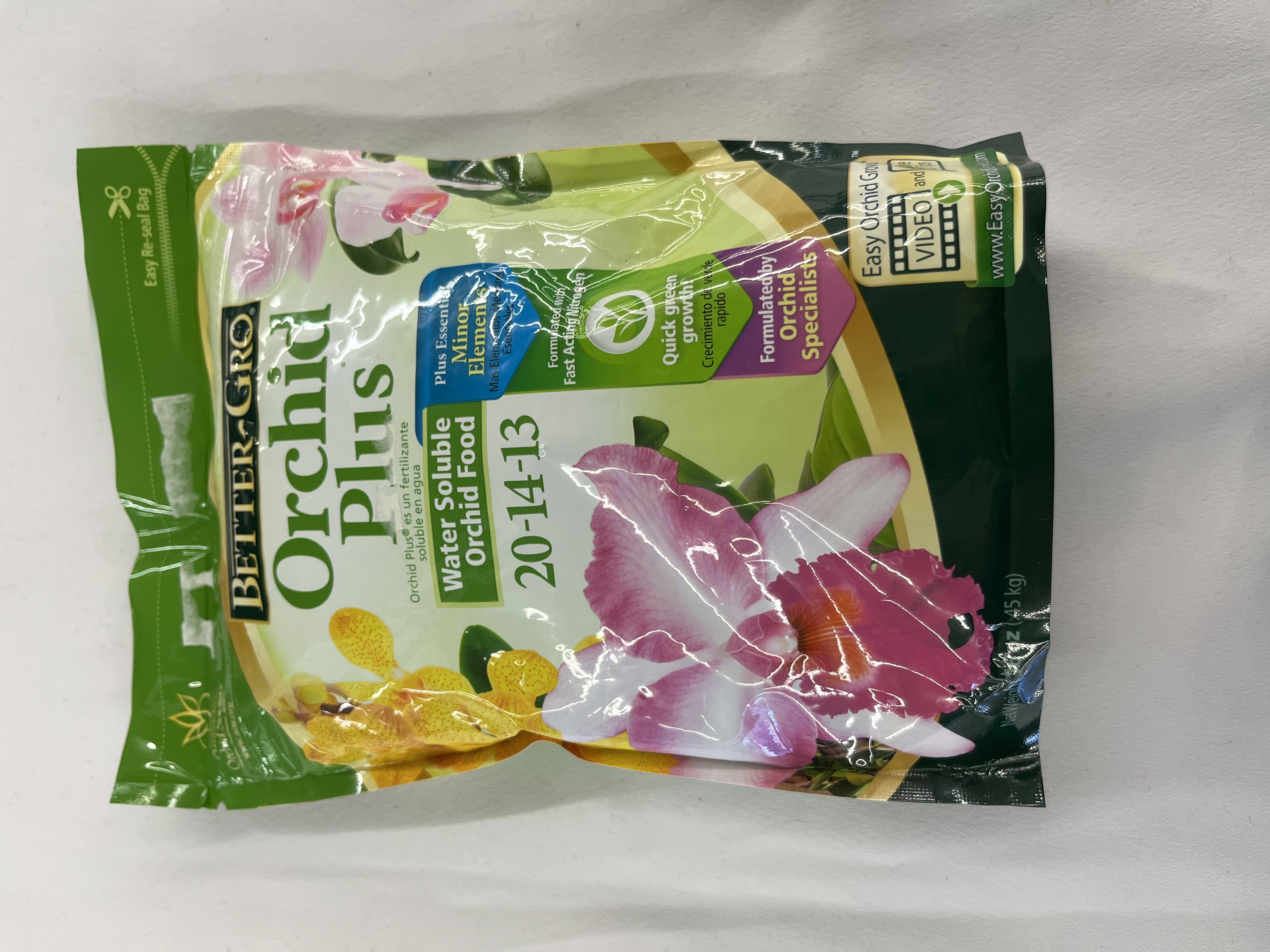 Better-Gro Orchid Plus Plant Food, 20-14-13 Fertilizer, 1 lb. Bring out the best in your indoor potted or outdoor planted orchids with the Better-Gro One-Pound Orchid Plus Plant Food. This dry fertilizer mixes with and dissolves in water for direct application to the orchid plant. The formula is urea free and nitrate nitrogen rich to promote fast results and maximize the amount of nutrients your orchids absorb. 6 cu ft.