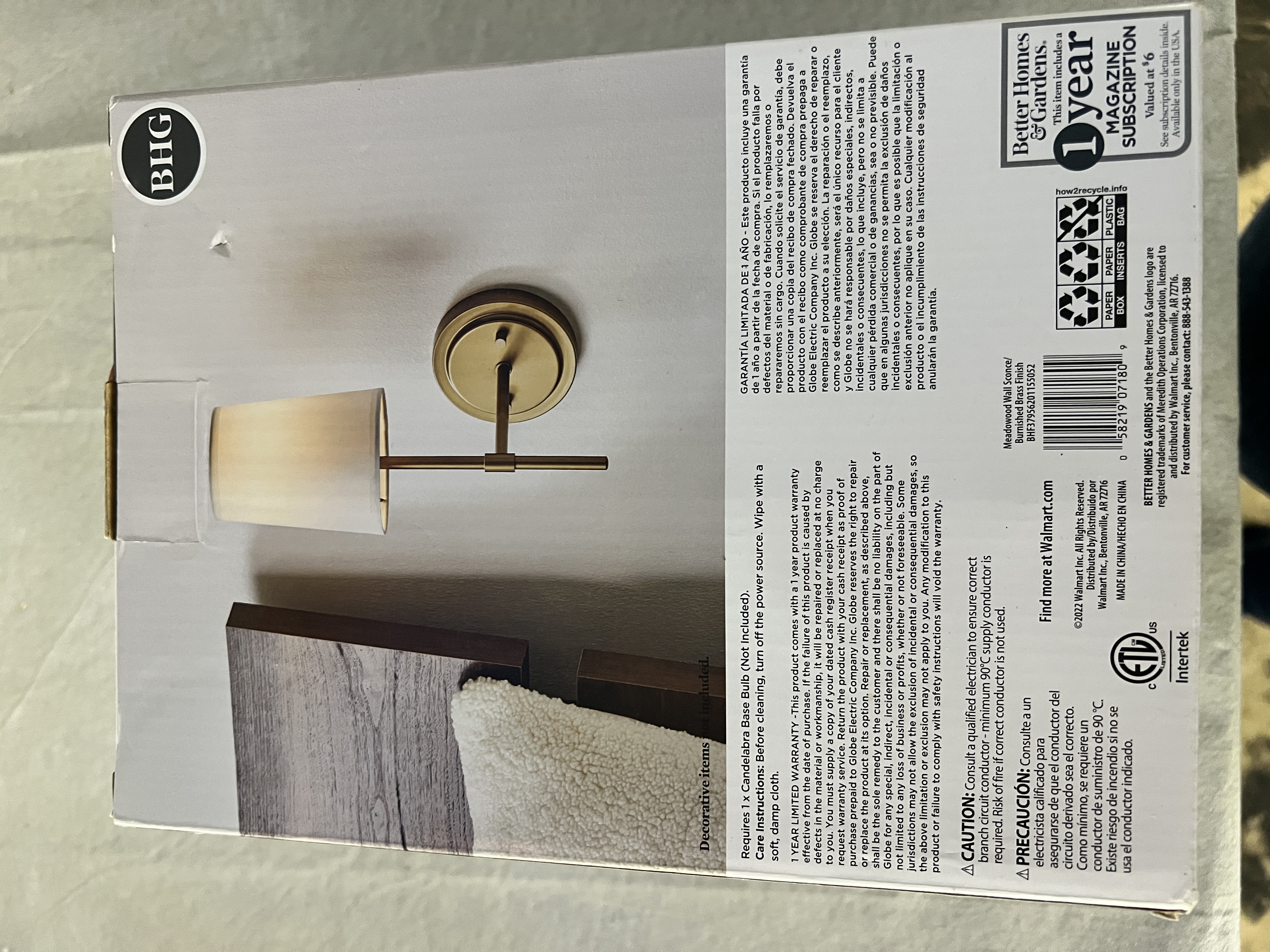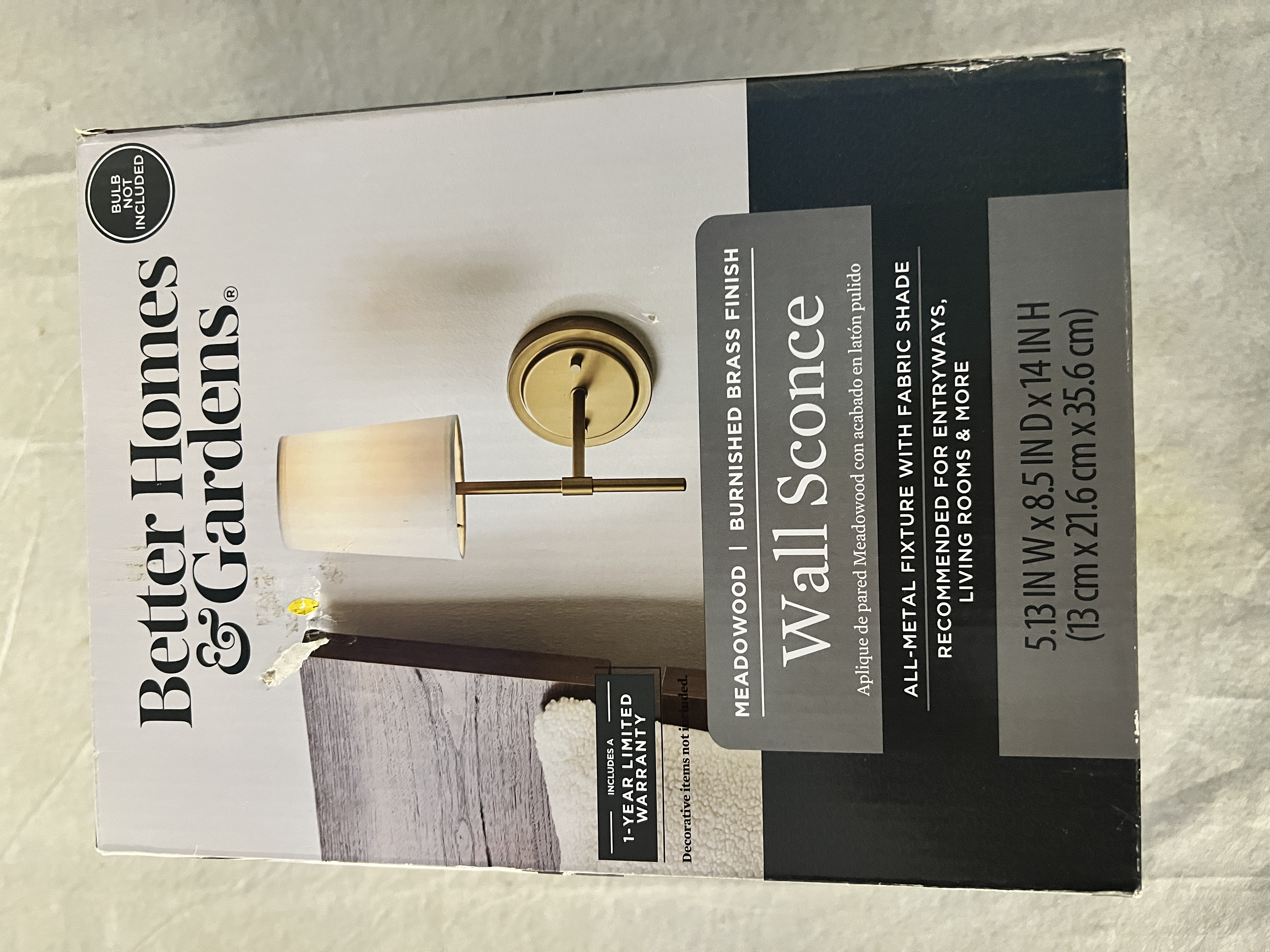 Better Homes & Gardens Wall Sconce is a shining example of transitional design with its burnished brass finish and white fabric shade. The cute shade provides a warm welcoming glow that brightens a room with ease. The matte black finish adds a warmth to this sconce creating a trendy light perfect for entertaining or simply relaxing.