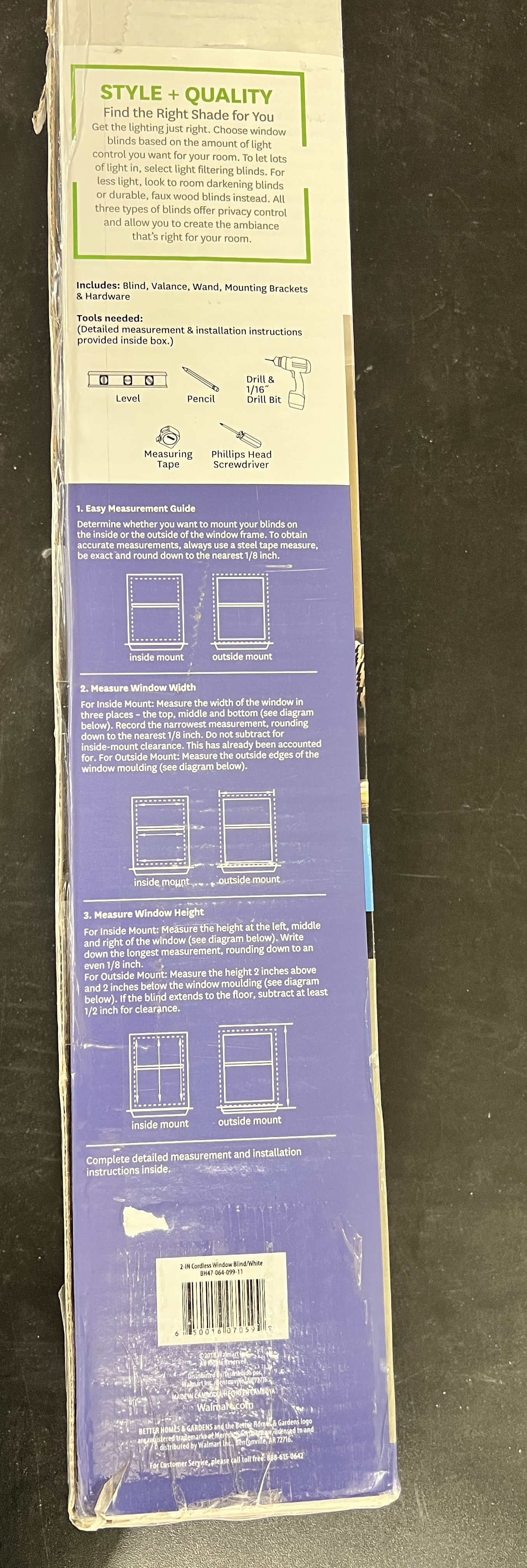 • Includes window blinds, matching 2.5 inch valance, 2 mounting brackets, 1 mounting hardware kit, and instruction manual