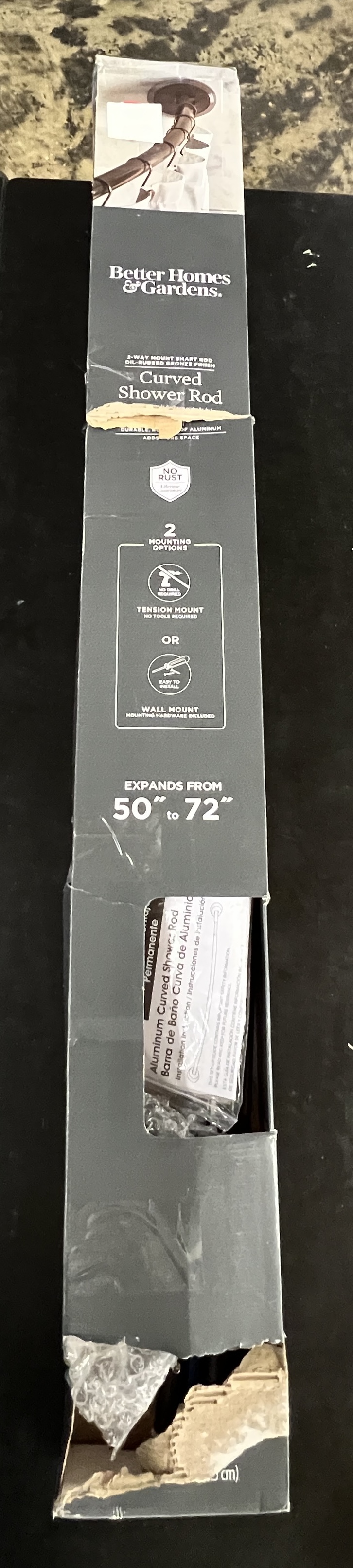 Enjoy the benefits of increased elbow space inside your shower with the Better Homes & Gardens Dual Mount No Rust 50" to 72" Adjustable Curved Shower Curtain Rod in bronze. This adjustable shower rod has a curved design that helps make your shower space feel larger.