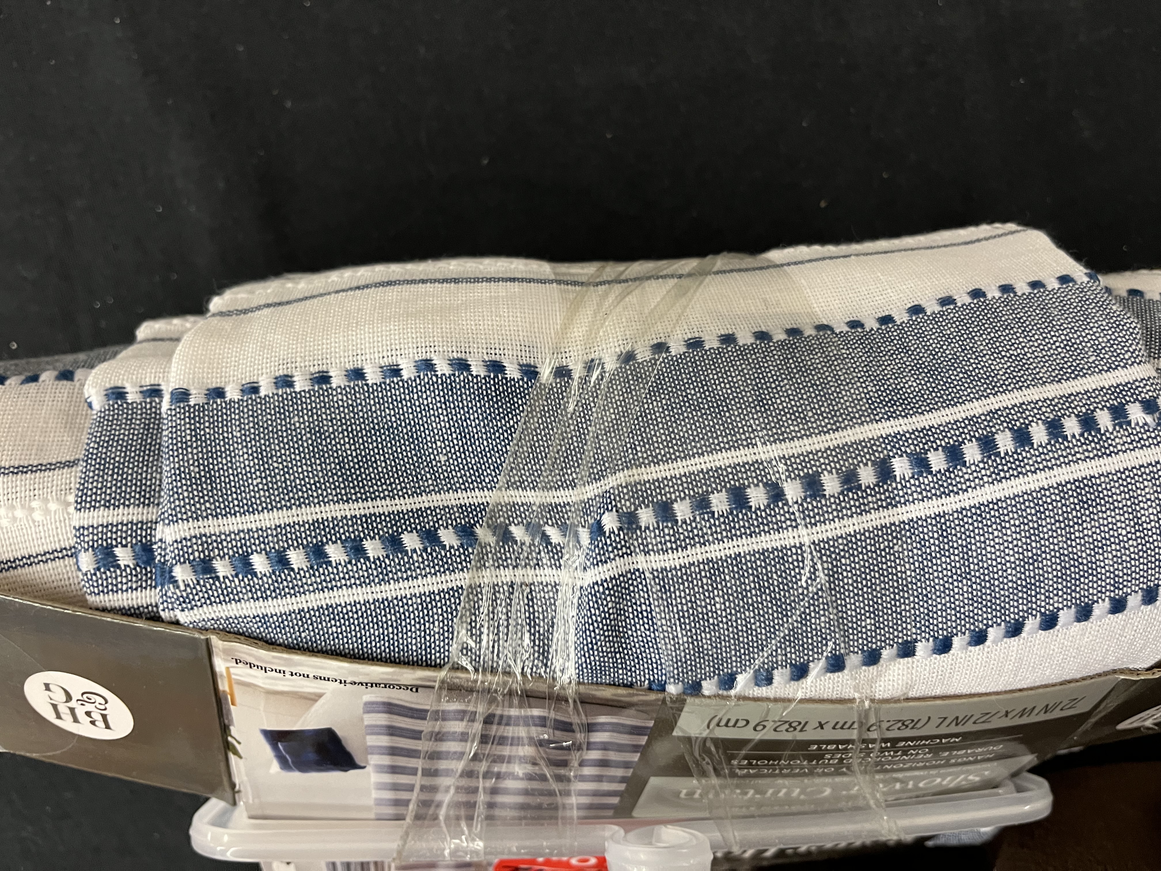 Instantly refresh your bathroom decor and make your shower pop with pattern with the Better Homes & Gardens Textured Stripe Cotton-Rich Shower Curtain. An eye-catching decorative accent for your master bathroom or guest bath, this blue and white fabric shower curtain features woven stripes and buttonholes along the side and top so you can hang it horizontally or vertically. This 72 x 72-inch fabric shower curtain is made of 60% cotton and 40% polyester for softness and durability. You can keep this shower curtain looking and feeling like new by machine washing it in cold water and drying on low setting. Pair this shower curtain with your favorite shower curtain liner and shower curtain hooks (not included).
