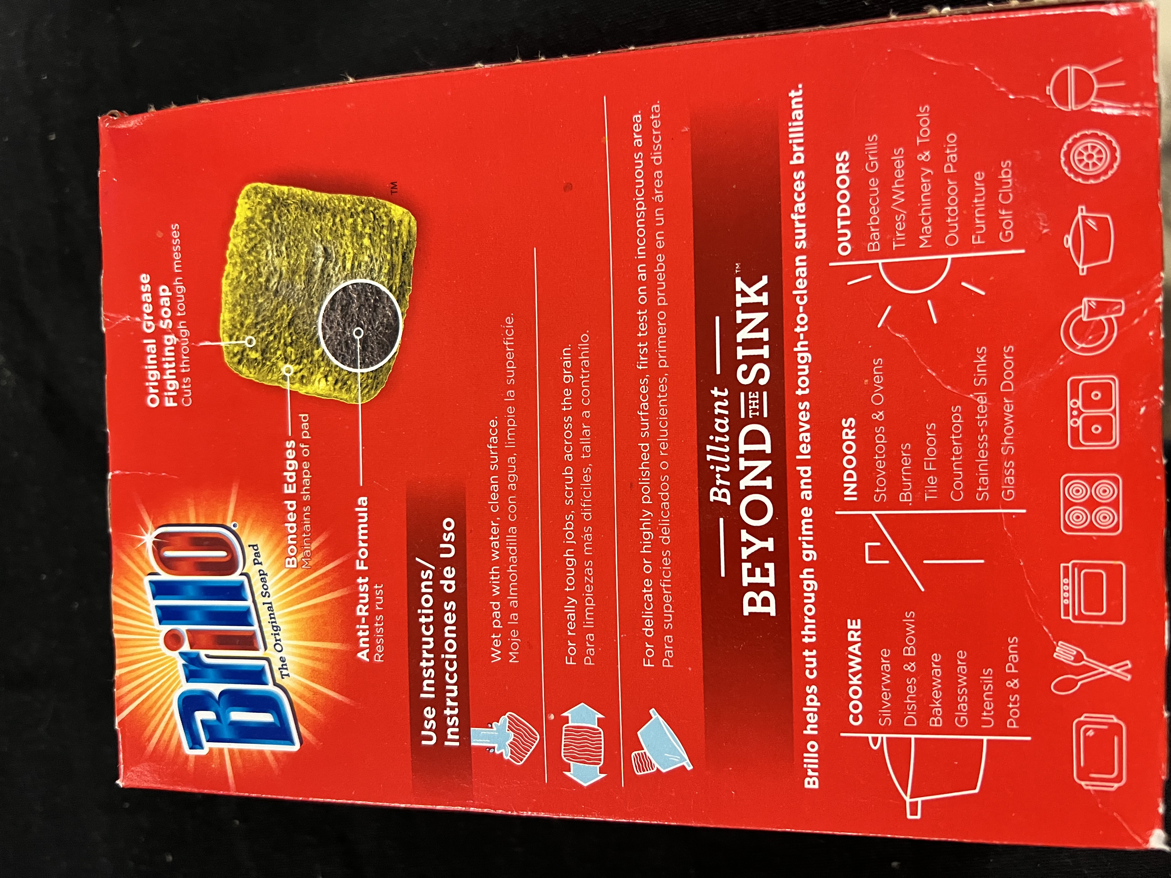 Ideal for jobs where extra cleaning power is needed, Brillo Steel Wool Soap Pads with citrusy-fresh lemon scent are designed to remove the toughest grease and grime. We’ve taken our original steel wool soap pads and infused them with the invigorating scent of lemon. The classic Brillo shape helps reach tough messes in corners and is perfect for grills and pots and pans. When using Brillo Steel Wool Soap Pads, be sure to wear gloves, and rinse with water. Brillo is one of the most trusted names in household cleaning, so you can enjoy a clean, more sanitary lifestyle—no matter what kind of mess your family gets into.