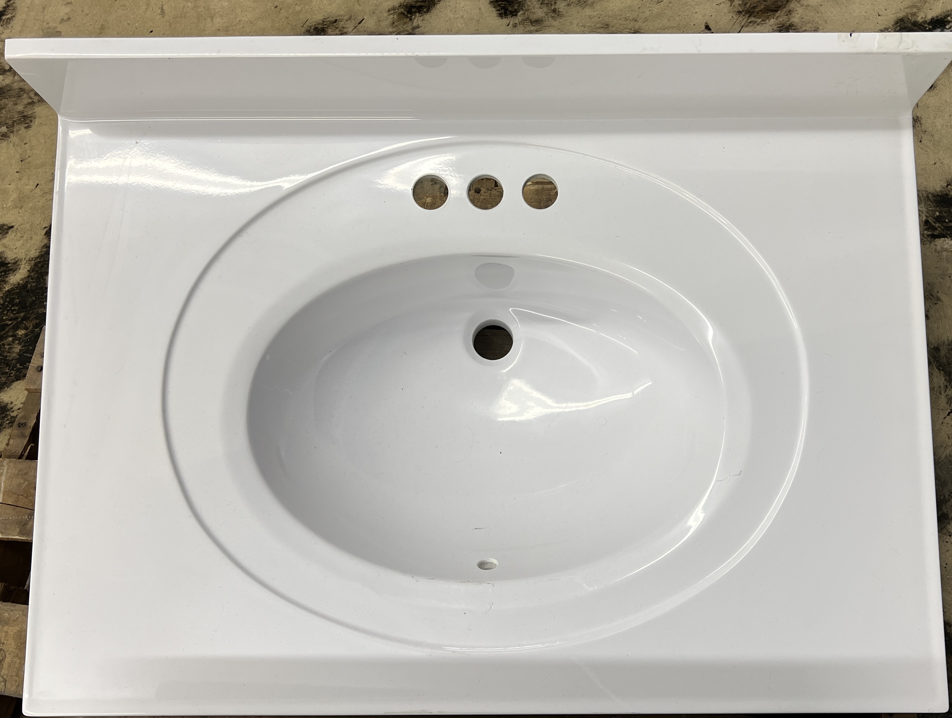 Elevate your bathroom's aesthetic with the Design House Brookings 25-inch bathroom vanity cabinet with cultured marble top. Designed to effortlessly blend with any style, from rustic to modern, this cabinet features shaker styled door trim, plywood side and bottom panels, a solid wood face frame and a back panel for a seamless look. This vanity measures 25-inches W x 22-inches D x 36.5-inches H. The six-way adjustable soft-close hinges ensure quiet door operation, while the Sherwin Williams® White finish adds a touch of contemporary elegance. Optimized to fit your bathroom space, this 2-door bathroom vanity with sink will store all your essentials and keep clutter out of sight. The vanity sink comes in an ivory swirl finish with a 4" centerset faucet hole configuration above an oval bowl. This top has an integrated backsplash and an overflow hole to help prevent water damage. This countertop's square edges add a modern design to appeal to contemporary tastes. This vanity cabinet is fully assembled for a hassle-free installation process. It is assembled in the USA and packaged with care. Manufactured by Design House, the trusted source for quality lighting, hardware, plumbing, kitchen, and bath products for every taste and budget.